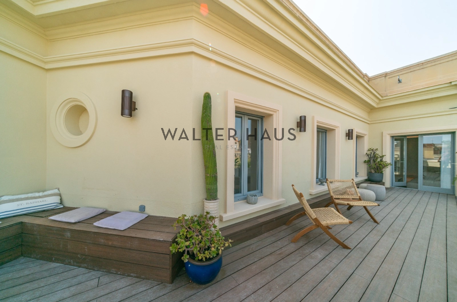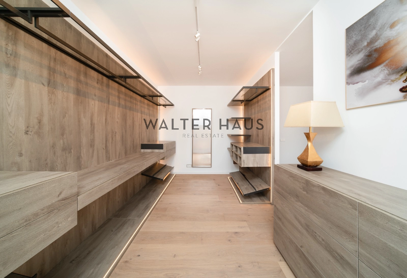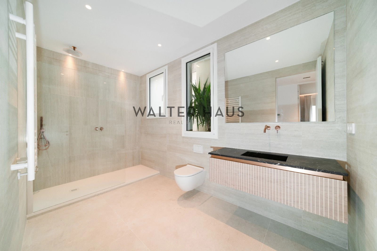 Le séjour-salle à manger, de plus de 55 m², est remarquablement lumineux et s’ouvre sur une grande terrasse de 30 m² avec un espace détente et un espace idéal pour les réceptions en plein air. La cuisine Modulnova, au design italien, est équipée d’appareils haut de gamme et dispose d’espaces séparés pour le petit-déjeuner et la préparation des repas. L’espace nuit comprend trois chambres doubles. La suite parentale bénéficie d’un dressing et d’une luxueuse salle de bains avec une grande douche et une baignoire séparée. Une deuxième chambre, également avec salle de bains privative, peut être aménagée en bureau, et la troisième chambre possède sa propre salle de bains complète.