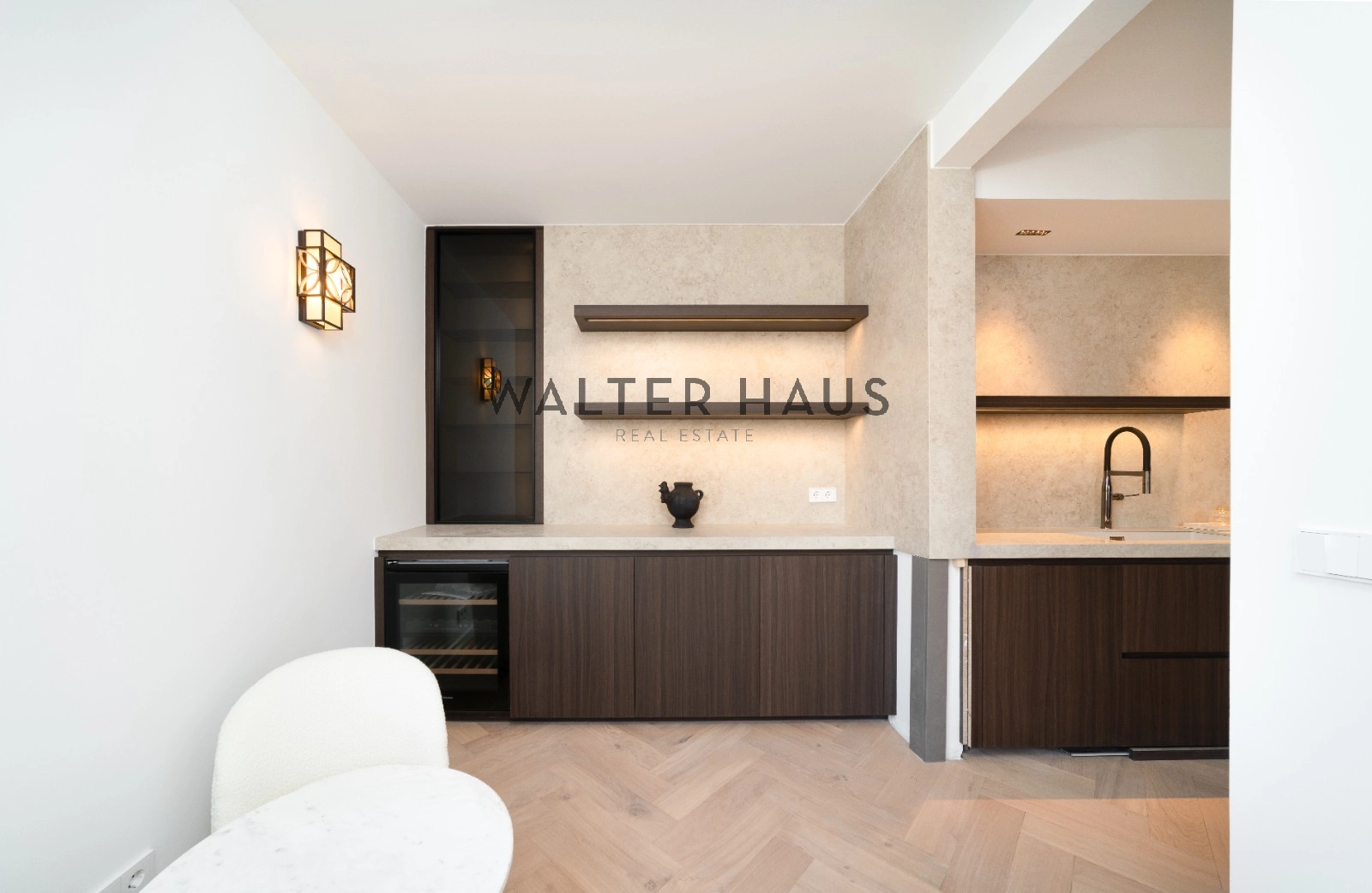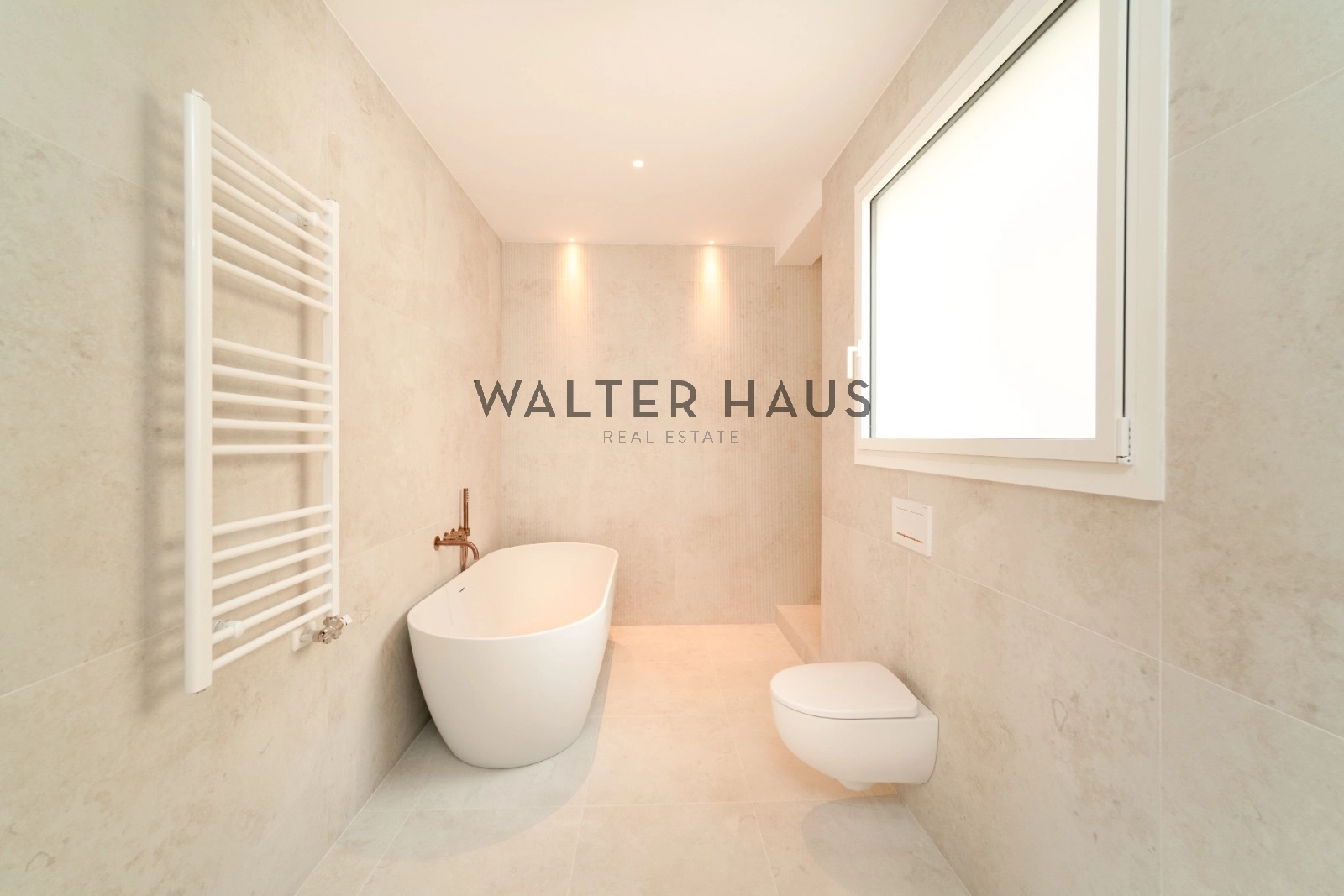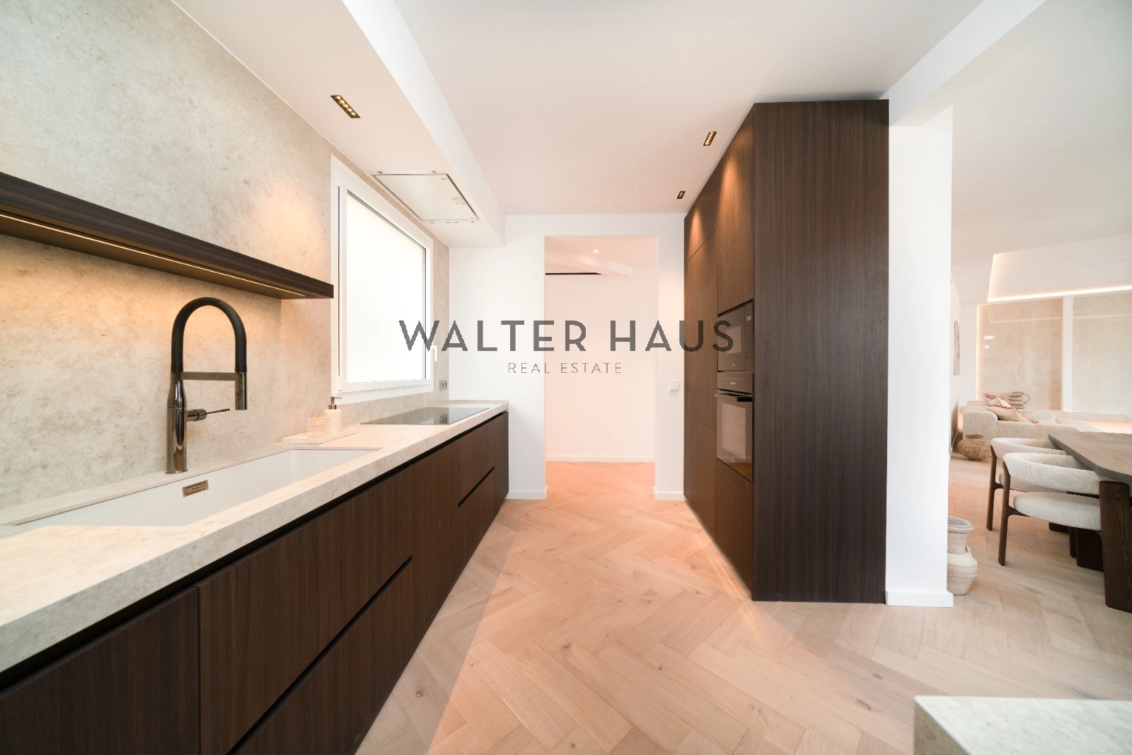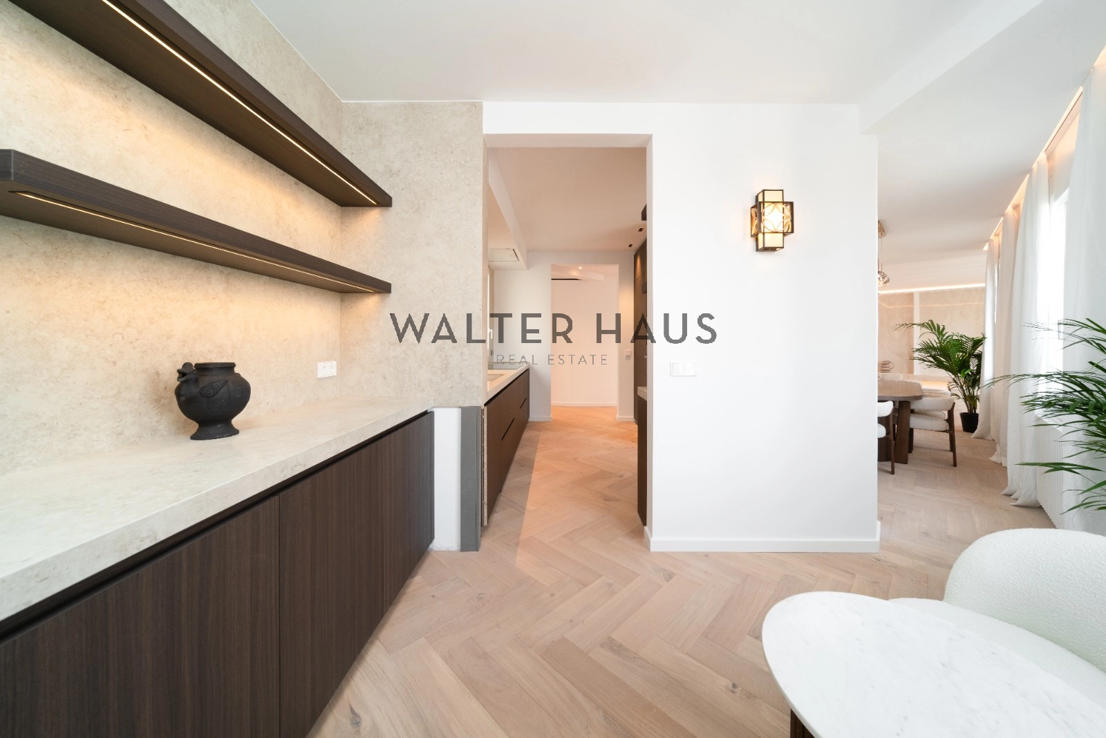 Le séjour-salle à manger, de plus de 55 m², est remarquablement lumineux et s’ouvre sur une grande terrasse de 30 m² avec un espace détente et un espace idéal pour les réceptions en plein air. La cuisine Modulnova, au design italien, est équipée d’appareils haut de gamme et dispose d’espaces séparés pour le petit-déjeuner et la préparation des repas. L’espace nuit comprend trois chambres doubles. La suite parentale bénéficie d’un dressing et d’une luxueuse salle de bains avec une grande douche et une baignoire séparée. Une deuxième chambre, également avec salle de bains privative, peut être aménagée en bureau, et la troisième chambre possède sa propre salle de bains complète.