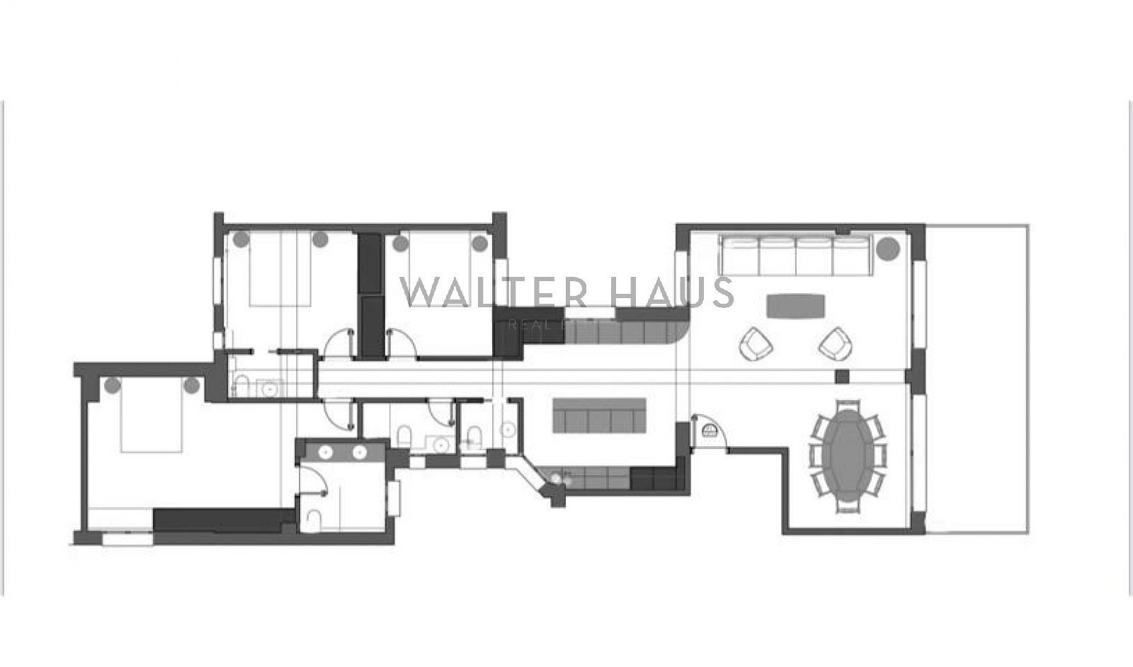 La propriété dispose de trois chambres spacieuses, chacune conçue pour créer une atmosphère chaleureuse et élégante. Les quatre salles de bains, soigneusement conçues, apportent une touche de sophistication et de fonctionnalité.