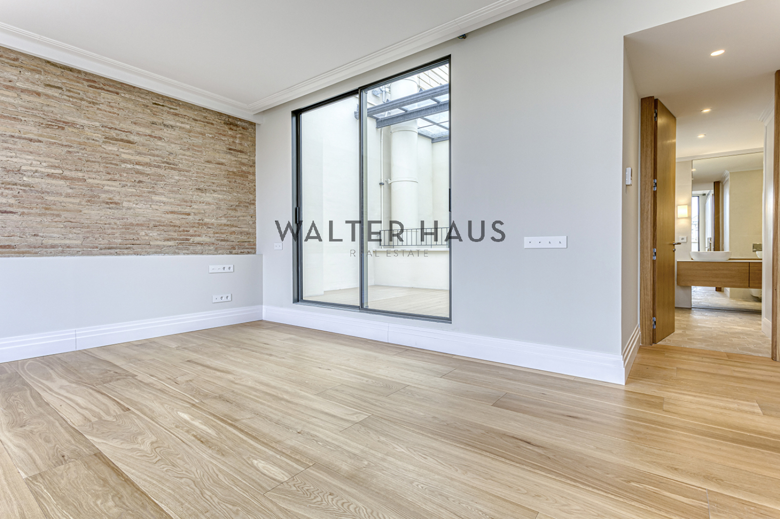 En la primera planta, encontramos un amplio salón-comedor de 65 m² con cocina semiindependiente equipada con electrodomésticos Liebherr Premium, desde donde se accede a un balcón de 9 m² con vistas privilegiadas a la emblemática Casa Batlló. Además, incluye una habitación doble en suite con baño completo y una práctica sala office, ideal para trabajar desde casa.
