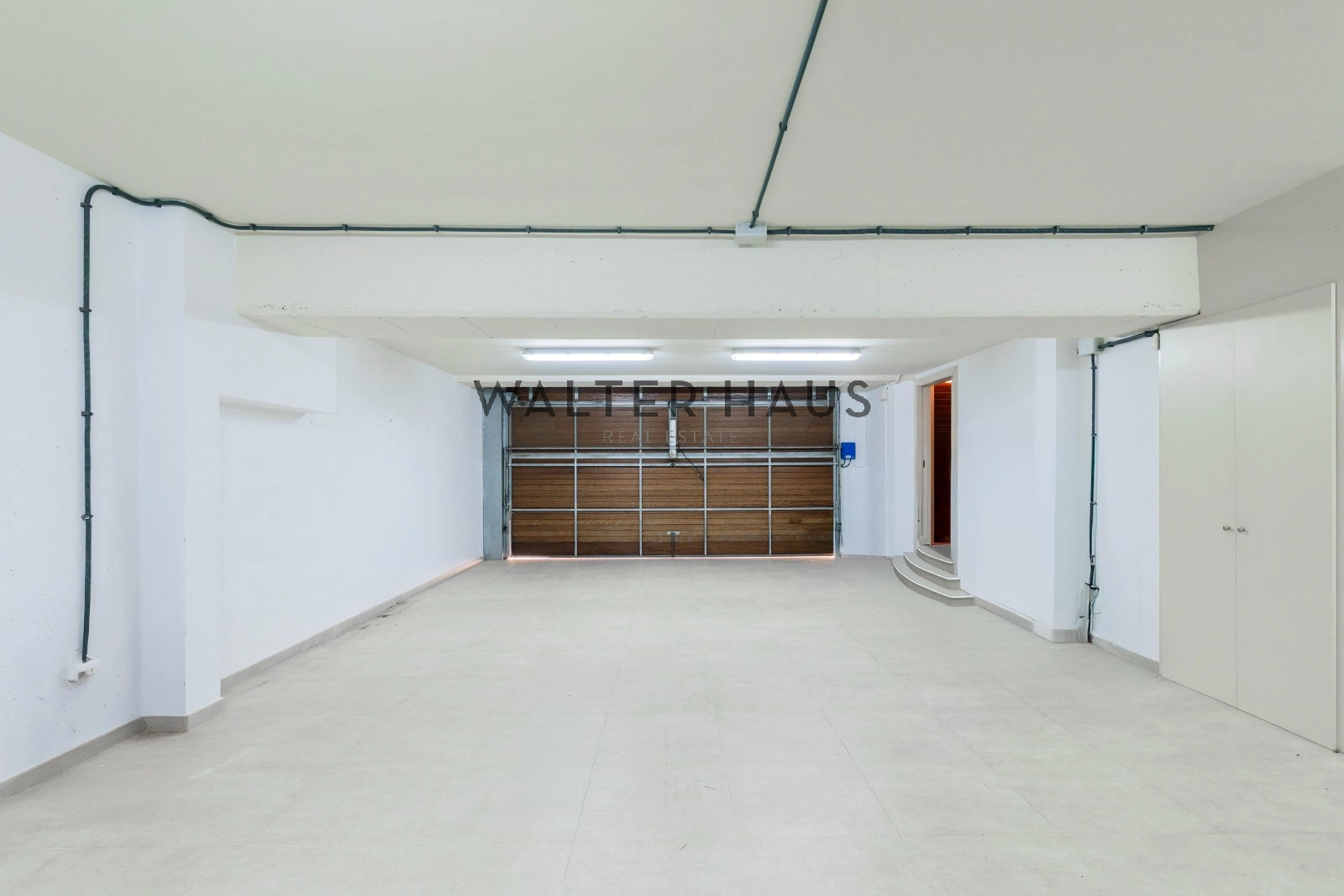 En la planta inferior se sitúa el acceso principal, garaje cerrado, una vivienda independiente para el servicio, lavadero, sala técnica y varias plazas exteriores de aparcamiento.