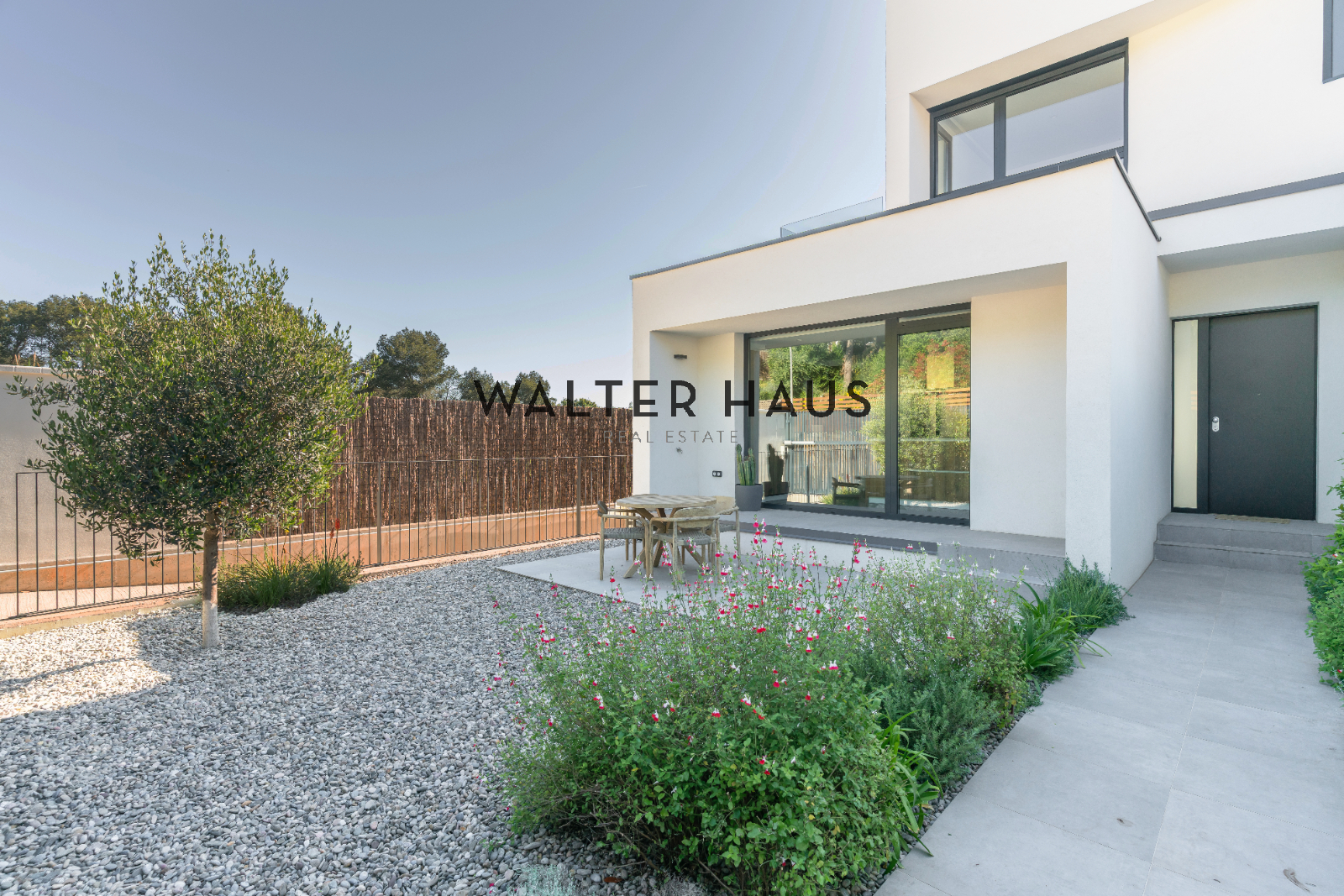 Presentamos una elegante casa de obra nueva en Bellaterra, con 345 m² construidos y una impresionante terraza de 50 m². Esta vivienda forma parte de un exclusivo complejo residencial de alto nivel y cuenta con jardín privado y piscina, ofreciendo una excelente combinación entre diseño contemporáneo, amplitud y funcionalidad. Su cuidada distribución en tres plantas ha sido concebida para maximizar el confort, la privacidad y la luz natural en cada rincón.