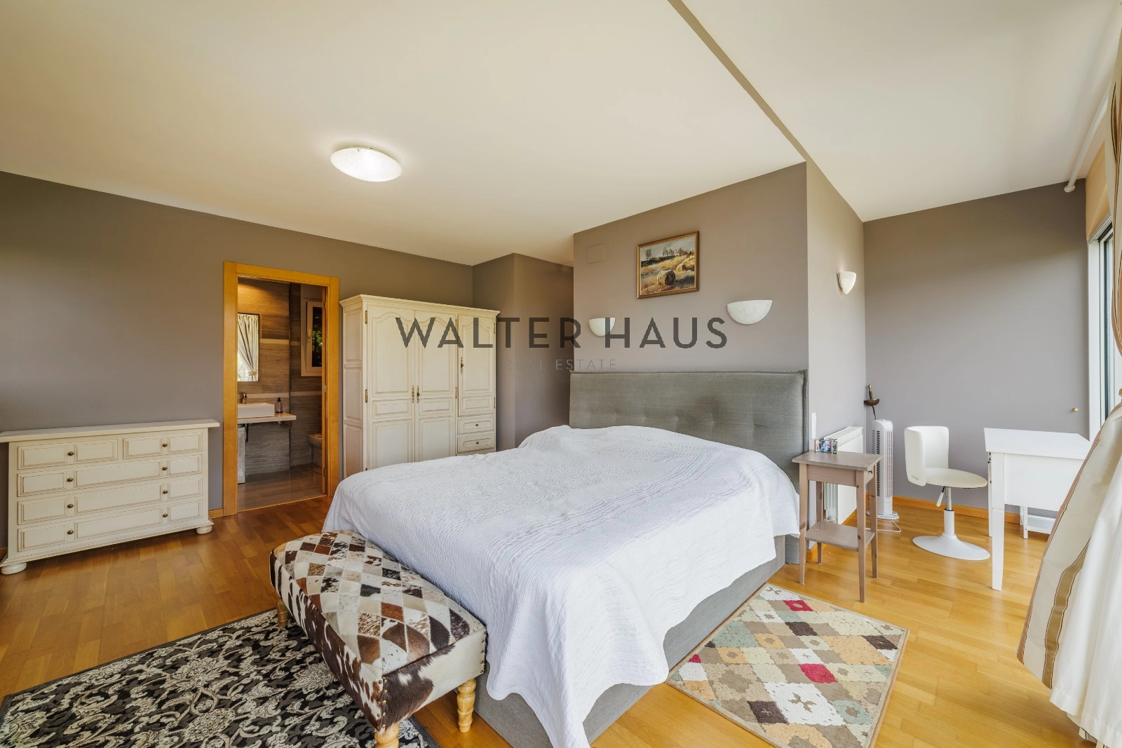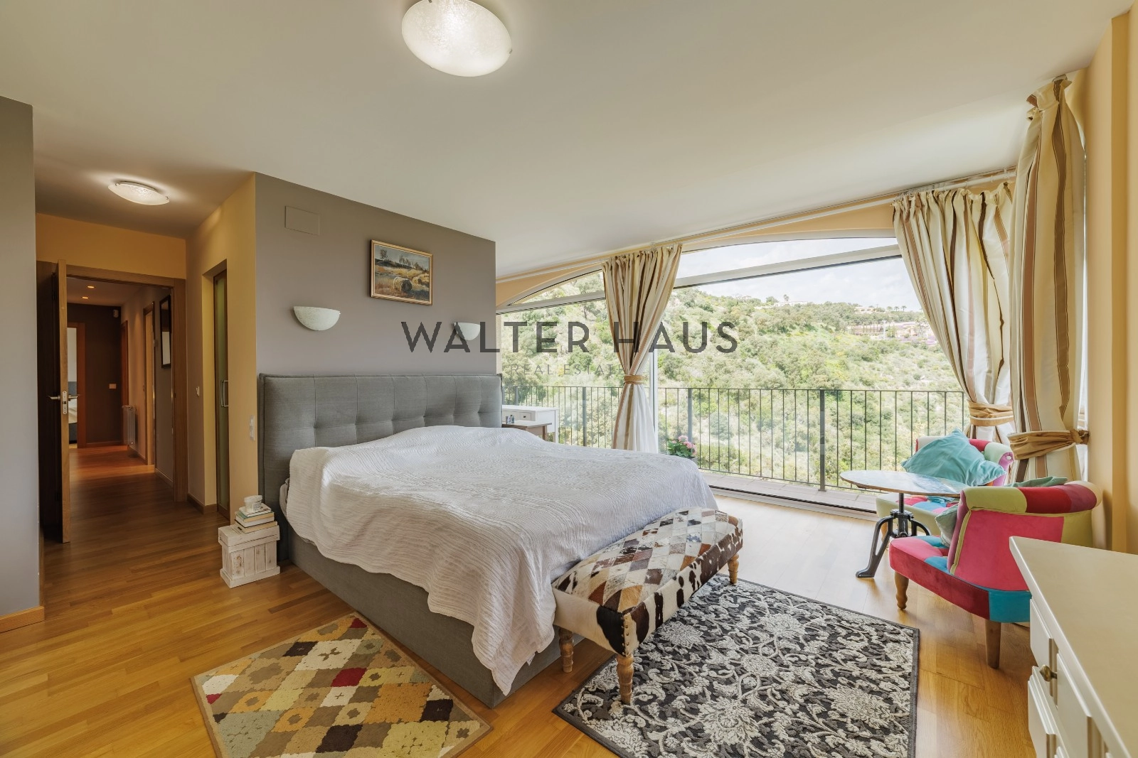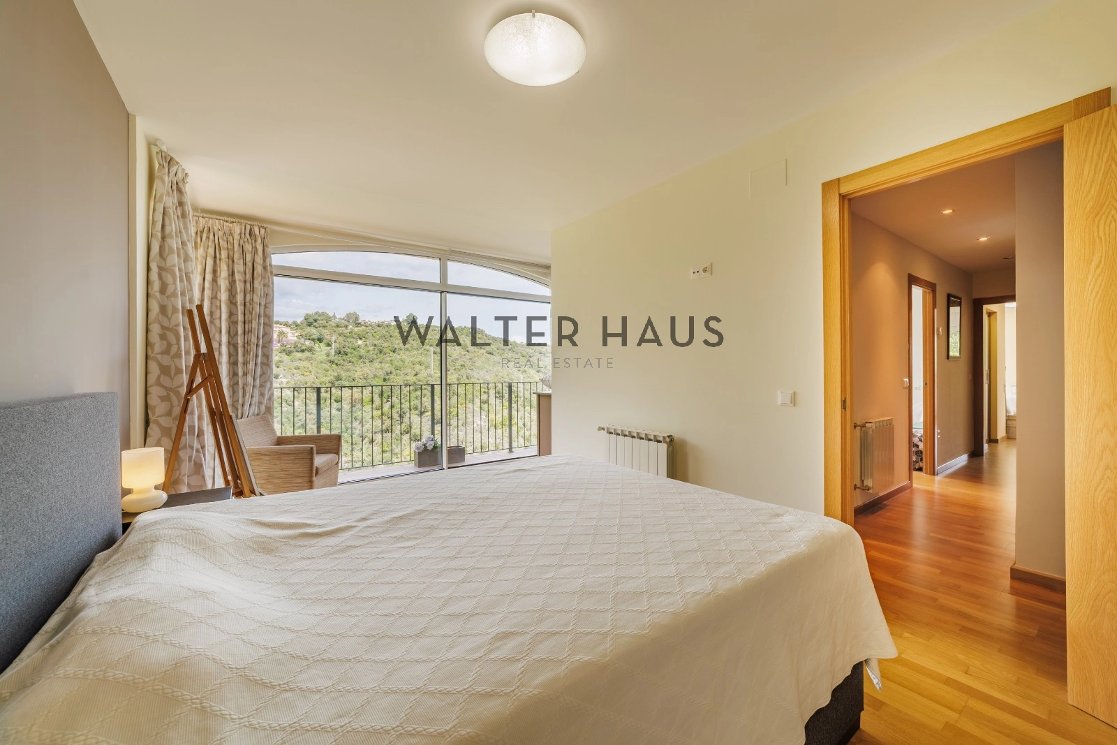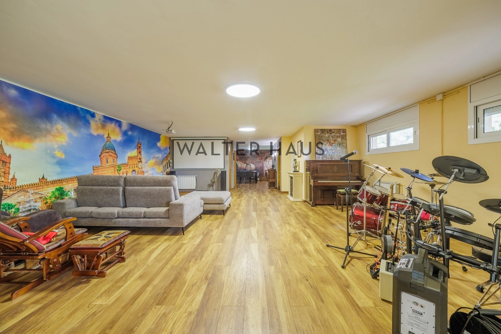 En la planta principal se encuentra el recibidor, un espacioso salón-comedor con chimenea, una cocina independiente y completamente equipada con acceso a un balcón, además de un aseo de cortesía. Desde esta planta se accede al jardín, donde se ubica la piscina privada, perfecta para disfrutar del aire libre. La segunda planta alberga el área de descanso con cuatro habitaciones: un dormitorio individual, dos dobles, y el dormitorio principal con vestidor y baño en suite. Todos los dormitorios cuentan con acceso al exterior, a través de balcón o terraza, y se complementan con dos baños completos adicionales. La planta baja ofrece una práctica y versátil zona de juegos con salida a un porche cubierto, una bodega, lavadero, sala de máquinas, trastero y un aseo. El sistema de calefacción combina suelo radiante y radiadores con caldera de gasoil. Además, hay previsión para instalar un ascensor, aumentando aún más la accesibilidad. La vivienda dispone de aparcamiento dentro del recinto y una segunda zona exterior en la parte superior de la parcela.