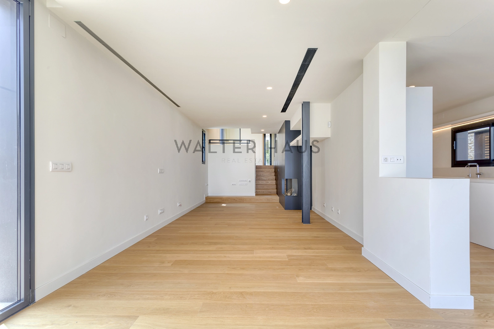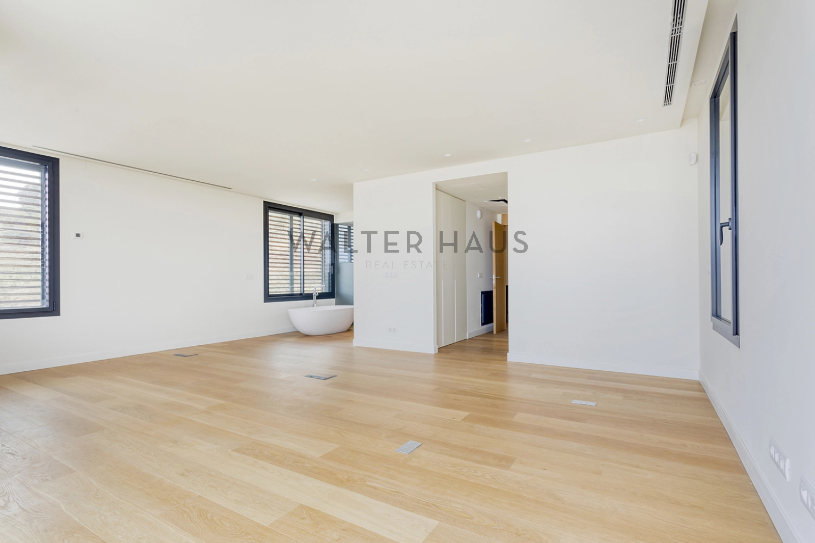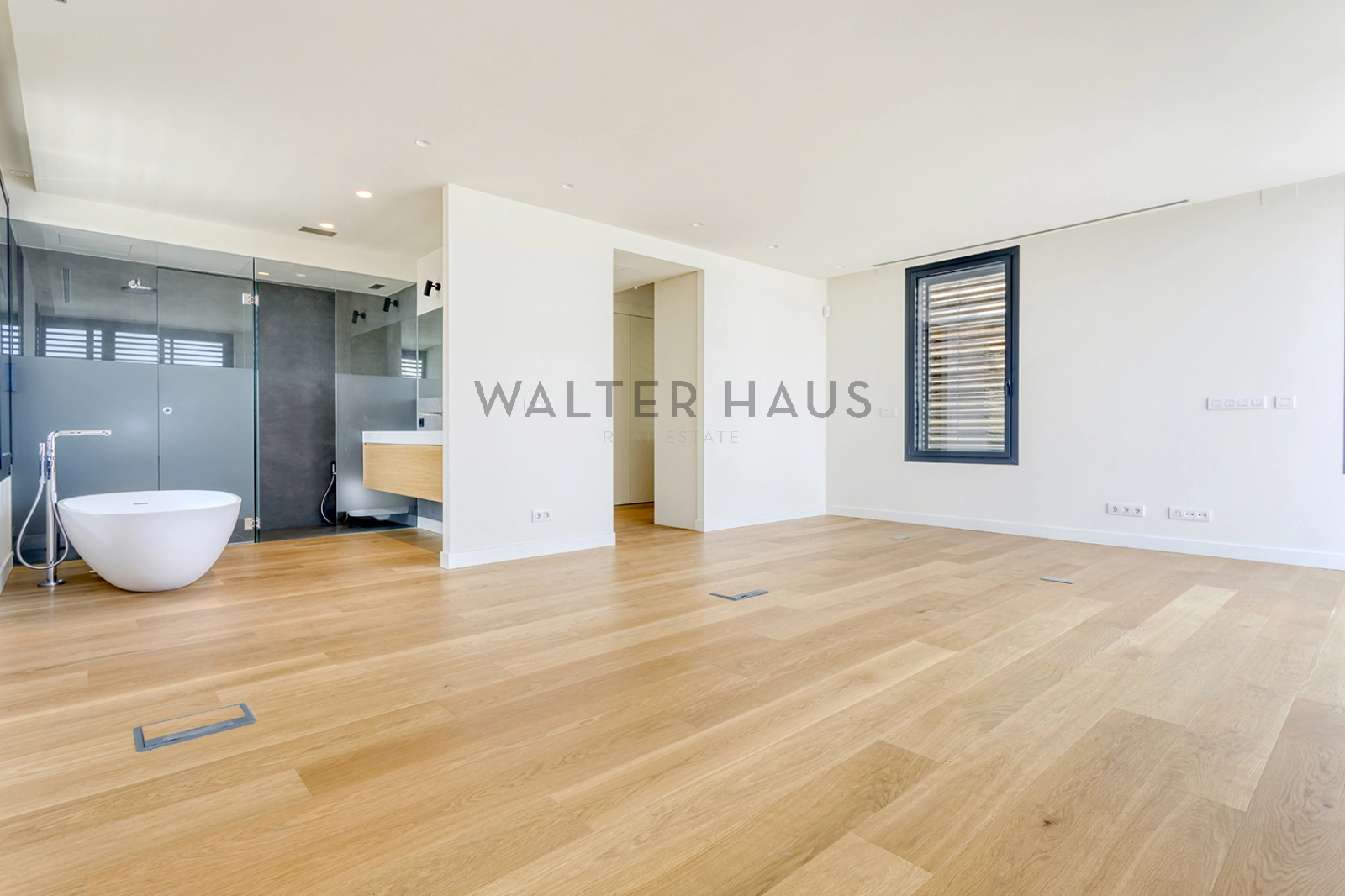 Con su estructura de hormigón, encontramos una mezcla de piedra natural, grandes ventanales y contraventanas correderas de madera que nos permiten jugar con la luz. En el suelo tenemos un parquet natural de roble, con calefacción radiante. La casa también tiene aire acondicionado y carpintería de aluminio de máxima calidad.