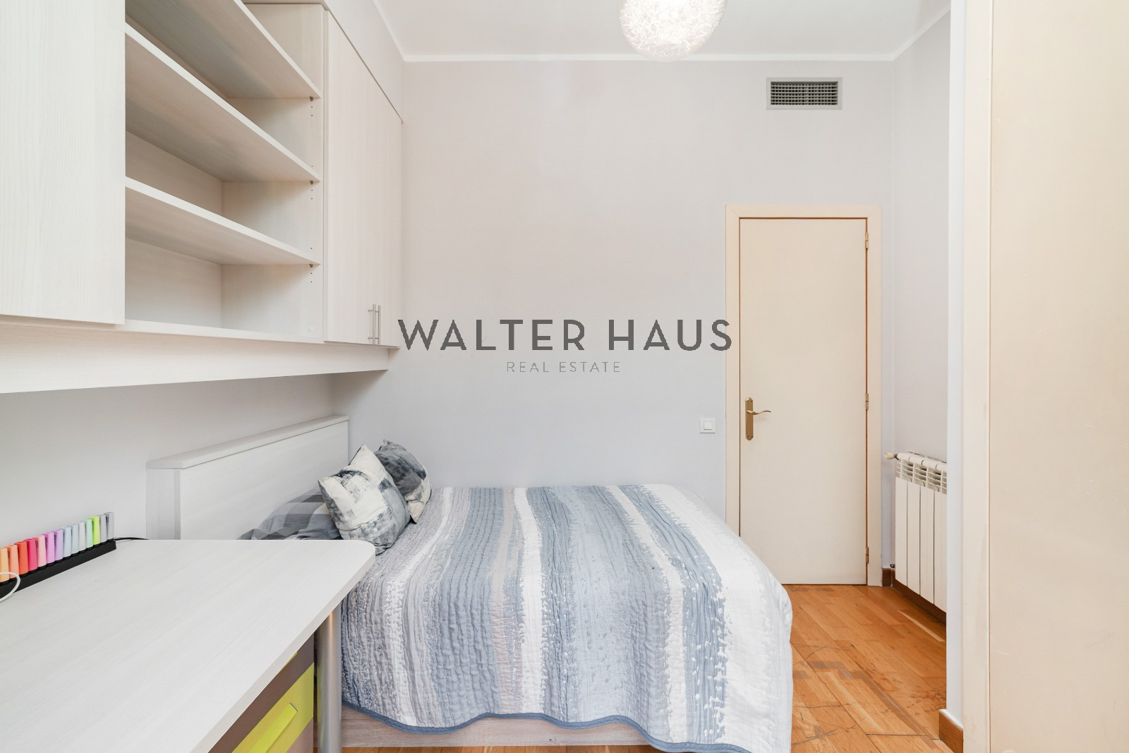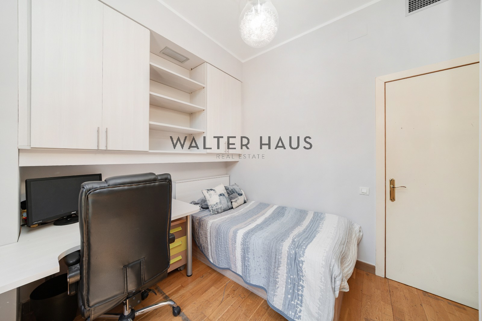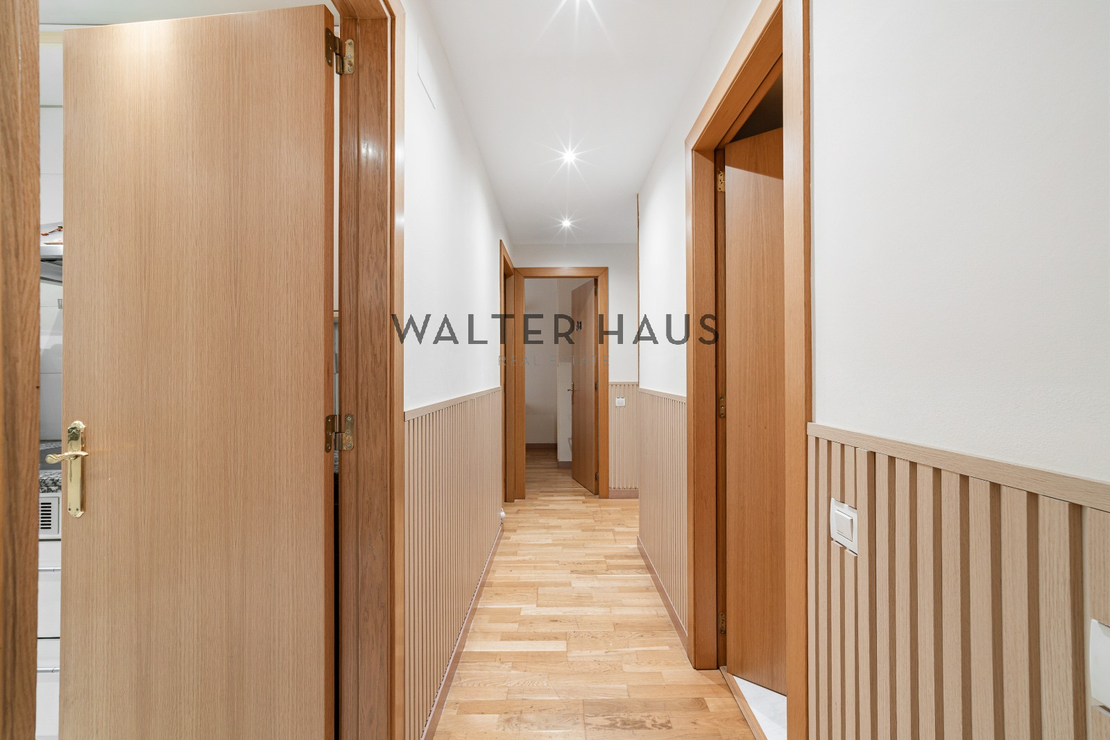 El piso cuenta con cuatro habitaciones, dos de ellas exteriores con balcón y carpintería Climalit de doble cristal, ideales para garantizar aislamiento y tranquilidad. Una de estas estancias es una suite con baño privado. Las otras dos habitaciones, interiores, ofrecen espacio funcional para oficina o dormitorios adicionales. En total, la propiedad dispone de tres baños completos, lo que brinda comodidad para toda la familia o invitados. El sistema de climatización por conductos y el gas natural añaden eficiencia y confort.