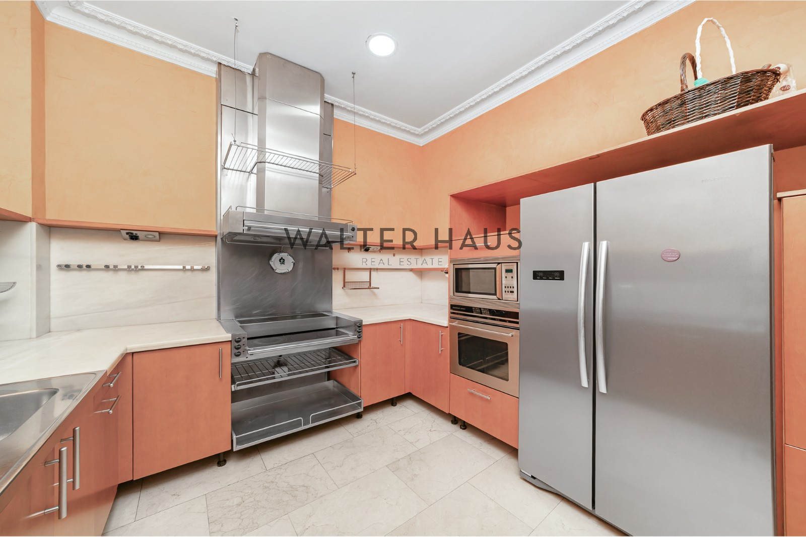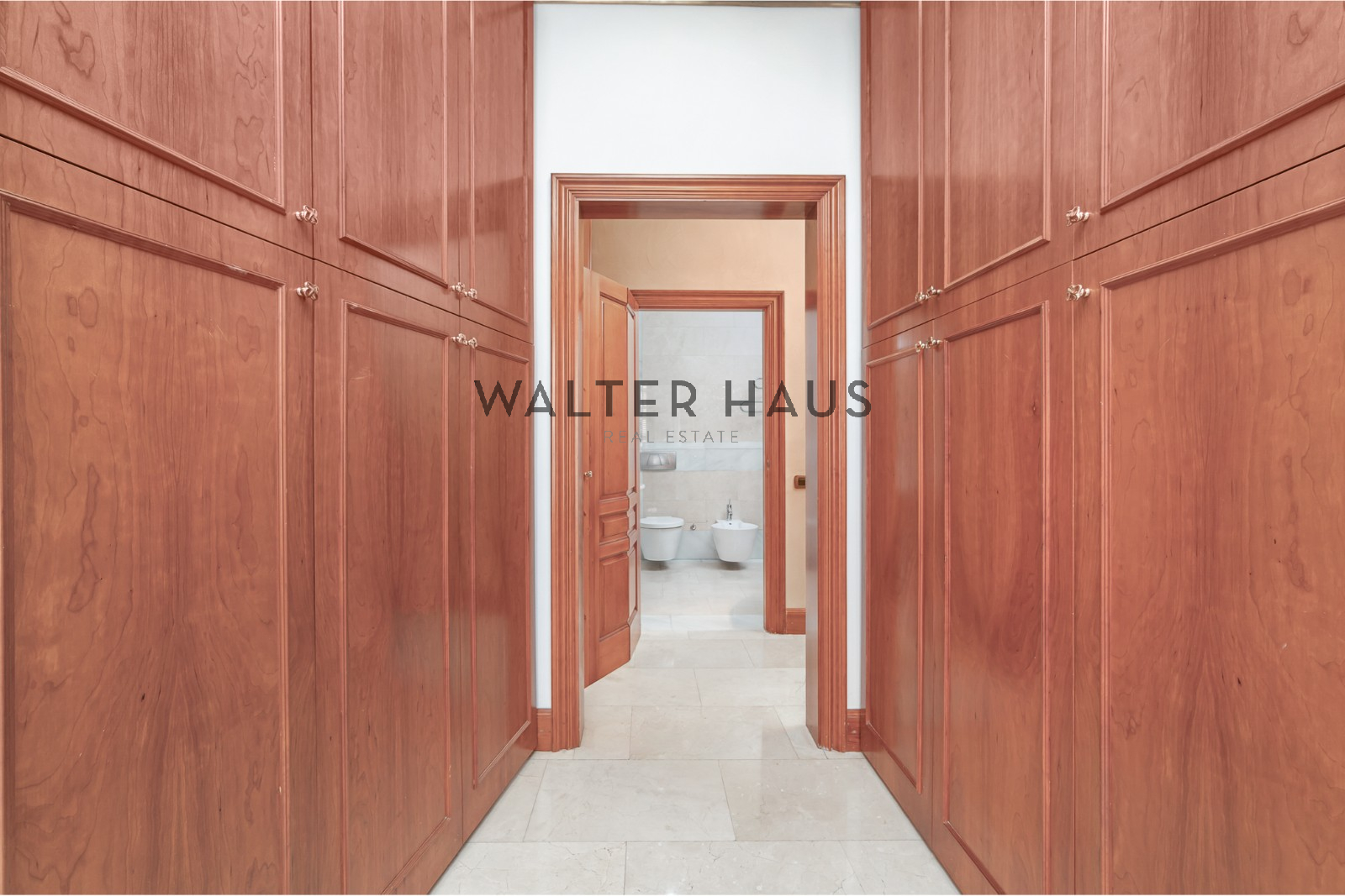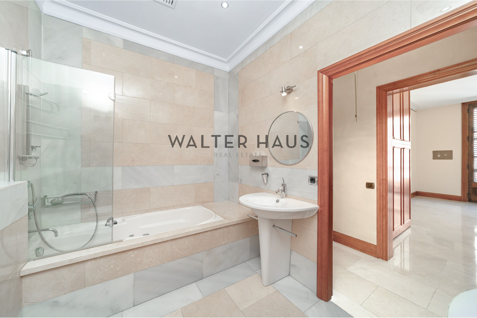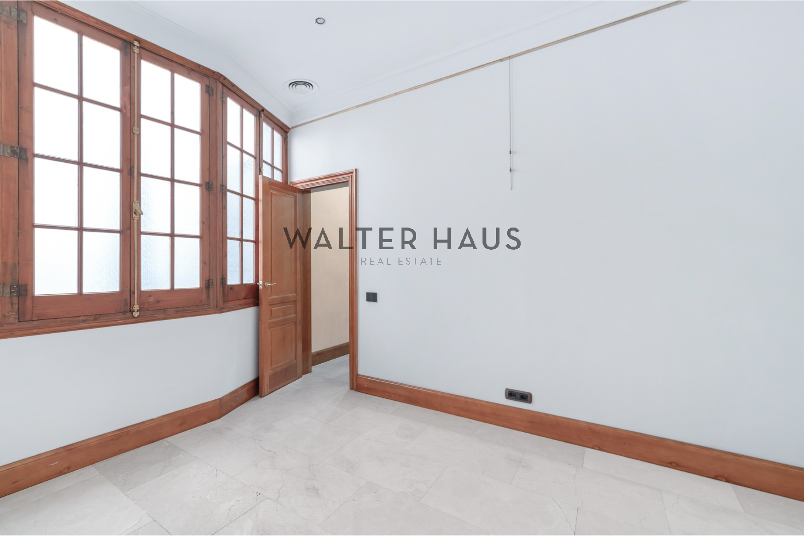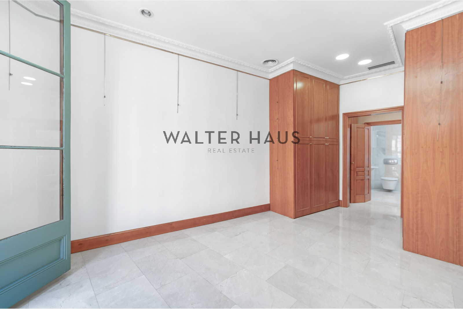El piso cuenta con un amplio salón con salida a dos balcones exteriores que llenan el espacio de luz natural y ofrecen vistas despejadas a Rambla de Catalunya. La cocina independiente es amplia y funcional, y el comedor, insonorizado, es ideal tanto para celebraciones privadas como para teletrabajo. La zona de descanso se compone de tres dormitorios —dos dobles y uno individual— con armarios empotrados y acabados de alta calidad, además de un dormitorio adicional junto a la entrada actualmente acondicionado como vestidor. Dispone de dos baños completos, y los suelos de mármol travertino en tonos beige aportan coherencia y calidez a cada estancia.