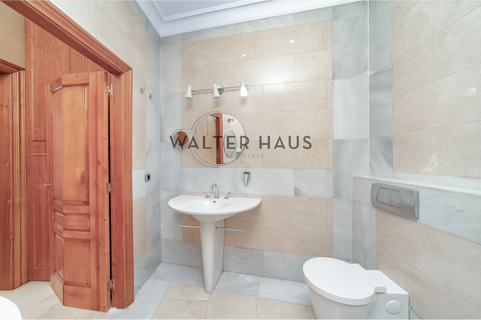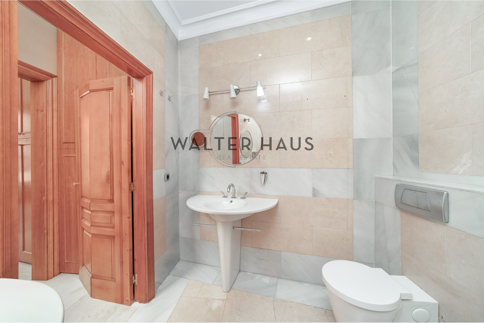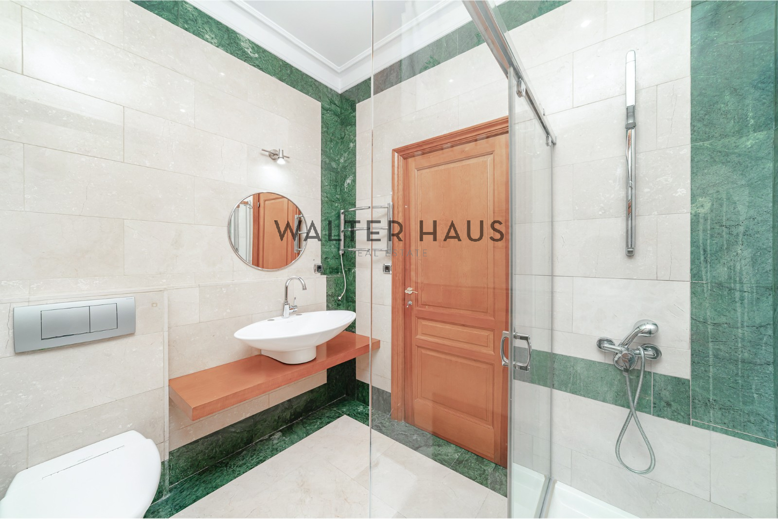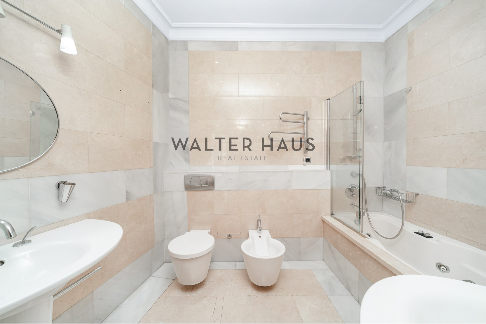 El piso cuenta con un amplio salón con salida a dos balcones exteriores que llenan el espacio de luz natural y ofrecen vistas despejadas a Rambla de Catalunya. La cocina independiente es amplia y funcional, y el comedor, insonorizado, es ideal tanto para celebraciones privadas como para teletrabajo. La zona de descanso se compone de tres dormitorios —dos dobles y uno individual— con armarios empotrados y acabados de alta calidad, además de un dormitorio adicional junto a la entrada actualmente acondicionado como vestidor. Dispone de dos baños completos, y los suelos de mármol travertino en tonos beige aportan coherencia y calidez a cada estancia.