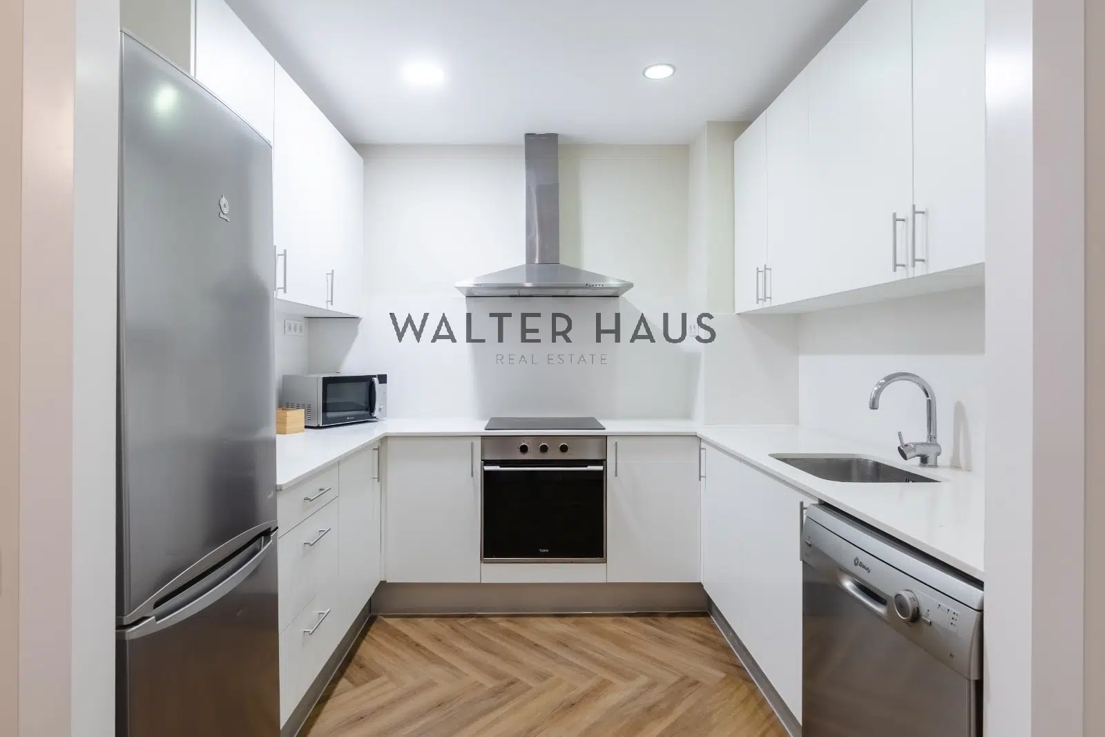 La vivienda cuenta con tres habitaciones, una de ellas tipo suite con baño privado, y dos habitaciones dobles adicionales. La cocina tipo office está completamente equipada con electrodomésticos de alta gama, ideal para el día a día o para quienes disfrutan cocinando en casa. Los acabados modernos —como los suelos de parqué en espiga y los armarios empotrados— se integran a la perfección con los elementos clásicos, creando una atmósfera cálida y funcional. Las ventanas con triple acristalamiento garantizan un excelente aislamiento acústico y térmico. Además, el edificio dispone de portería y una terraza comunitaria con piscina y vistas espectaculares al puerto.