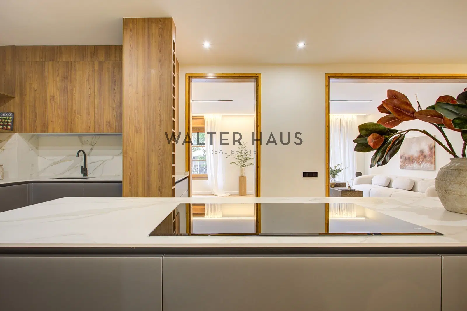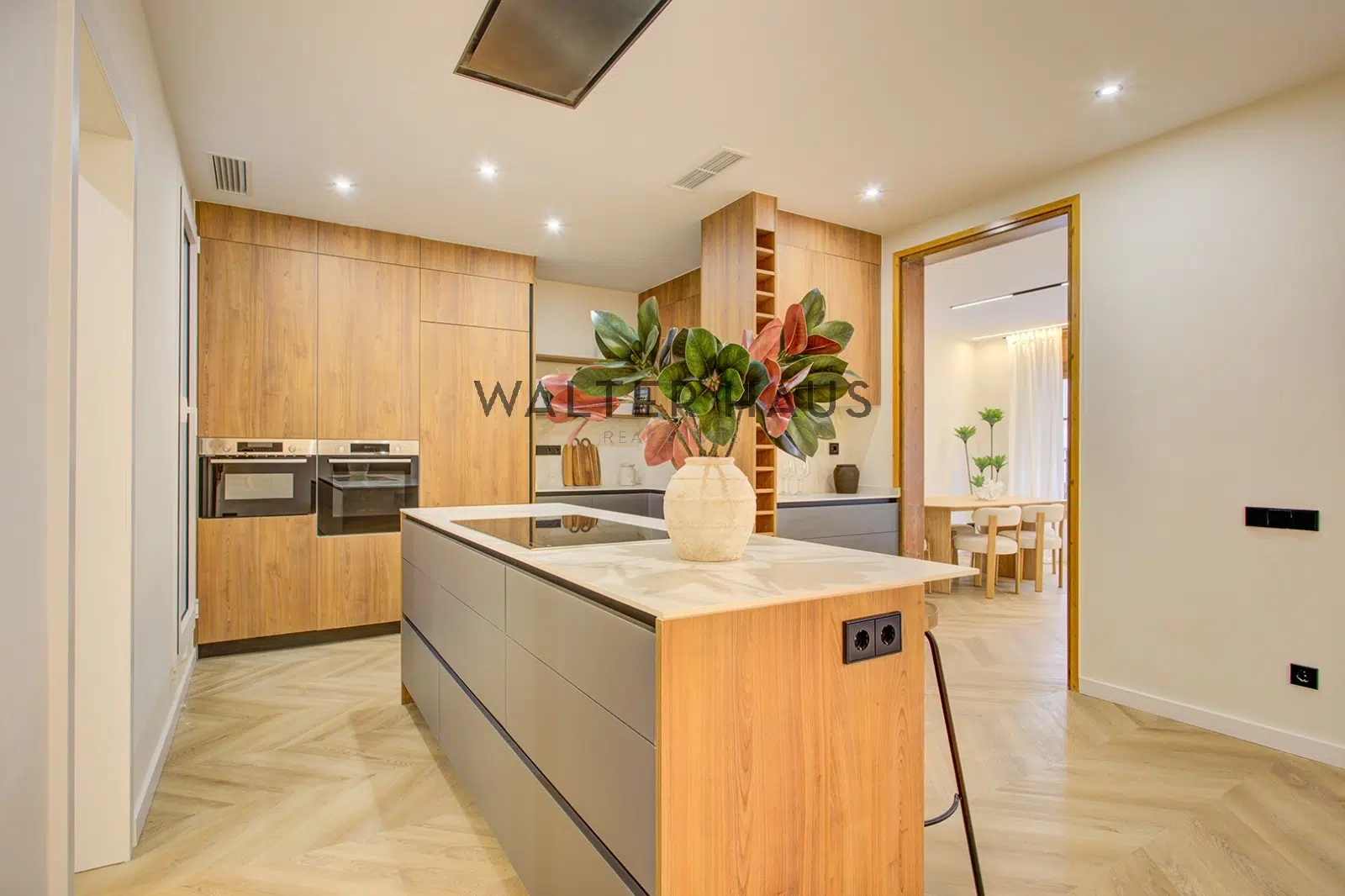 La propiedad ofrece una magnífica combinación de amplitud, funcionalidad y elegancia, con una distribución pensada para una vida familiar cómoda y sofisticada. La zona de día destaca por un espectacular salón-comedor de más de 34 m², muy luminoso, conectado a una amplia cocina de diseño de más de 30 m², concebida como un espacio social con isla central y zona office, ideal tanto para el día a día como para recibir invitados.