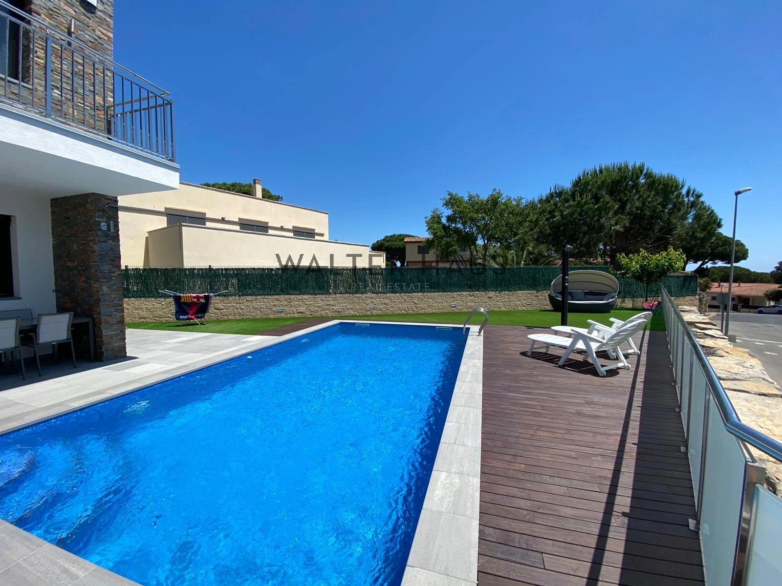 La planta principal incluye una habitación doble con vestidor y baño completo, ideal como dormitorio de invitados o baño de cortesía. En esta misma planta, el salón-comedor y la cocina se abren al jardín con piscina orientada al sur, creando un espacio luminoso y acogedor gracias a los grandes ventanales que permiten la entrada de luz natural durante todo el año. En cuanto a los acabados y equipamiento, la casa cuenta con suelos de mármol, aire acondicionado por splits en todas las estancias, cocina con electrodomésticos de alta gama y un lavadero con acceso directo al jardín. Las puertas correderas entre la cocina y el comedor permiten una mayor versatilidad según el tipo de reunión. En la planta superior se encuentran tres dormitorios dobles con vestidor y baño completo, uno de ellos en suite con bañera redonda. Dos habitaciones tienen salida a una terraza con vistas despejadas a Sant Feliu de Guíxols. En la azotea, accesible por escalera exterior, se puede habilitar un espacio chill-out o comedor exterior con vistas al mar Mediterráneo. La planta baja ofrece un gimnasio totalmente equipado, sauna, un baño completo y un garaje con capacidad para varios vehículos. Su distribución práctica, la luminosidad de sus estancias, el jardín privado con piscina y barbacoa, así como su cercanía al mar y a servicios esenciales, la convierten en una opción atractiva para quienes buscan confort, privacidad y conexión con el entorno.