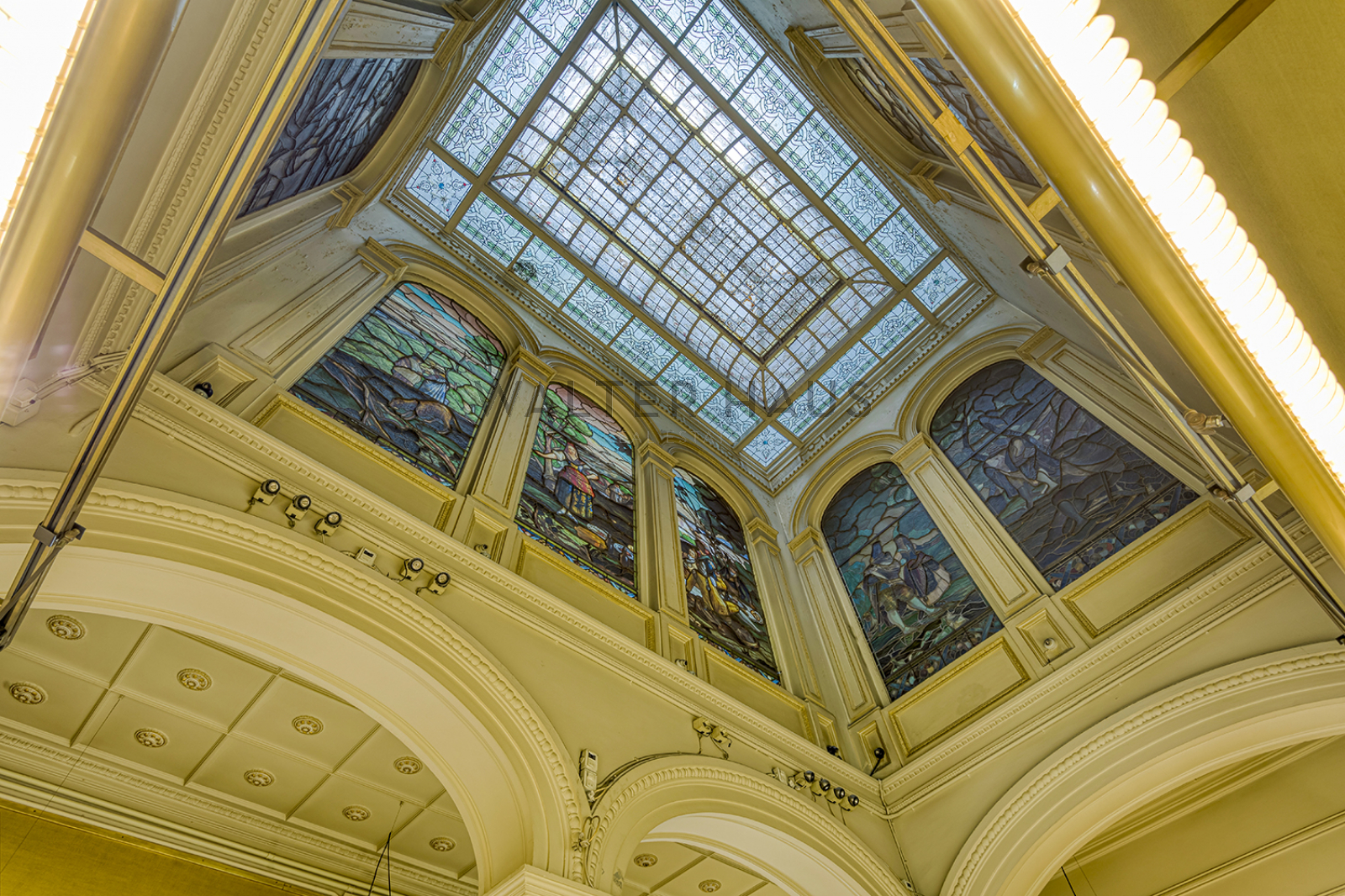 Este magnífico local mantiene los elementos originales como techos ornamentados muy altos y grandes espacios.