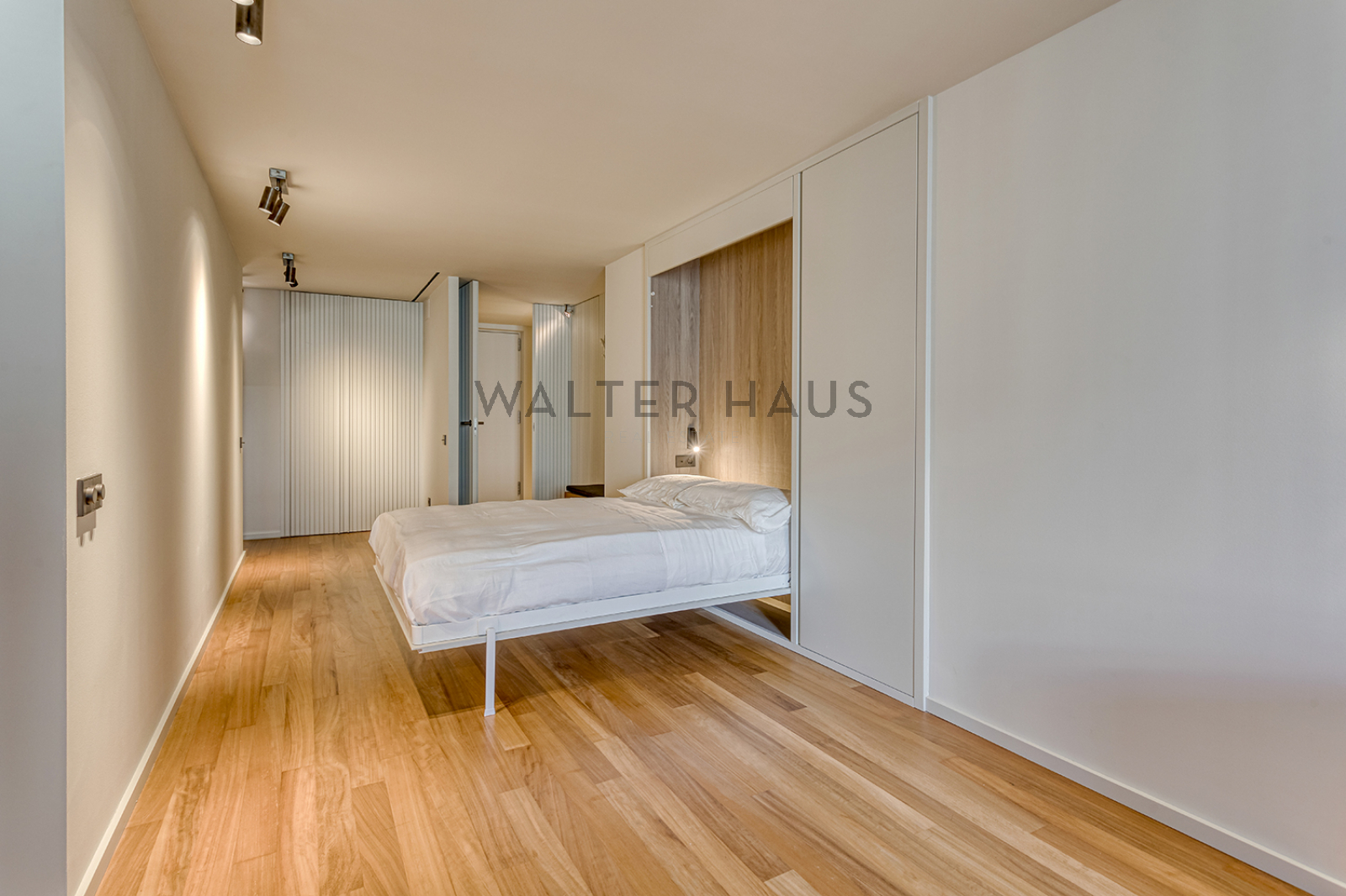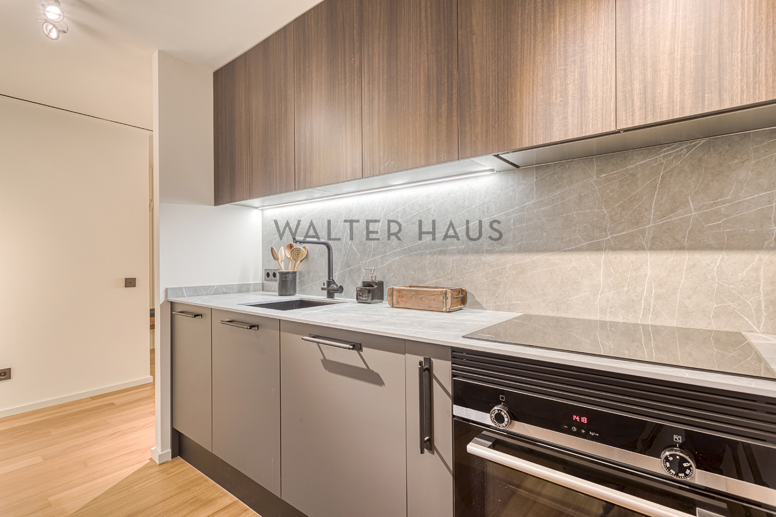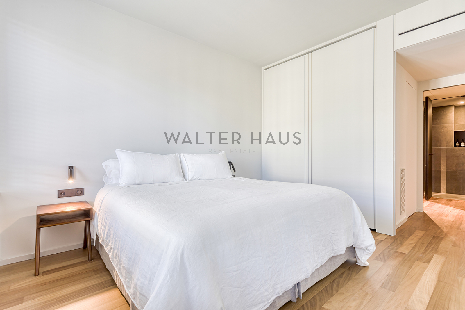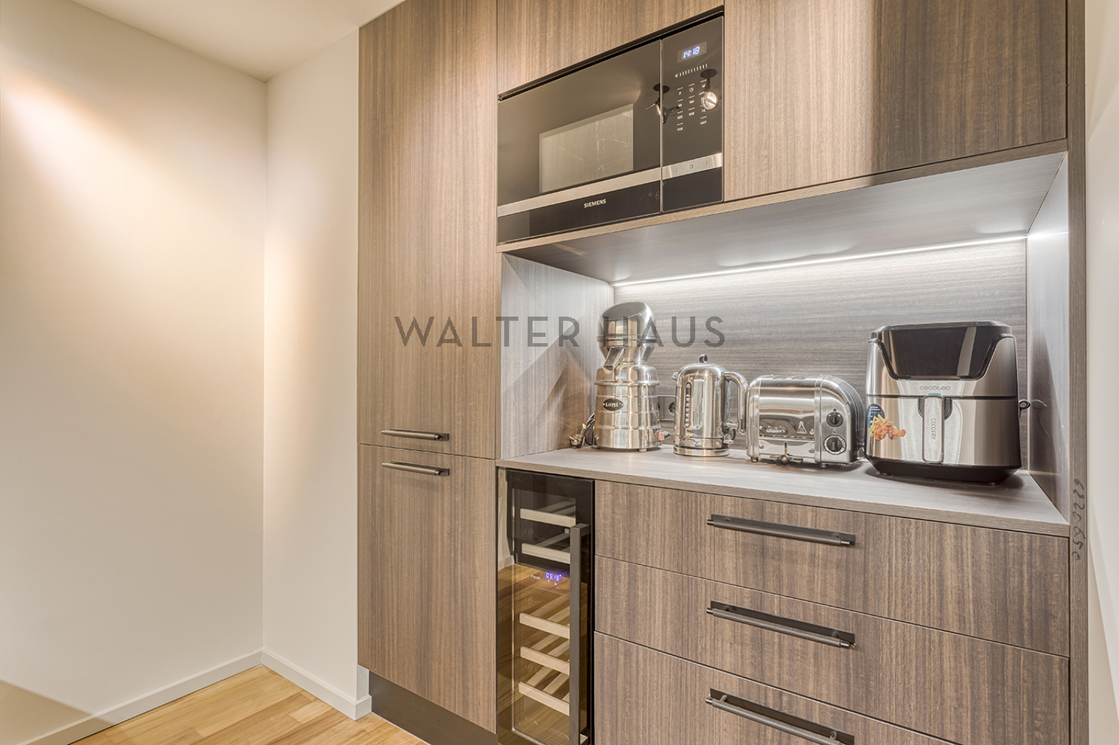 La zona de día viene distribuida en un luminoso salón comedor con con grandes ventanales que permiten la entrada de luz natural y una cocina independiente semi-abierta completamente equipada con electrodomésticos de alta gama a estrenar. La combinación de iluminación, led y de diseño, consiguen generar un ambiente muy acogedor.