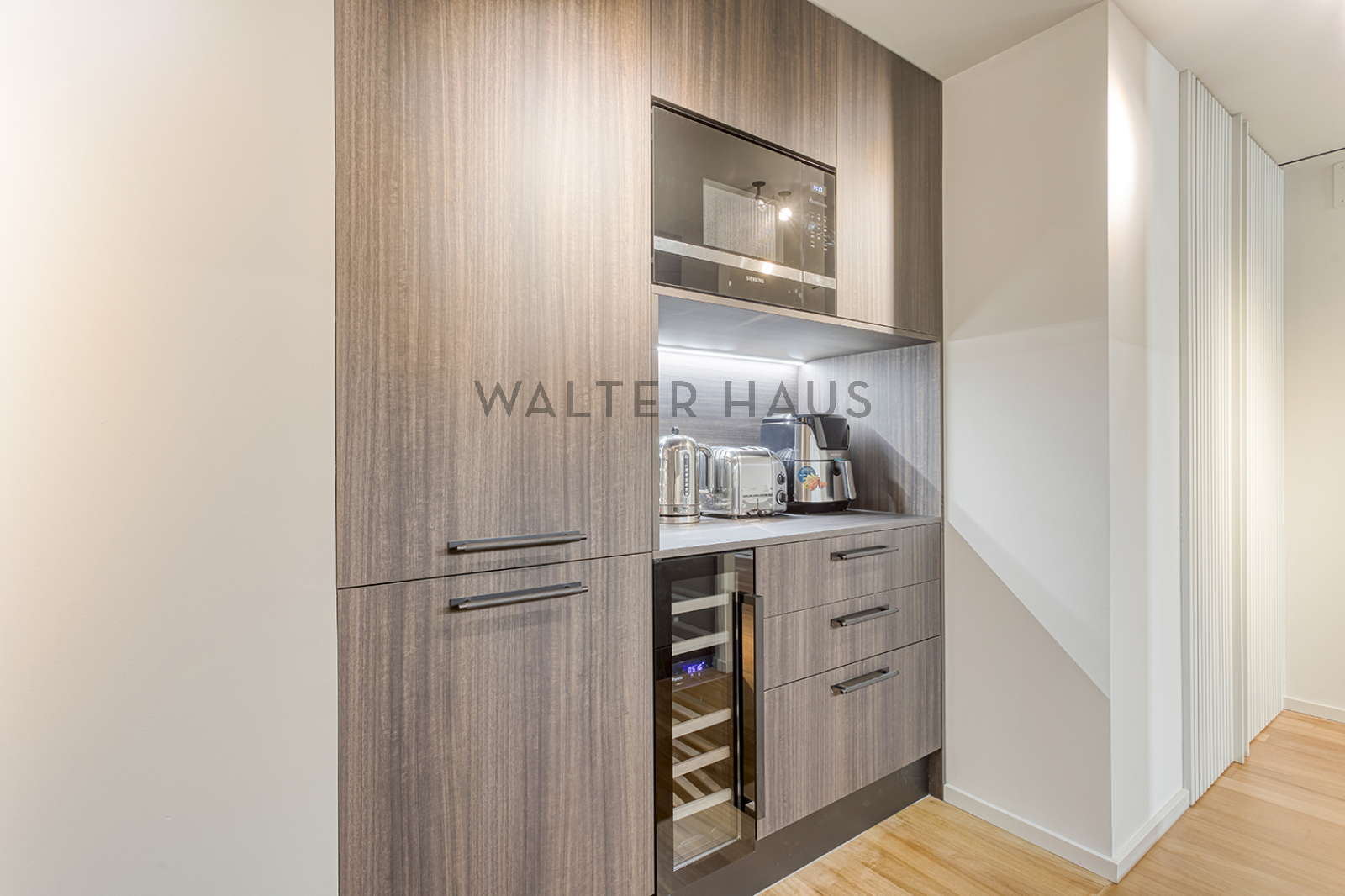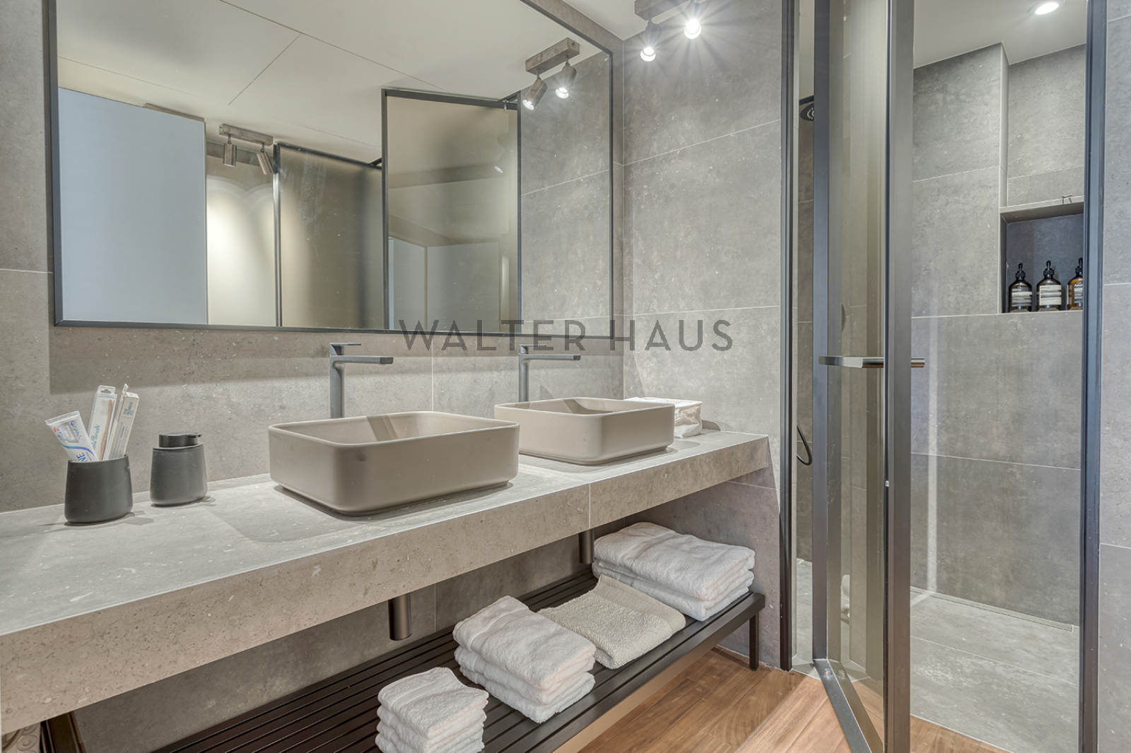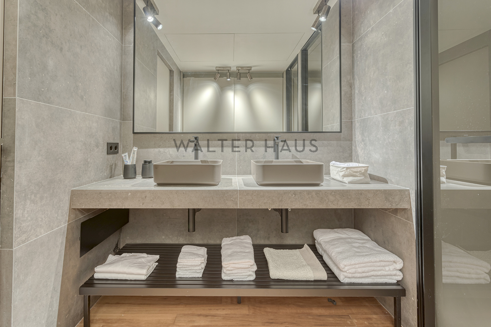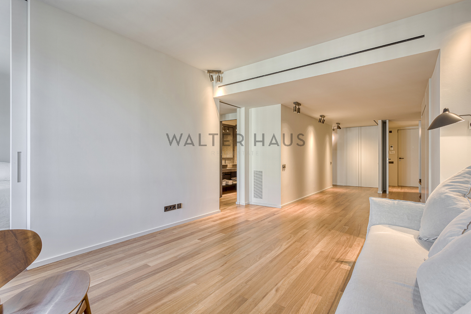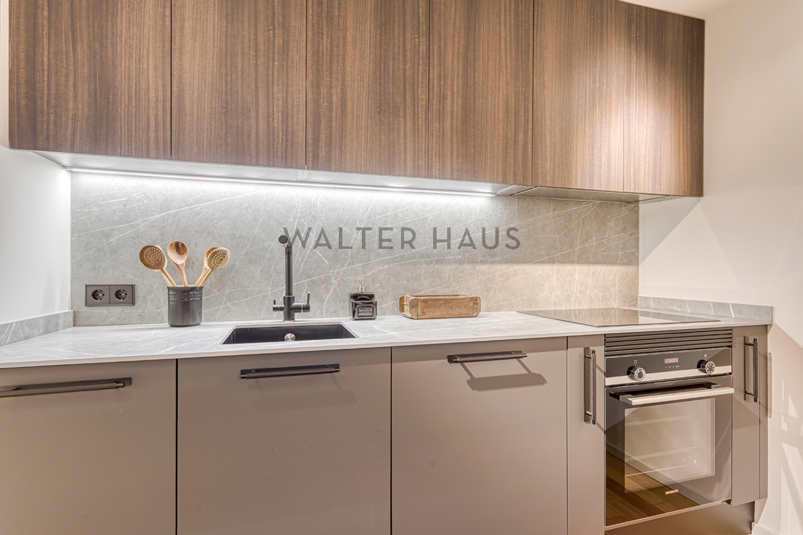 La zona de día viene distribuida en un luminoso salón comedor con con grandes ventanales que permiten la entrada de luz natural y una cocina independiente semi-abierta completamente equipada con electrodomésticos de alta gama a estrenar. La combinación de iluminación, led y de diseño, consiguen generar un ambiente muy acogedor.