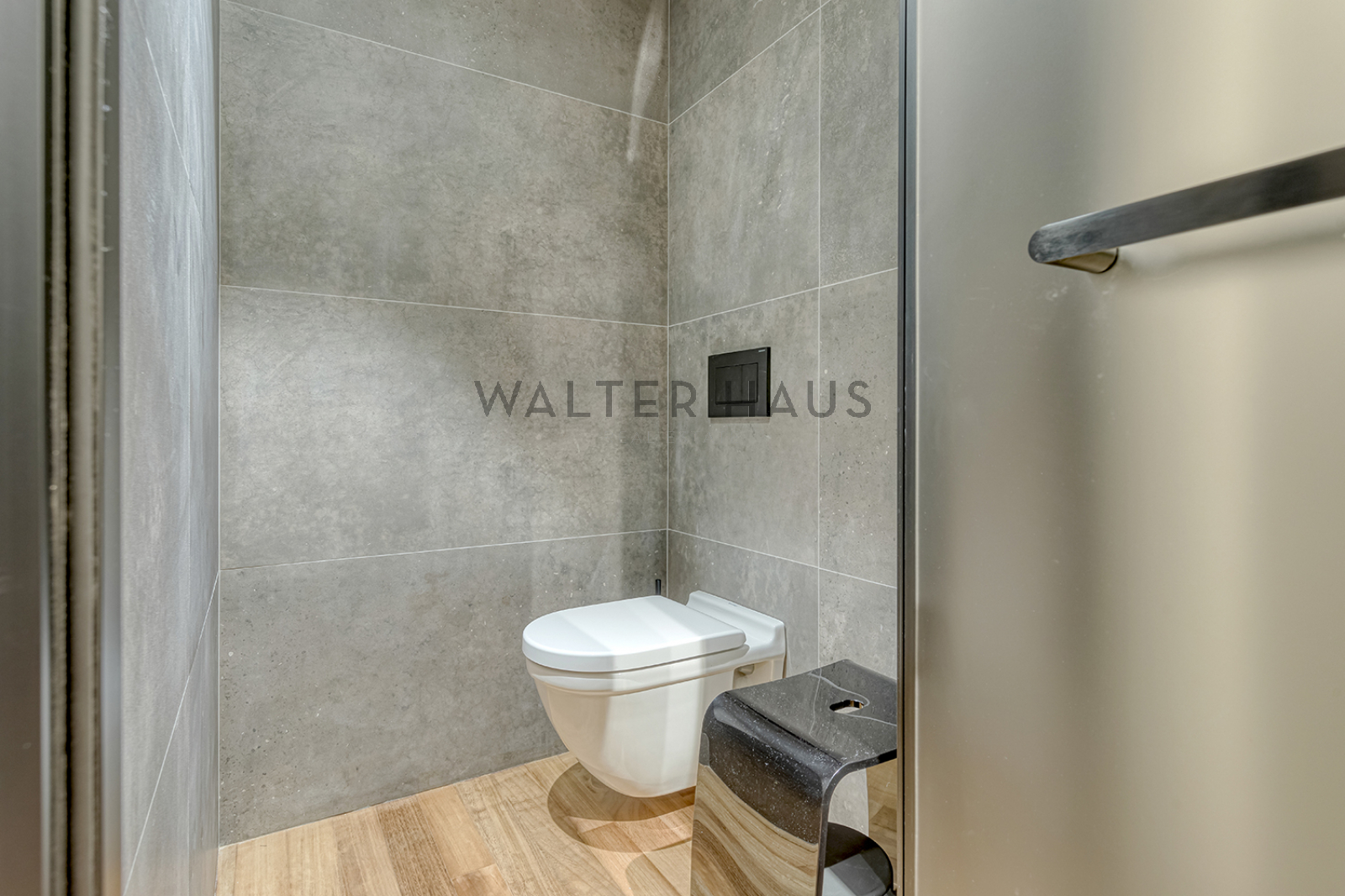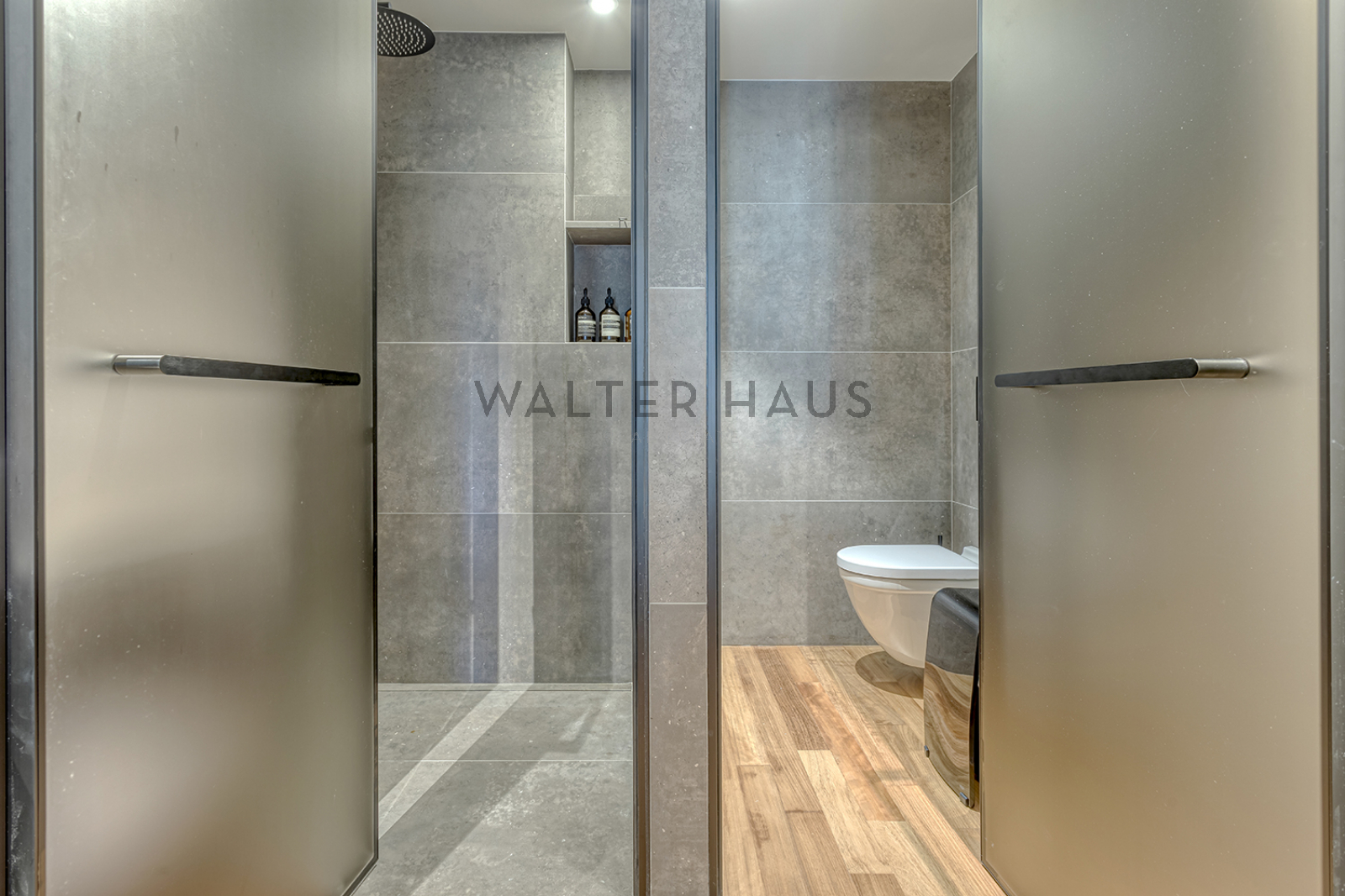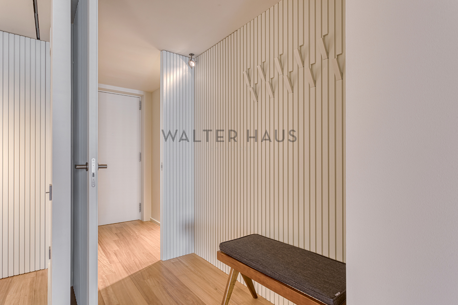 En la entrada, encontramos una doble puerta que separa espacios de vestíbulo y el resto de la vivienda. Todas las estancias disponen de suelo de roble, aire acondicionado y calefacción, carpintería de madera y doble acristalamiento. Los detalles de la propiedad vienen cuidadosamente diseñados a medida con materiales de alta calidad.