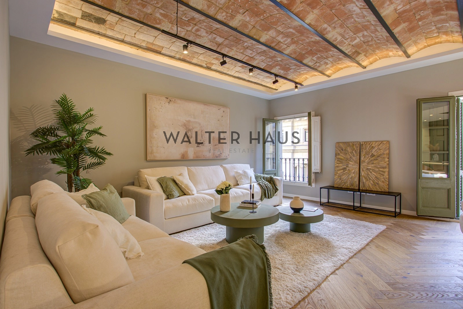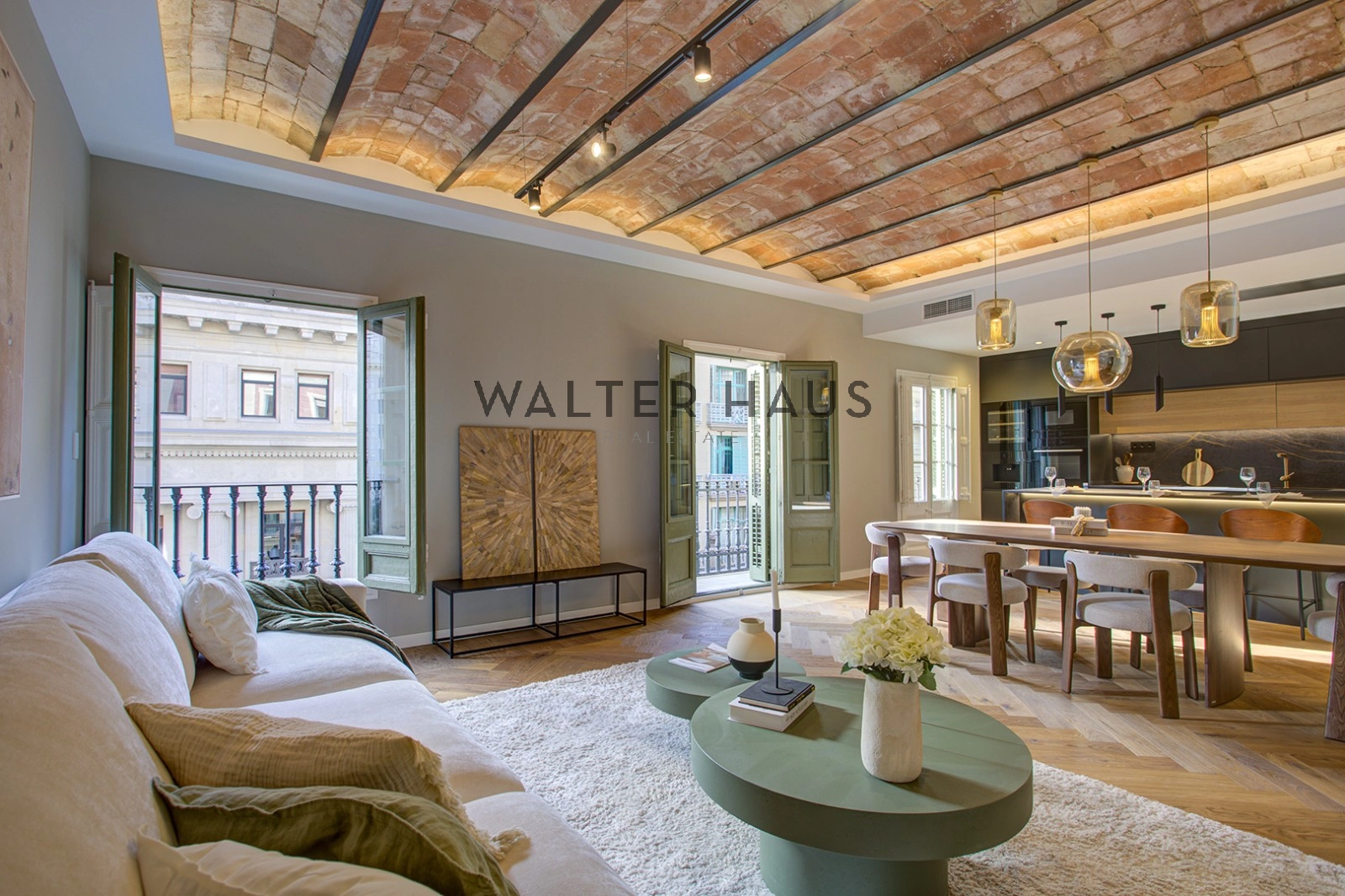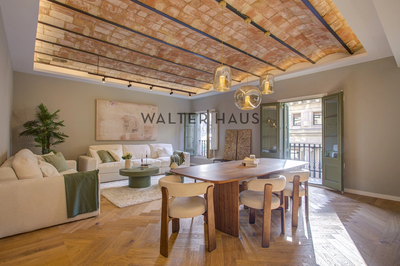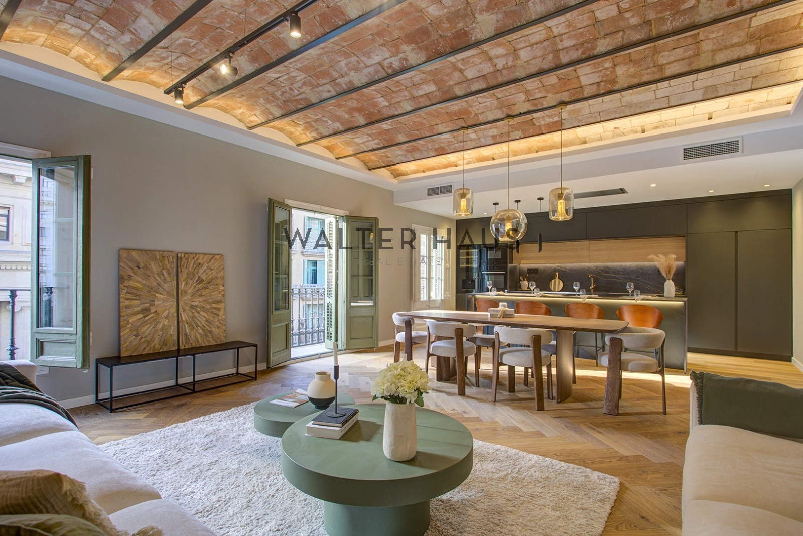 Exclusivo piso de 210 m² construidos recientemente reformado a estrenar, situado en la quinta planta real de una finca regia en el centro de Barcelona. La vivienda es una perfecta combinación de elegancia clásica y diseño contemporáneo, con amplios espacios bañados con luz natural gracias a sus balcones que ofrecen vistas despejada a la ciudad y la Catedral de Barcelona.