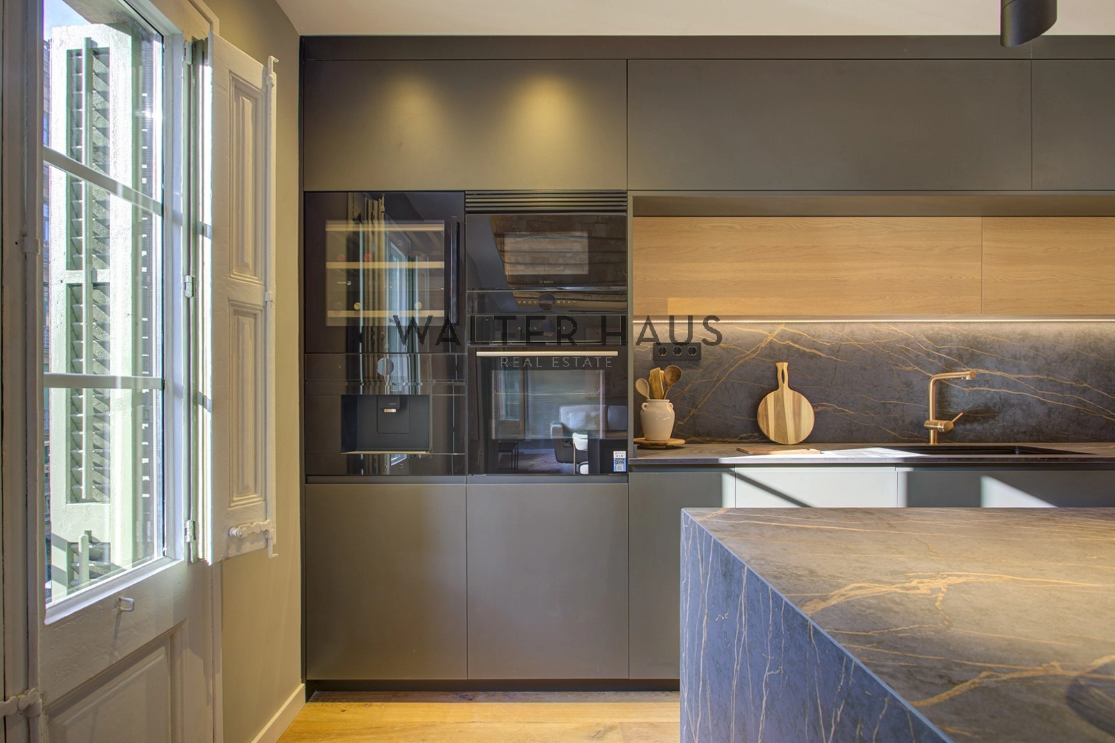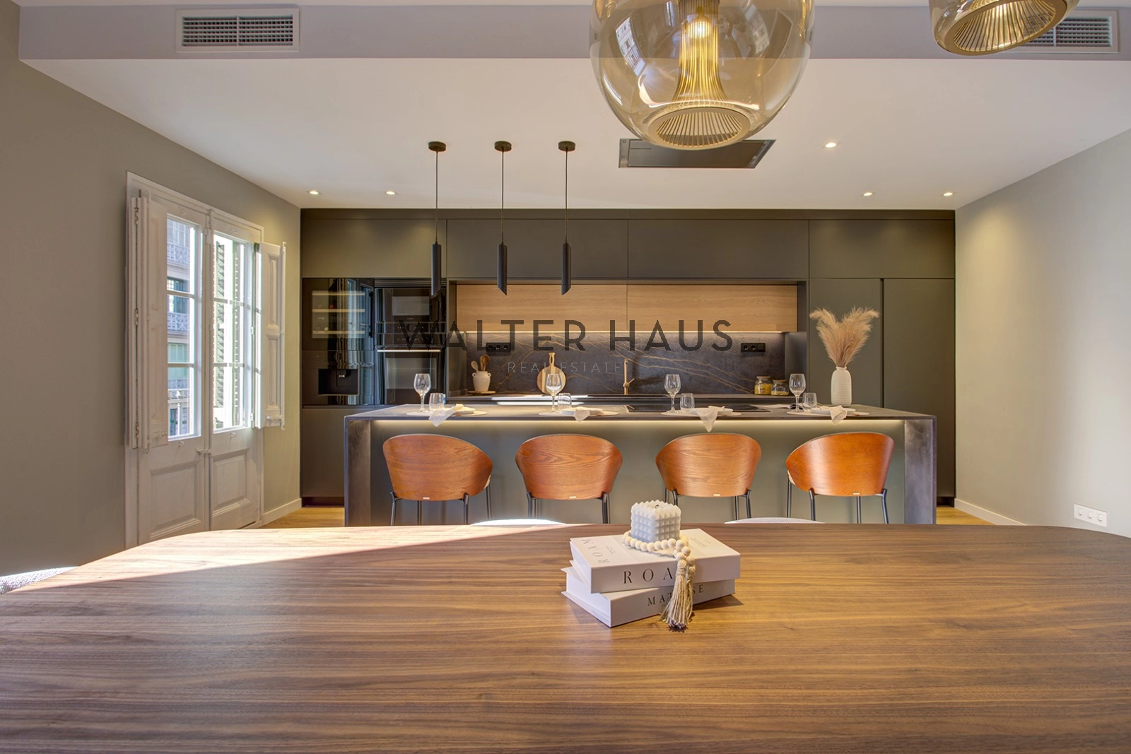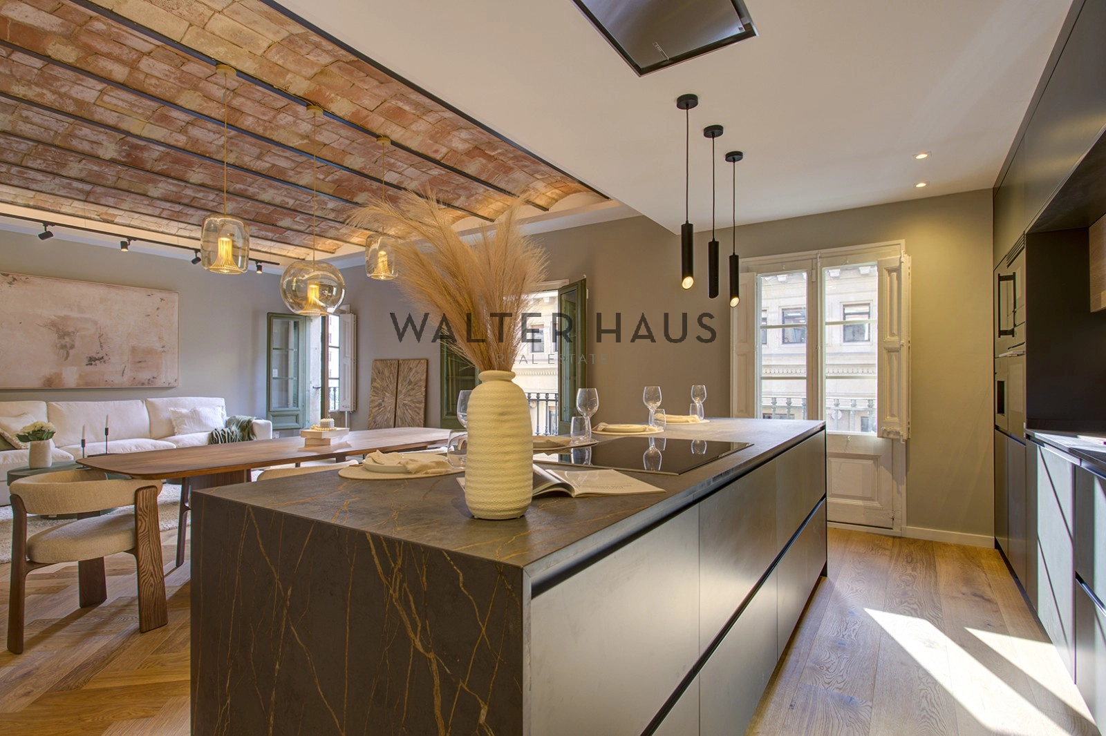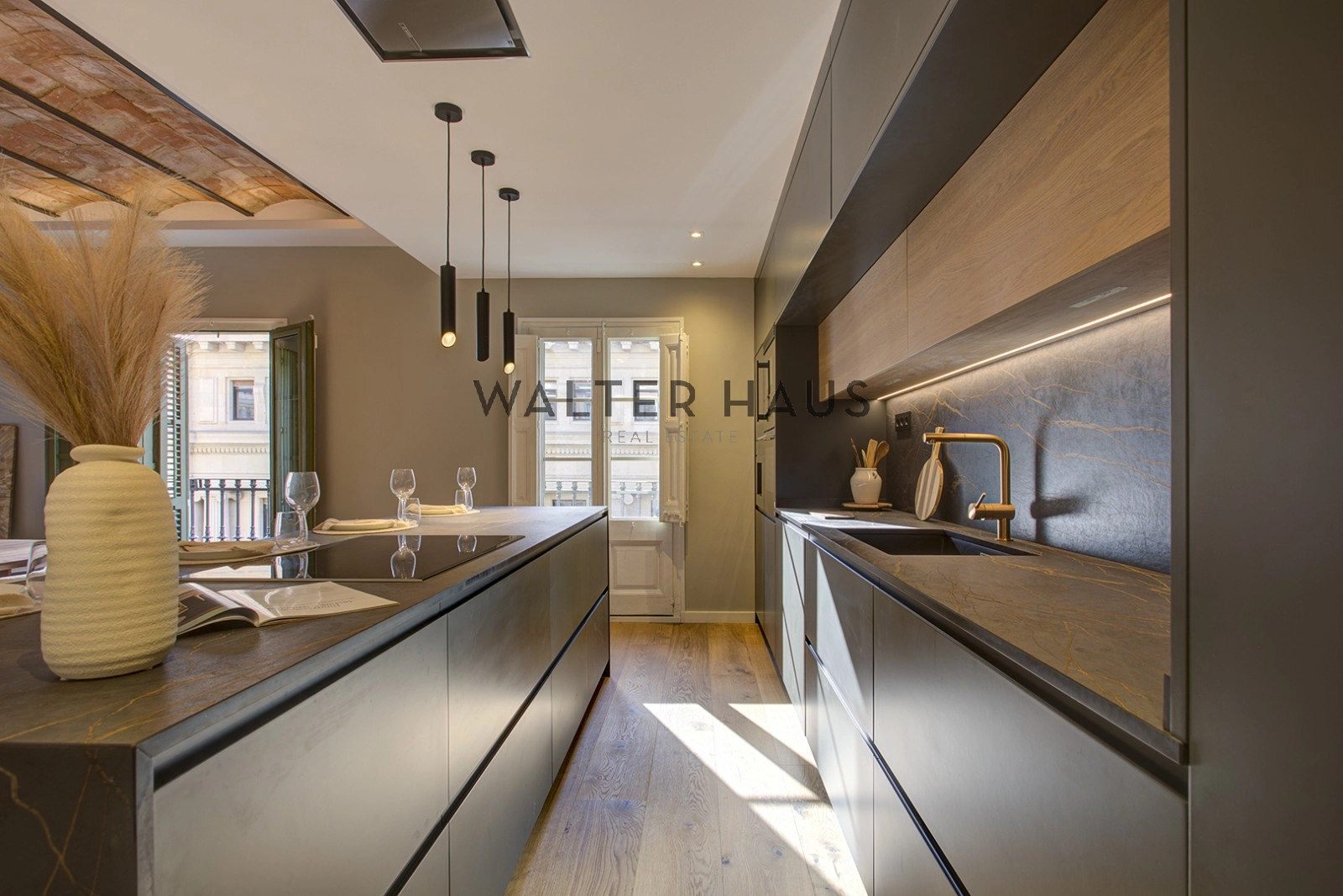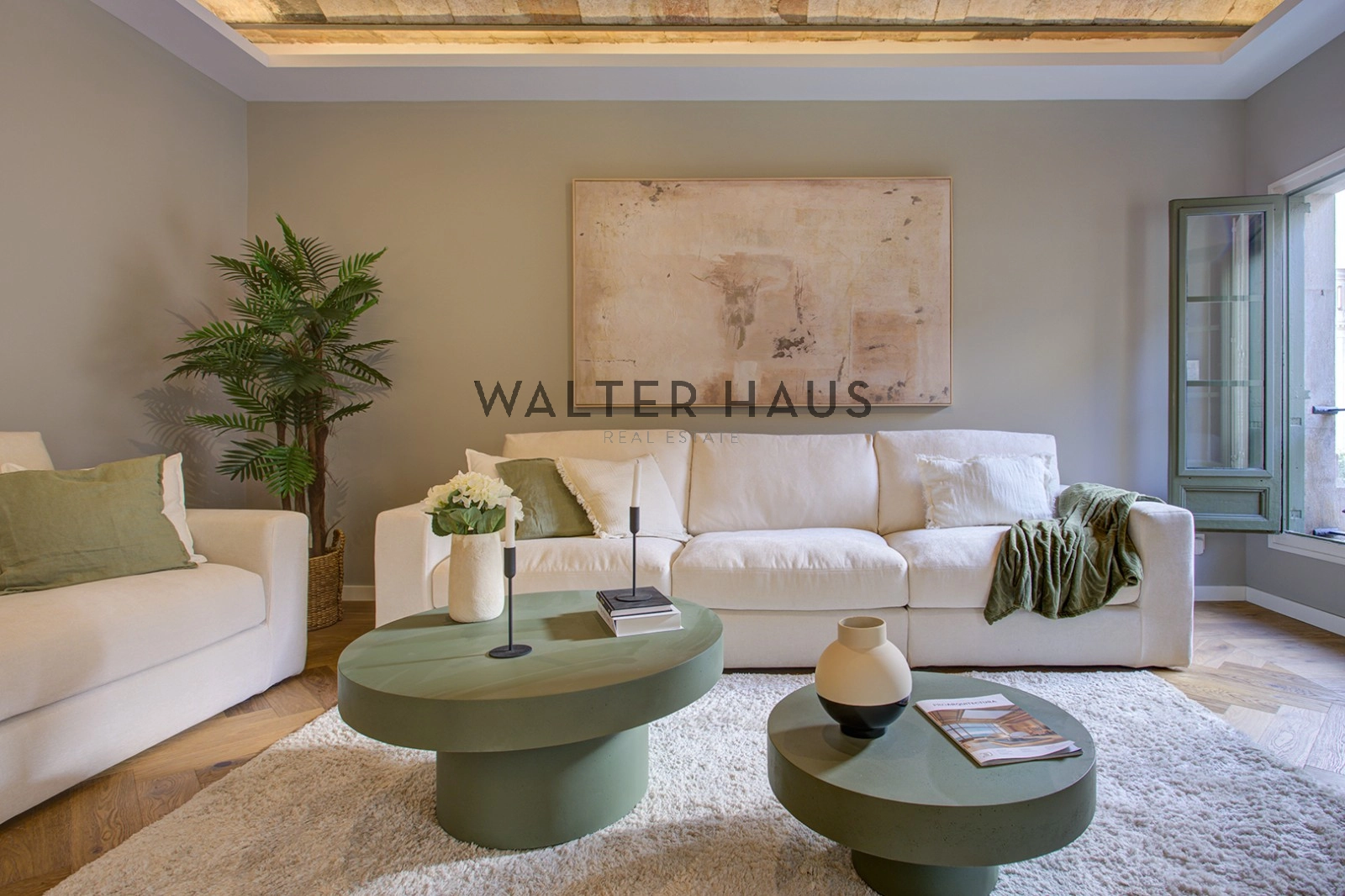 Exclusivo piso de 210 m² construidos recientemente reformado a estrenar, situado en la quinta planta real de una finca regia en el centro de Barcelona. La vivienda es una perfecta combinación de elegancia clásica y diseño contemporáneo, con amplios espacios bañados con luz natural gracias a sus balcones que ofrecen vistas despejada a la ciudad y la Catedral de Barcelona.