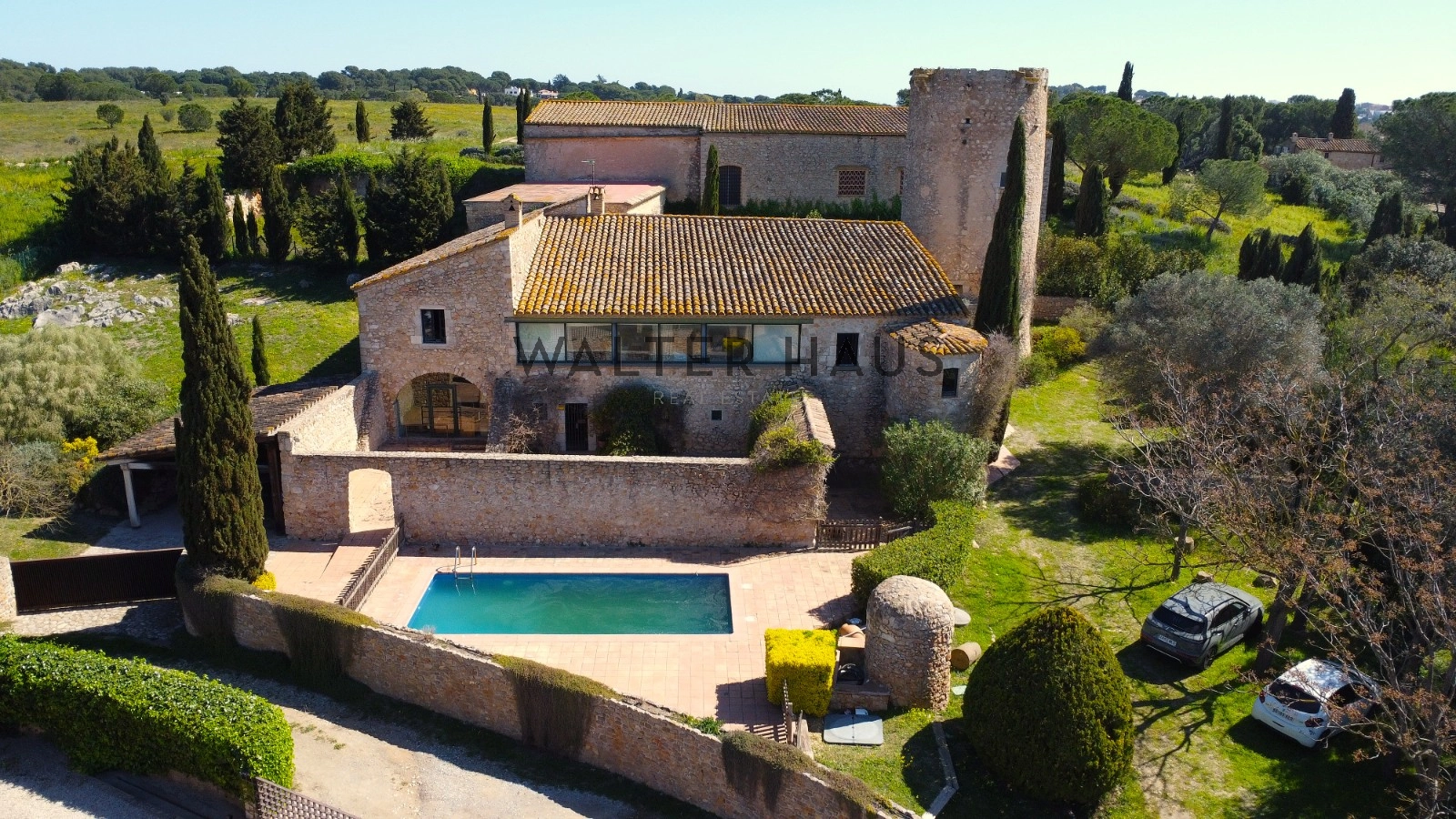 Esta magnífica masía de 828 m² se encuentra en una amplia parcela de 8,980 m², ofreciendo un espacio ideal para quienes buscan privacidad, comodidad y contacto con la naturaleza. La propiedad, cuidadosamente diseñada, combina la esencia de la arquitectura tradicional con comodidades modernas. Su imponente fachada con torre mirador destaca desde el primer momento, ofreciendo una imagen sólida y elegante en un entorno natural privilegiado.