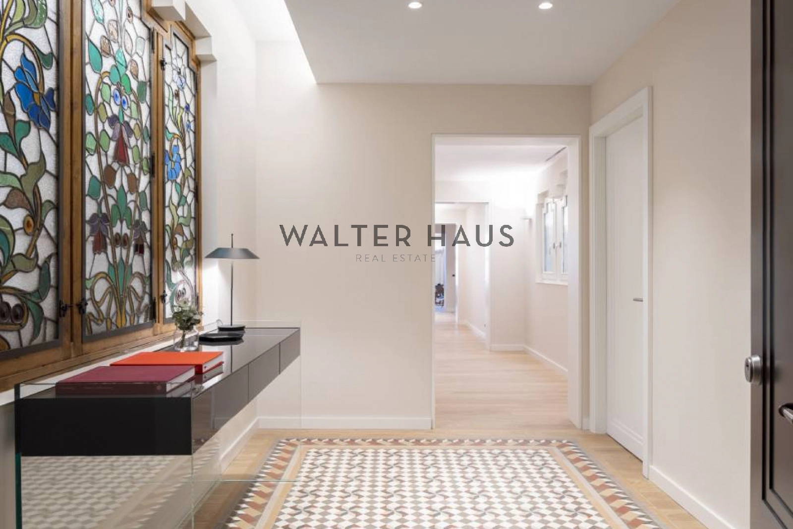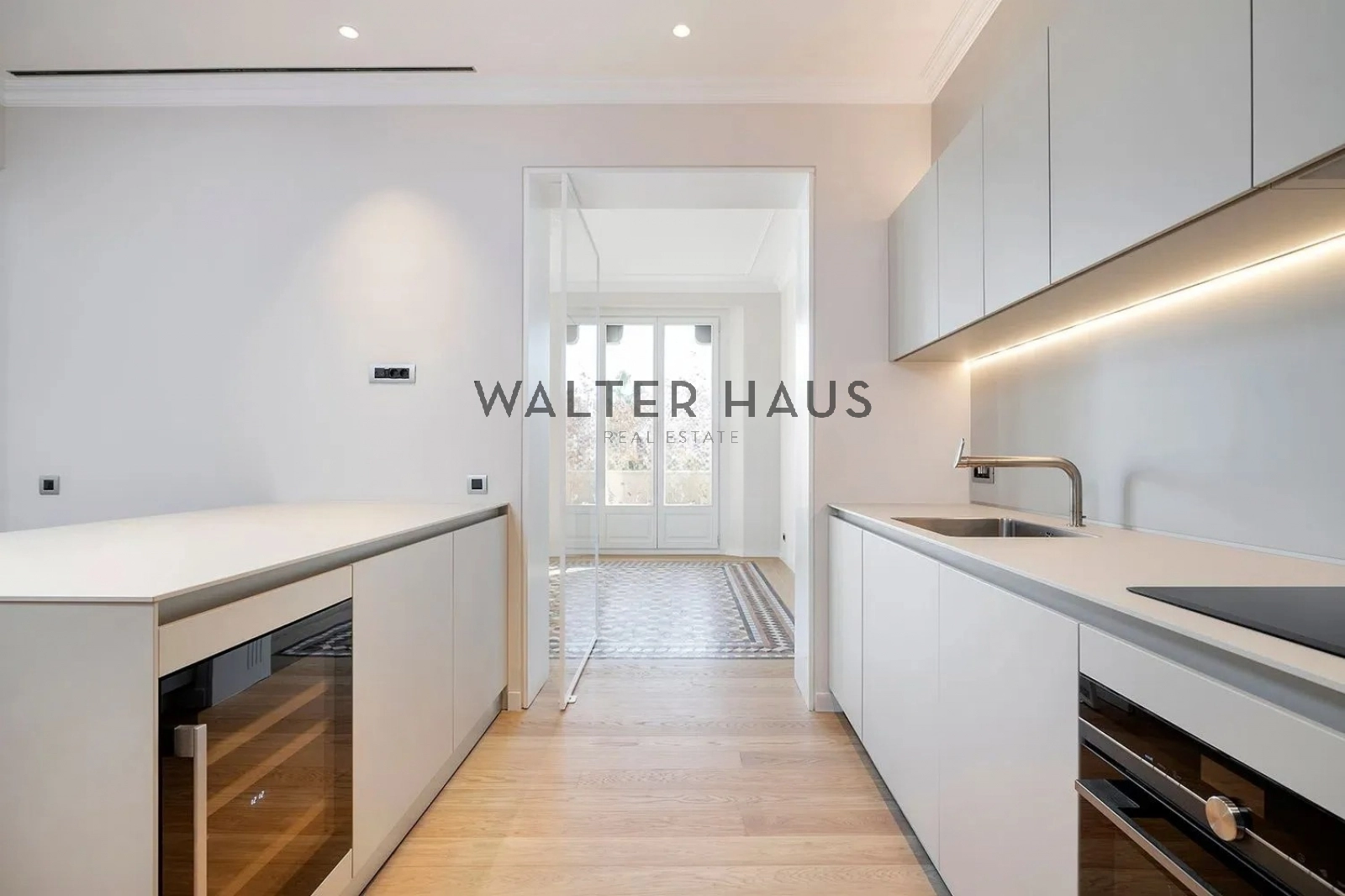 Los suelos de parquet de madera natural mezclados con el suelo de Nolla restaurado, armarios y puertas Carré, y la grifería Hansgrohe aportan elegancia y funcionalidad. La climatización por aerotermia, con calefacción y aire acondicionado por conductos, asegura un ambiente óptimo durante todo el año. La propiedad destaca por sus acabados de alta calidad, que garantizan confort y eficiencia energética. Además, la carpintería exterior Technal con doble acristalamiento mejora el aislamiento térmico y acústico.