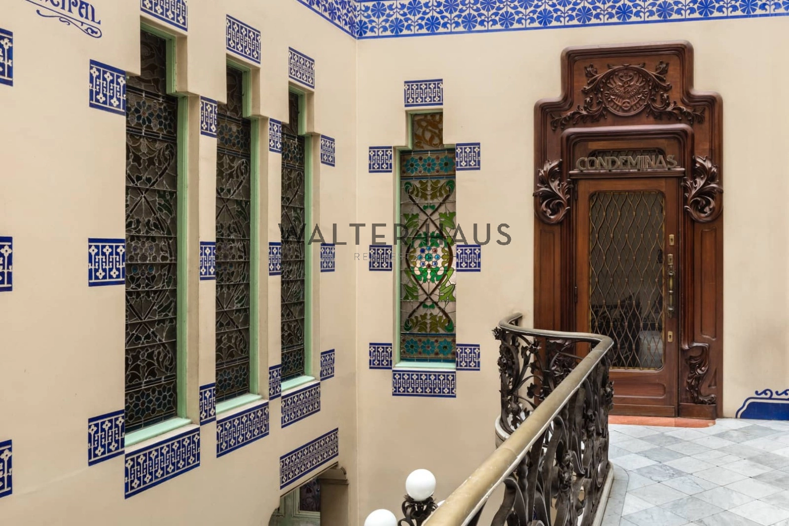 El edificio destaca por su arquitectura modernista, con ventanas de vitrales, suelos tipo Nolla y maderas talladas que aportan elegancia. Los techos, decorados con molduras y florones de escayola, refuerzan su carácter señorial. El acceso al piso principal se realiza a través de una escalinata de piedra con una barandilla de forja, en cuya base se encuentra un dragón esculpido. En la parte central, un cabezal con un panel esculpido de temática vegetal corona la estructura, mientras que la balconada noble de piedra calada y los balcones de las plantas segunda y tercera mantienen la armonía estética junto con las barandillas de hierro forjado. Además, el edificio cuenta con servicio de conserjería para mayor comodidad.