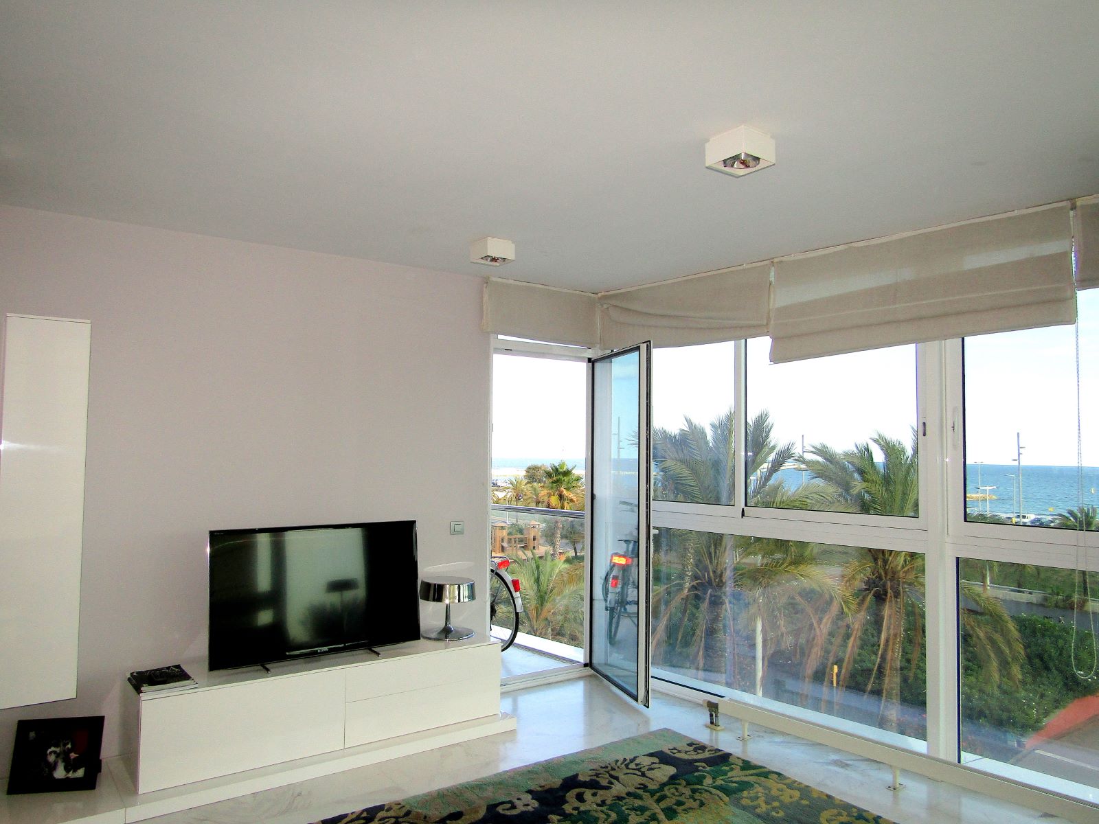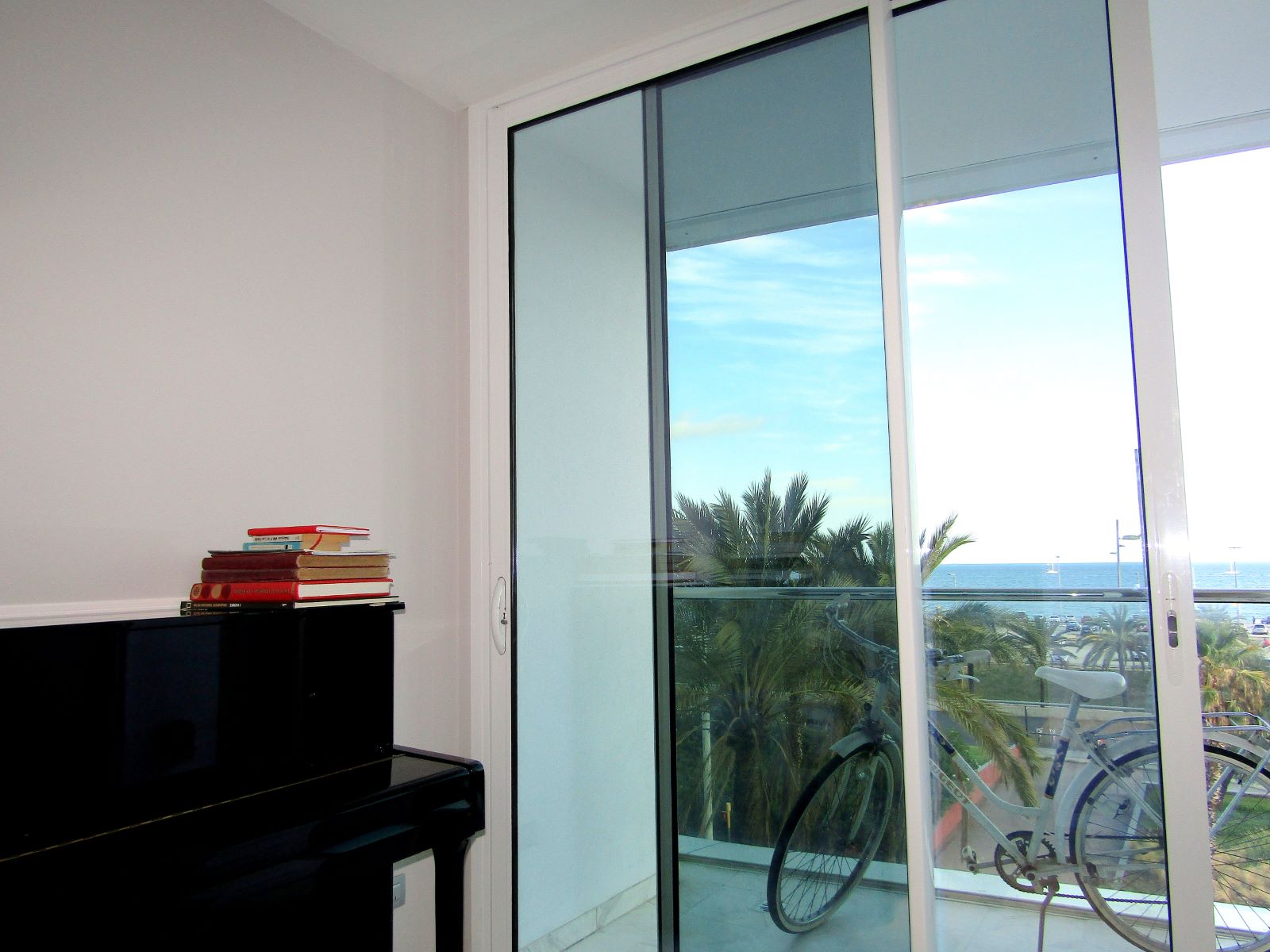 Precioso y soleado piso de 116m2 con increíbles vistas del mar en el Fórum. En bonita finca del prestigioso arquitecto Ricardo Bofill, con espectacular fachada de cristal, y con 2 ascensores, a dos pasos de la playa de Fórum. El piso dispone de un magnífico salón-comedor con espectaculares vistas a la playa, y salida a balcón. 1 gran habitación (antes eran 2 habitaciones) tipo suite con gran vestidor hecho a medida y baño completo con bañera, 2 habitaciones individuales y una estancia a modo de despacho/estudio/sala de juegos. 1 cuarto de baño completo con bañera, 1 aseo de cortesía. Gran cocina equipada con electrodomésticos de calidad. Listo para entrar a vivir. Opción a plaza de parquing.
