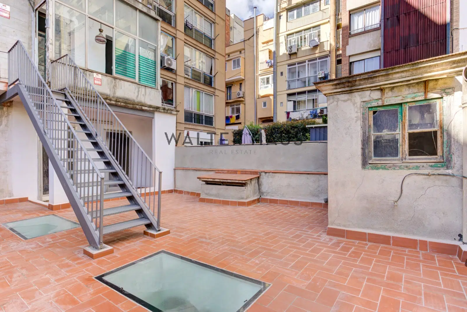 Luminosa propiedad de 146 m² construidos – de los cuales 56 m² corresponden a una terraza privada – , ofreciendo un espacio generoso y luminoso ideal para diseñar una vivienda personalizada. La propiedad se puede reformar al gusto del comprador. El edificio conserva el encanto arquitectónico de la época, con suelos hidráulicos originales, techos altos y una estructura sólida que resalta la identidad histórica del inmueble.