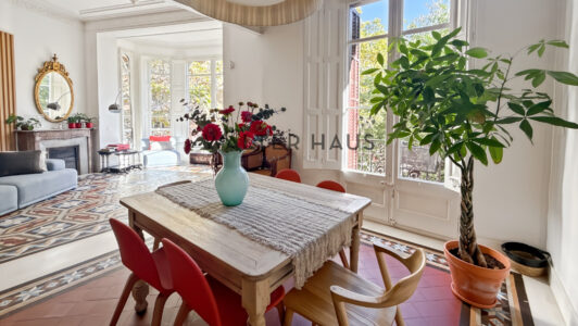 Ubicada en el emblemático edificio Casa Burés, diseñado en 1905 por Francisco Berenguer, esta vivienda de lujo dispone de 103 m² útiles cuidadosamente distribuidos para maximizar confort y funcionalidad. La zona de día incluye un amplio y luminoso salón comedor con grandes ventanales y una cocina americana de diseño totalmente equipada con electrodomésticos de alta gama.