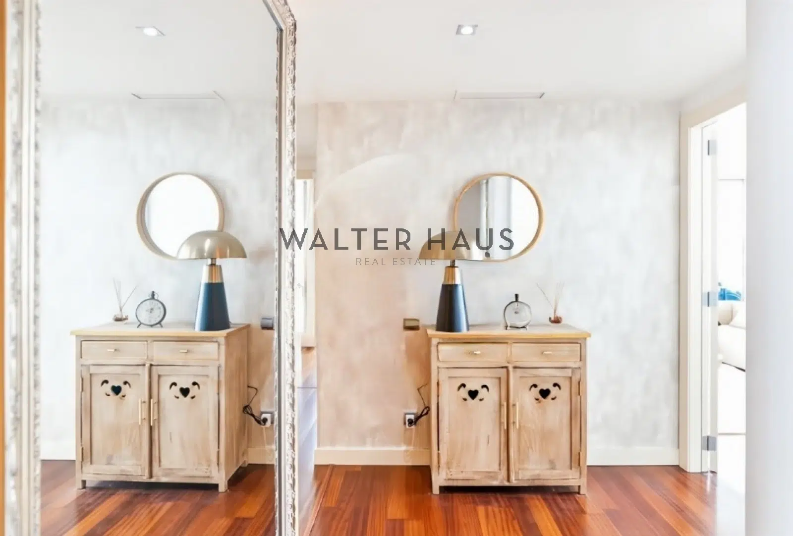 La propiedad dispone de una cocina office totalmente equipada con electrodomésticos de alta gama. La zona de noche está compuesta por tres habitaciones dobles, una de ellas en suite con bañera de hidromasaje y ducha, y acceso directo a una segunda terraza de 20 m². Además, cuenta con otro baño completo y una zona de aguas independiente. El sistema de aire acondicionado y calefacción por conductos garantiza confort en todas las estancias.
