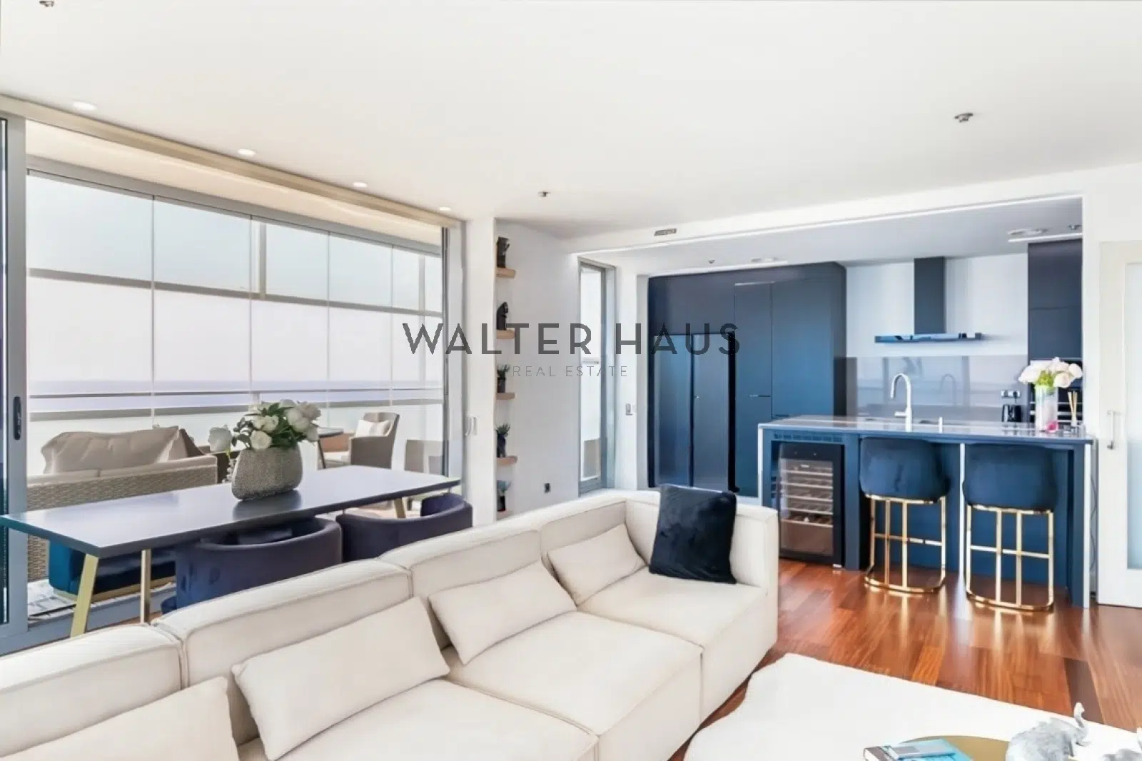 Este exclusivo piso de lujo, ubicado en el prestigioso complejo residencial Illa del Mar en Diagonal Mar, cuenta con 130 m² construidos y una terraza esquinera de 30 m² con vistas panorámicas al mar, la montaña y la ciudad. El salón comedor, amplio y acristalado, se conecta directamente con la terraza, proporcionando una sensación de espacio y luminosidad incomparables.
