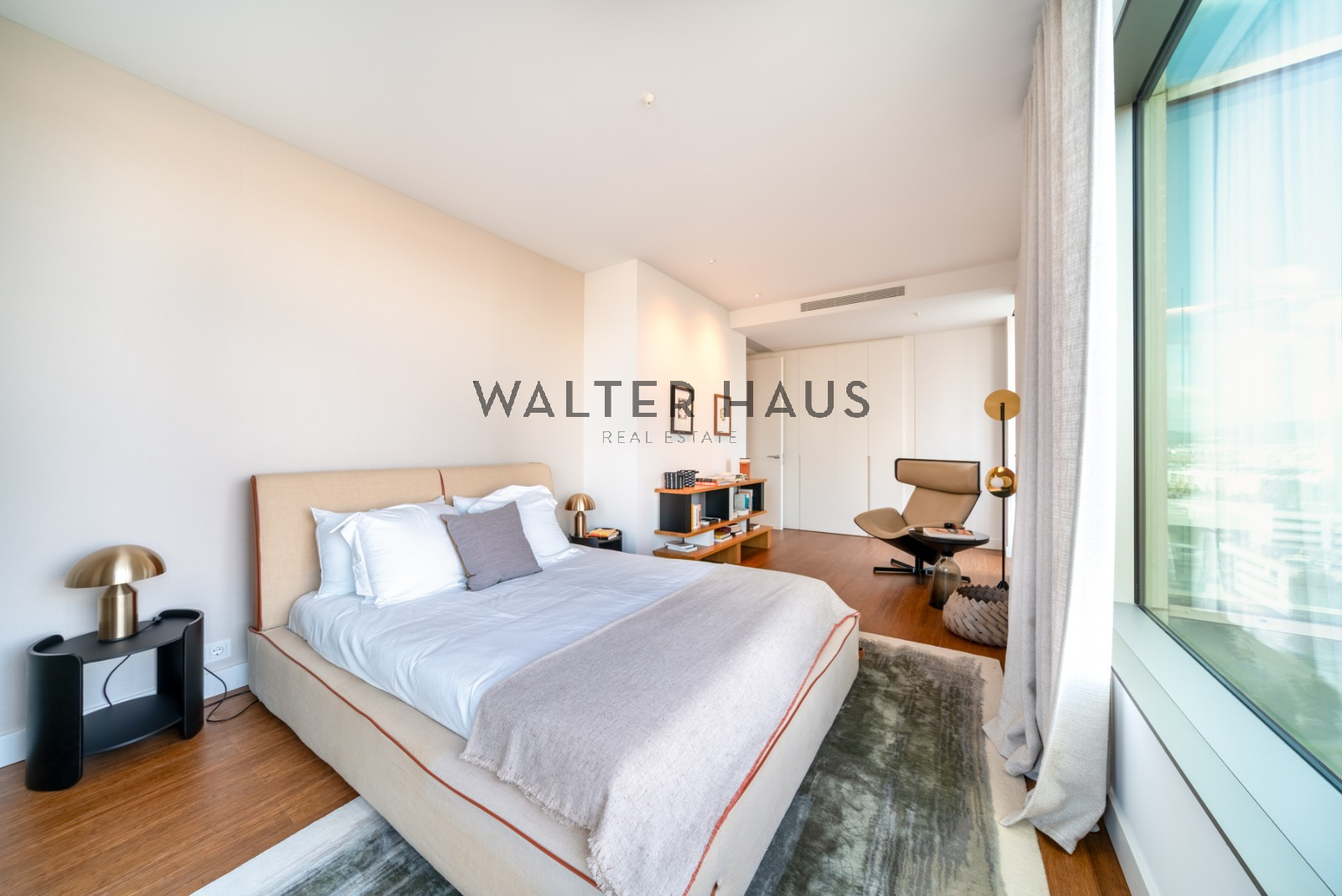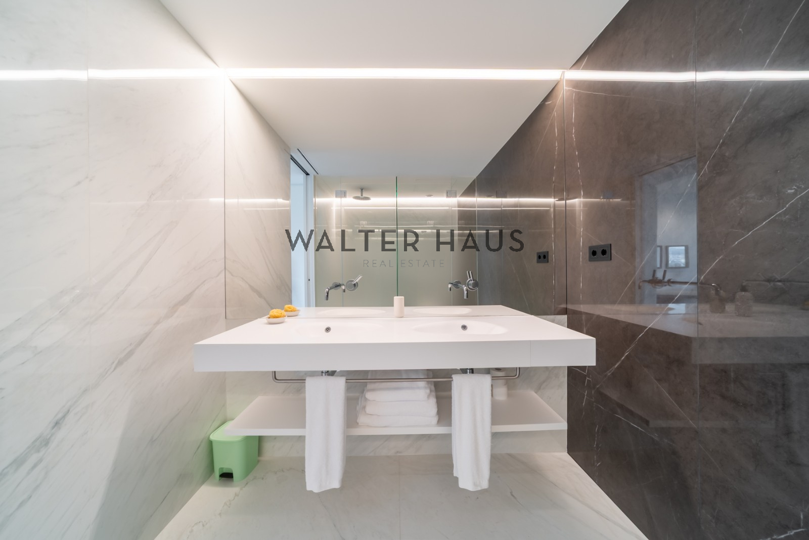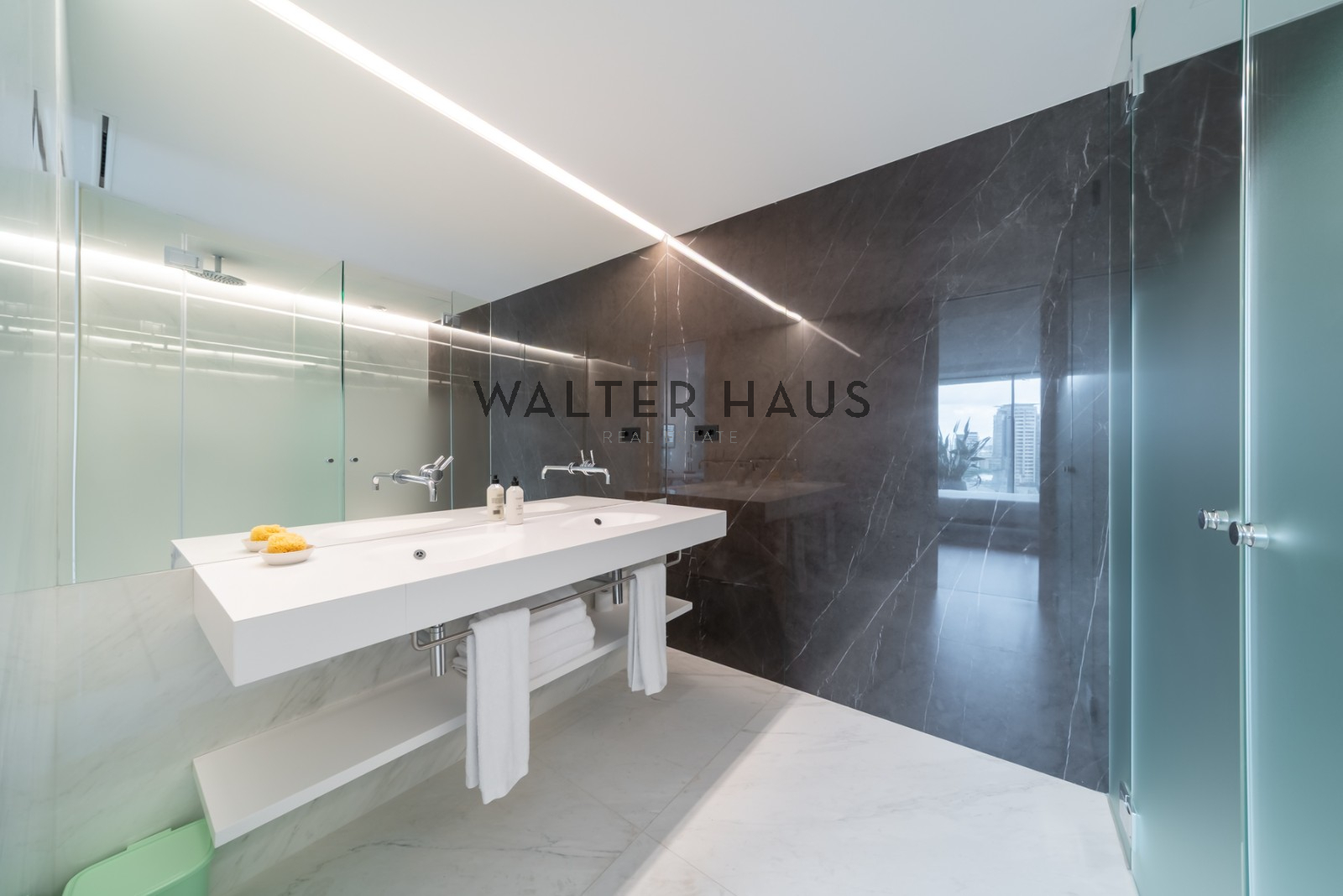 La vivienda cuenta con dos terrazas, una terraza principal de 43,8 m², está orientada al mar y regala una panorámica inigualable de la costa, mientras que la segunda terraza de 15,5 m² brinda vistas abiertas hacia la ciudad. Un enclave donde la luminosidad y la conexión con el exterior forman parte esencial del día a día. En el interior destacan un amplio salón-comedor con cocina integrada que conecta directamente con la terraza principal, ideal para reuniones y momentos al aire libre frente al Mediterráneo. La suite principal ofrece un ambiente relajado con zona de lectura, vestidor independiente y baño privado. Los dos dormitorios adicionales disponen cada uno de su propio baño, lo que aporta independencia y comodidad. Además, los armarios empotrados y los acabados modernos refuerzan la funcionalidad del conjunto.