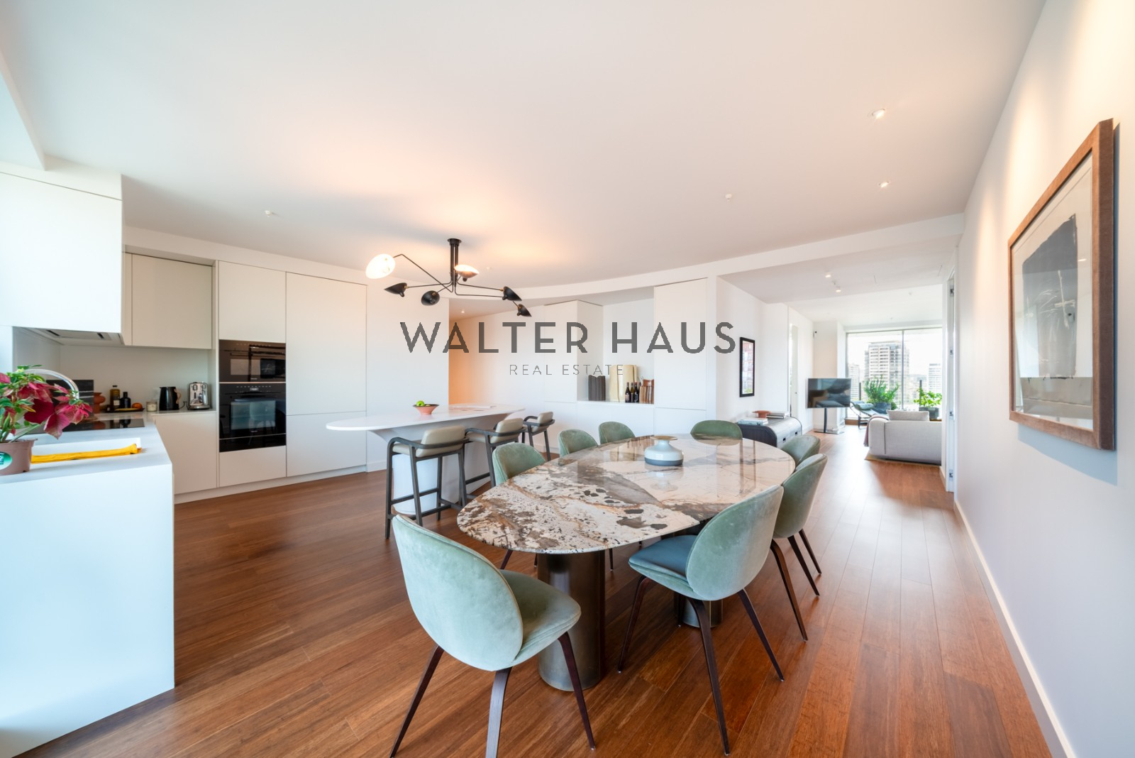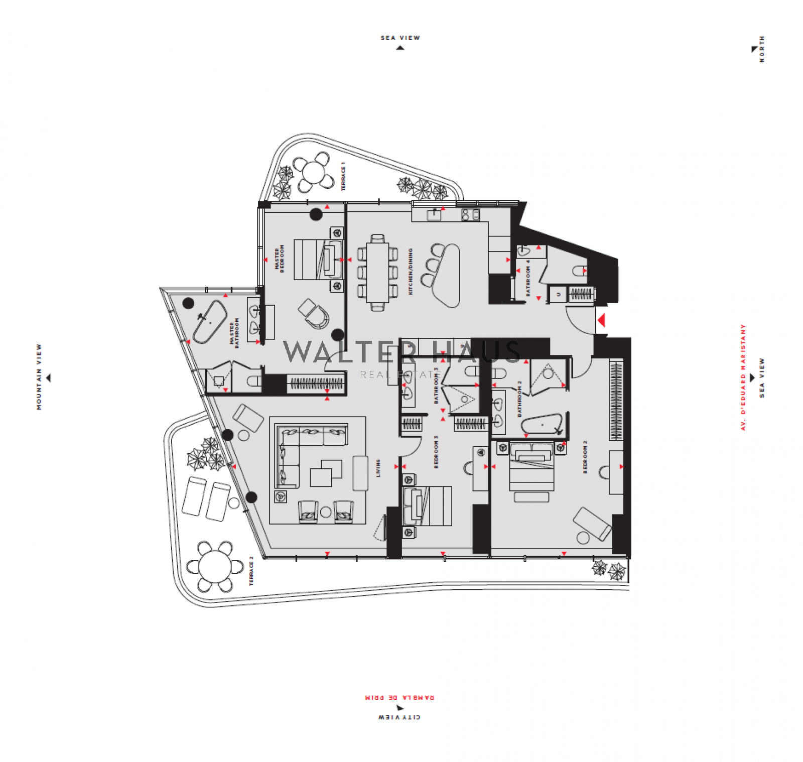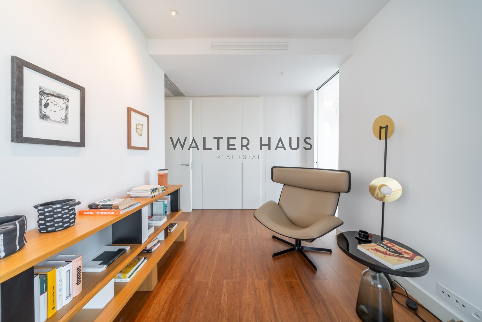 La vivienda cuenta con dos terrazas, una terraza principal de 43,8 m², está orientada al mar y regala una panorámica inigualable de la costa, mientras que la segunda terraza de 15,5 m² brinda vistas abiertas hacia la ciudad. Un enclave donde la luminosidad y la conexión con el exterior forman parte esencial del día a día. En el interior destacan un amplio salón-comedor con cocina integrada que conecta directamente con la terraza principal, ideal para reuniones y momentos al aire libre frente al Mediterráneo. La suite principal ofrece un ambiente relajado con zona de lectura, vestidor independiente y baño privado. Los dos dormitorios adicionales disponen cada uno de su propio baño, lo que aporta independencia y comodidad. Además, los armarios empotrados y los acabados modernos refuerzan la funcionalidad del conjunto.