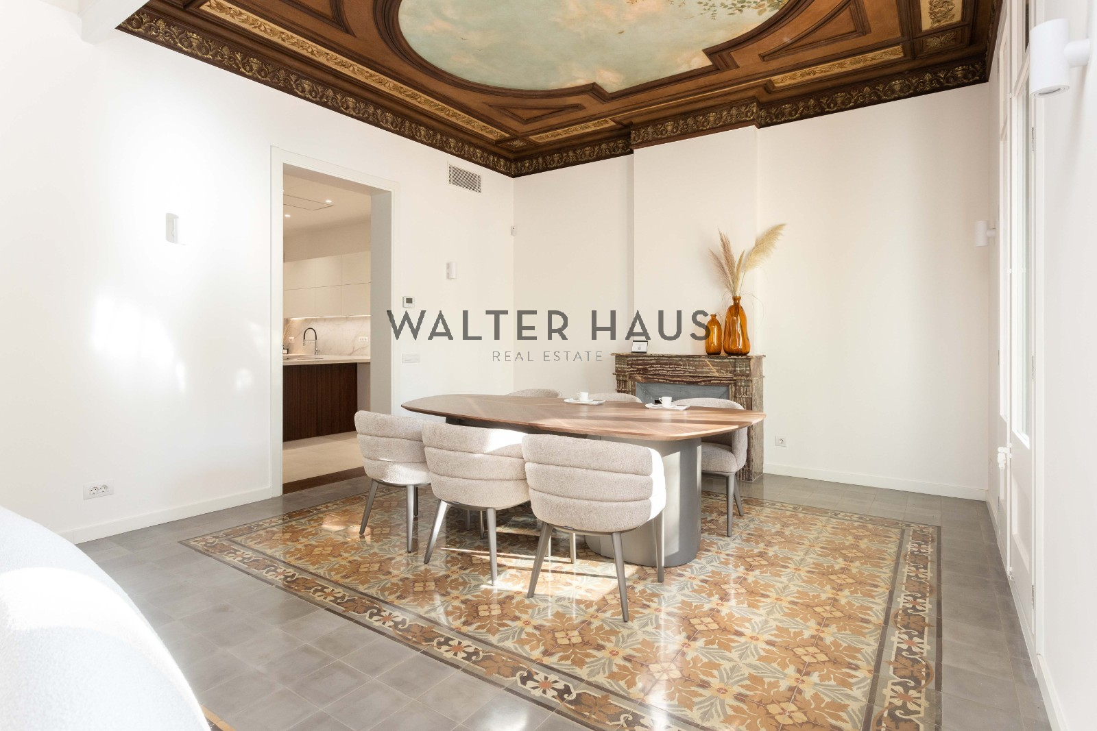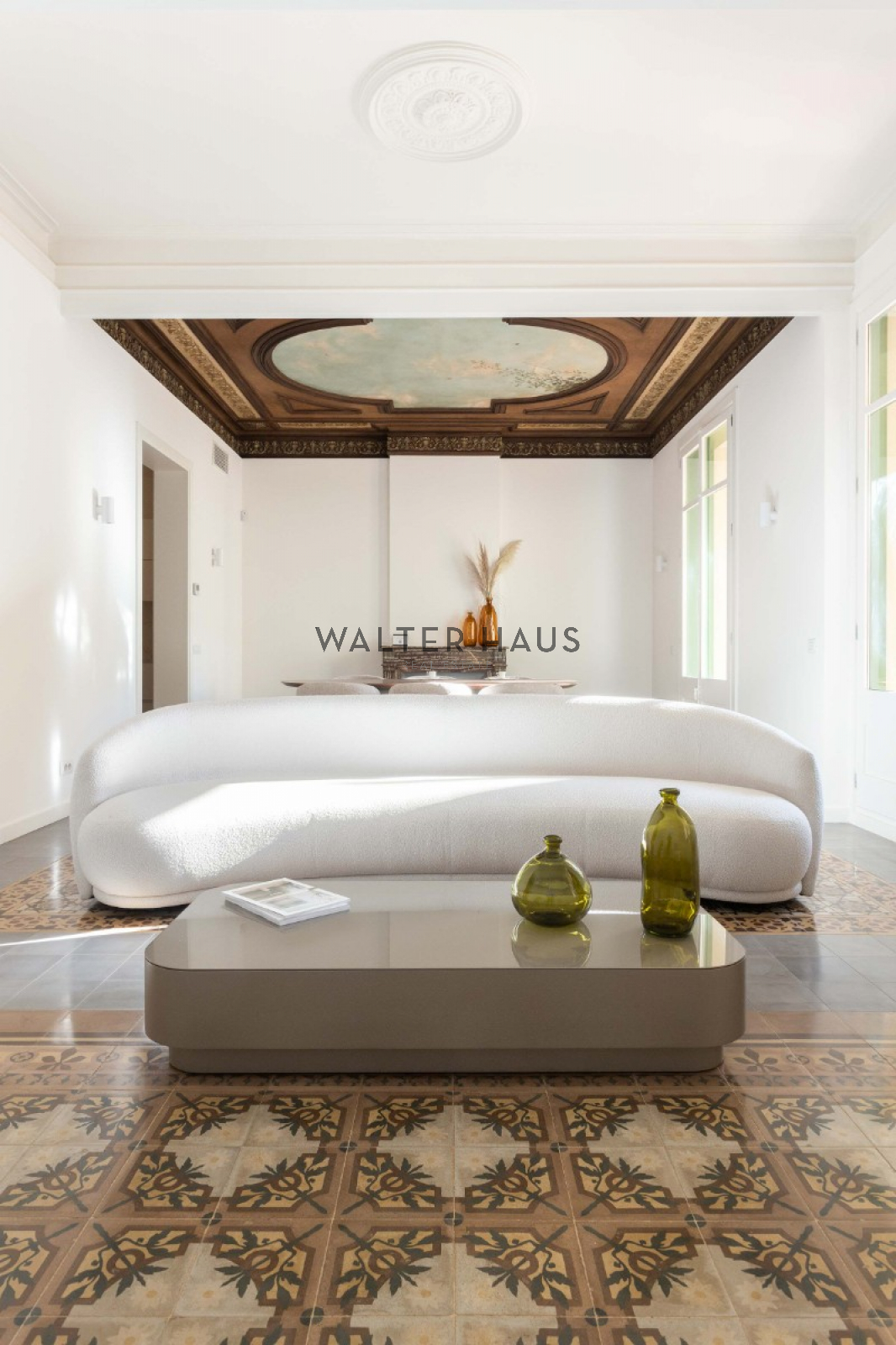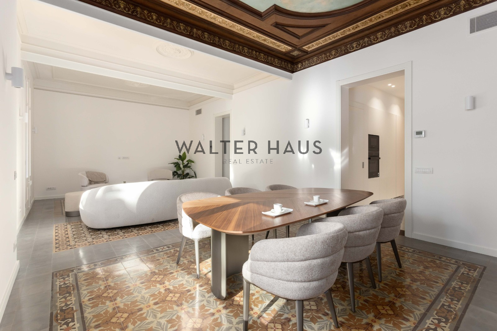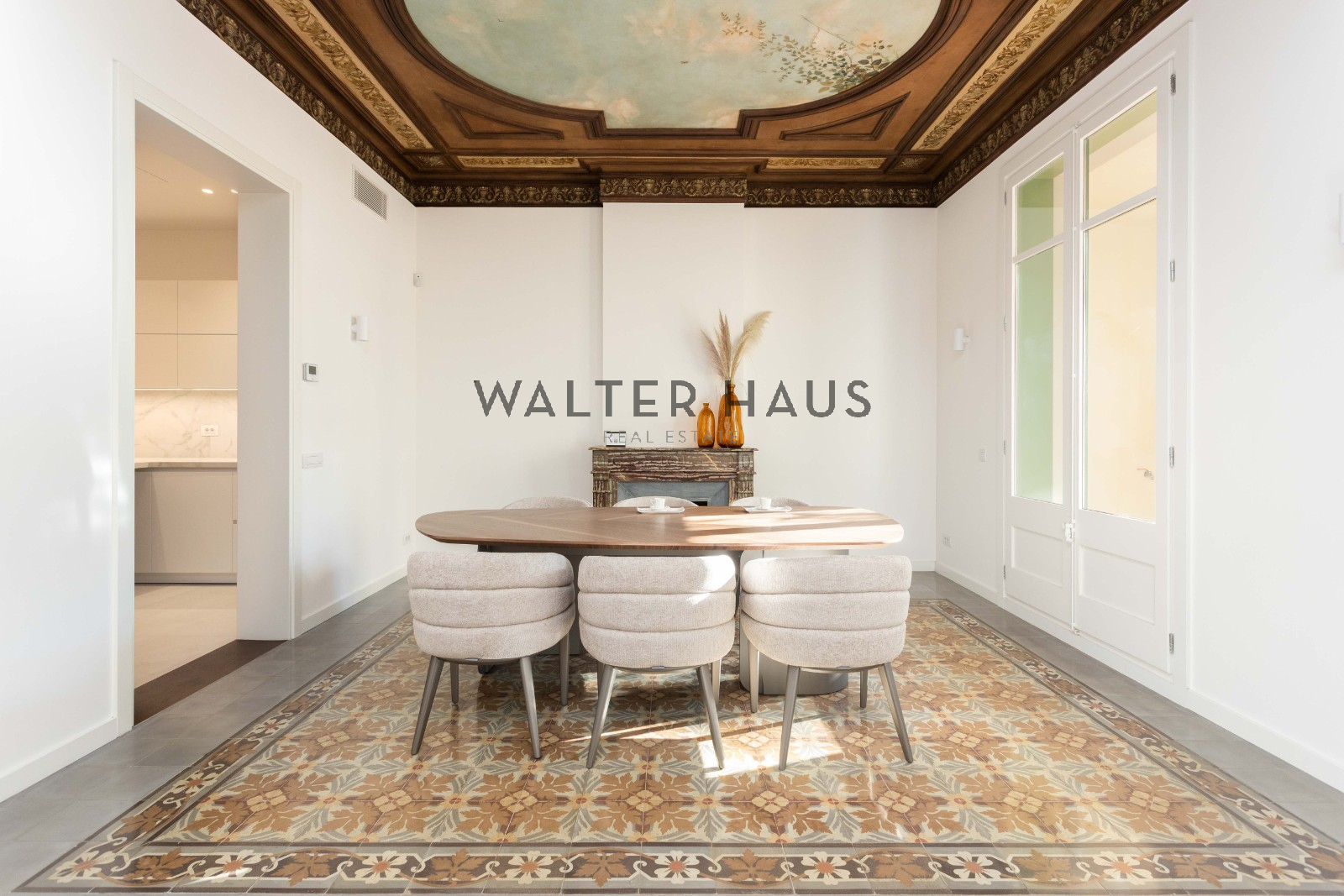 Exclusivo piso de obra nueva de 220 m² construidos en la planta principal de una finca regia rehabilitada completamente en la codiciada Dreta de L’Eixample, en el Quadrat d’Or. Con un diseño contemporáneo en tonos neutros manteniendo todos los elementos originales como los suelos hidráulicos y techos artesonados mientras que se combina con acabados de alta gama, esta vivienda se presenta lista para entrar a vivir.