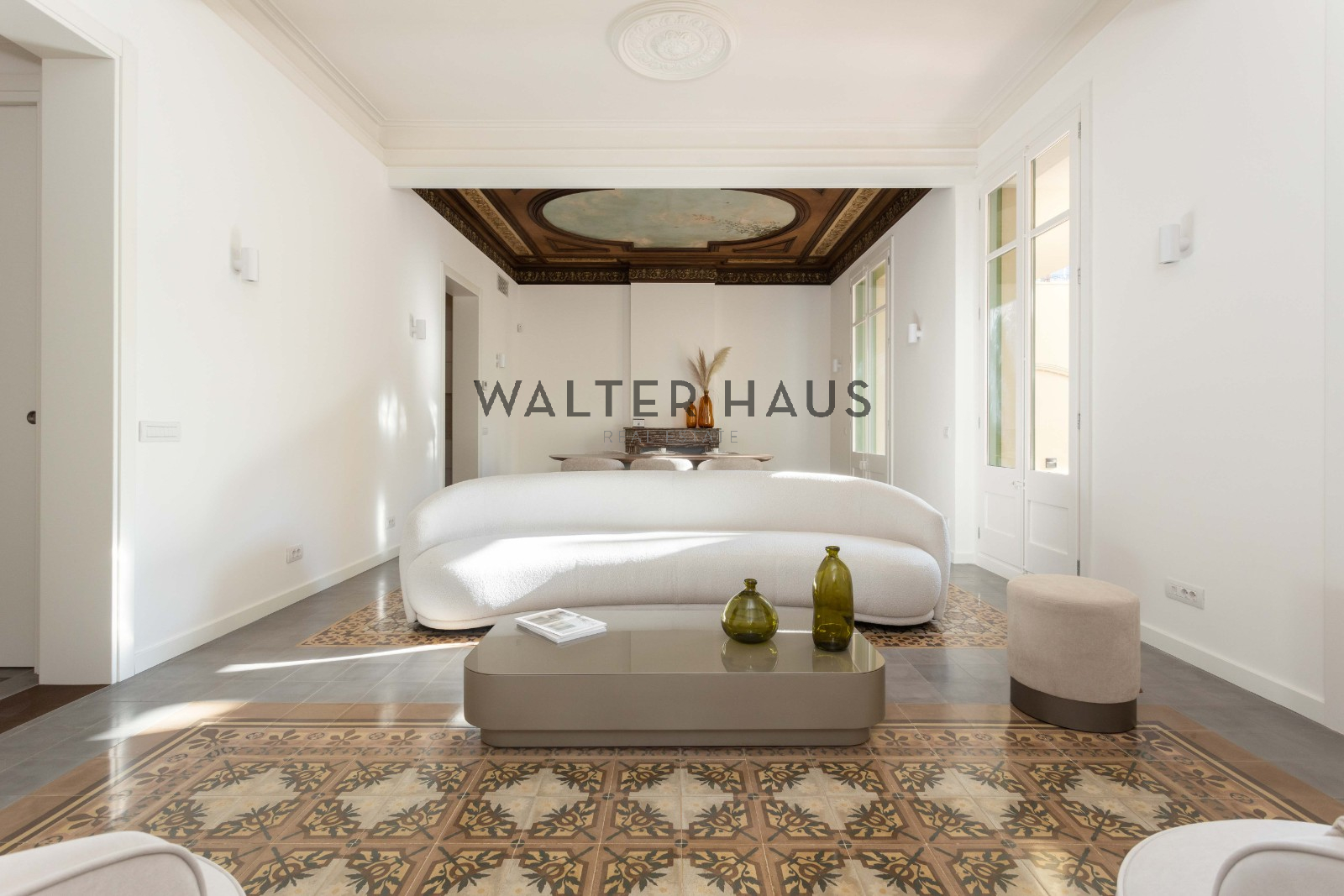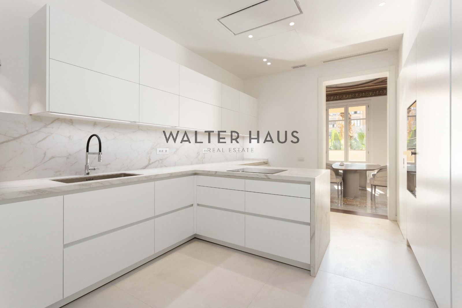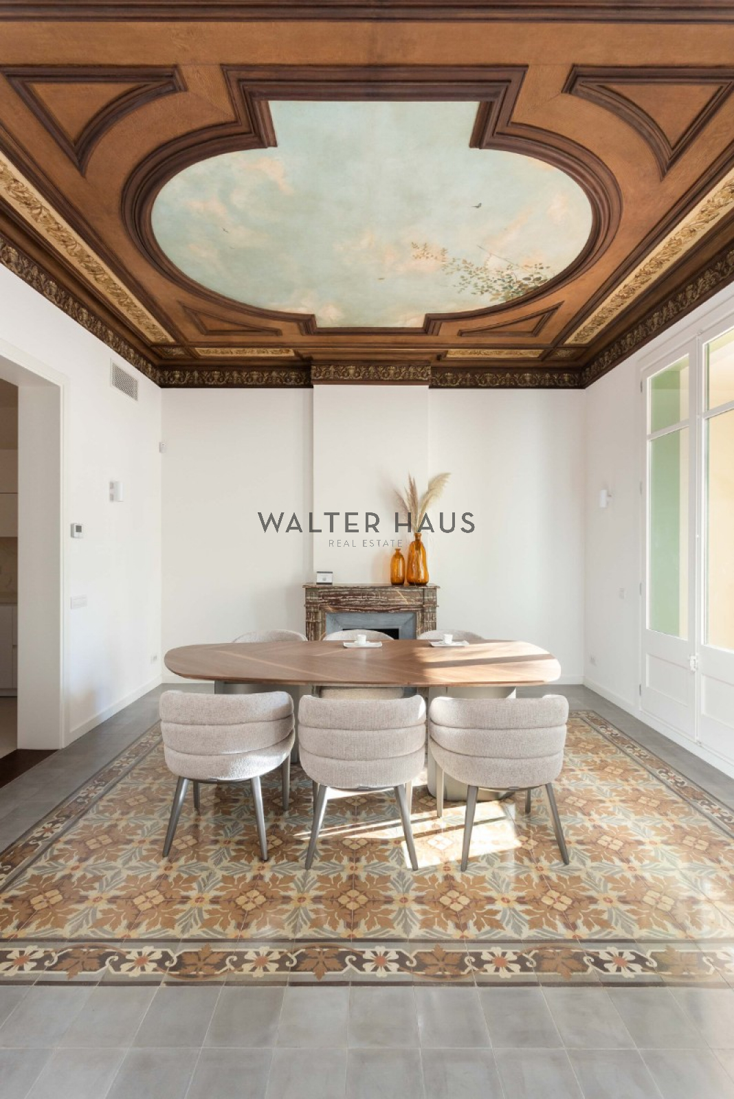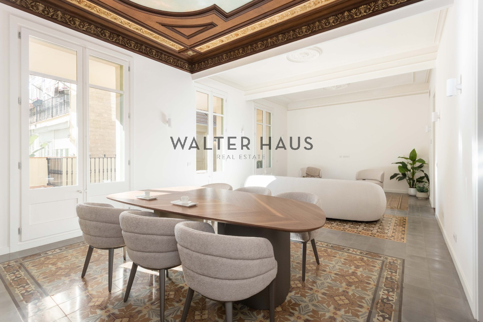 Exclusivo piso de obra nueva de 220 m² construidos en la planta principal de una finca regia rehabilitada completamente en la codiciada Dreta de L’Eixample, en el Quadrat d’Or. Con un diseño contemporáneo en tonos neutros manteniendo todos los elementos originales como los suelos hidráulicos y techos artesonados mientras que se combina con acabados de alta gama, esta vivienda se presenta lista para entrar a vivir.