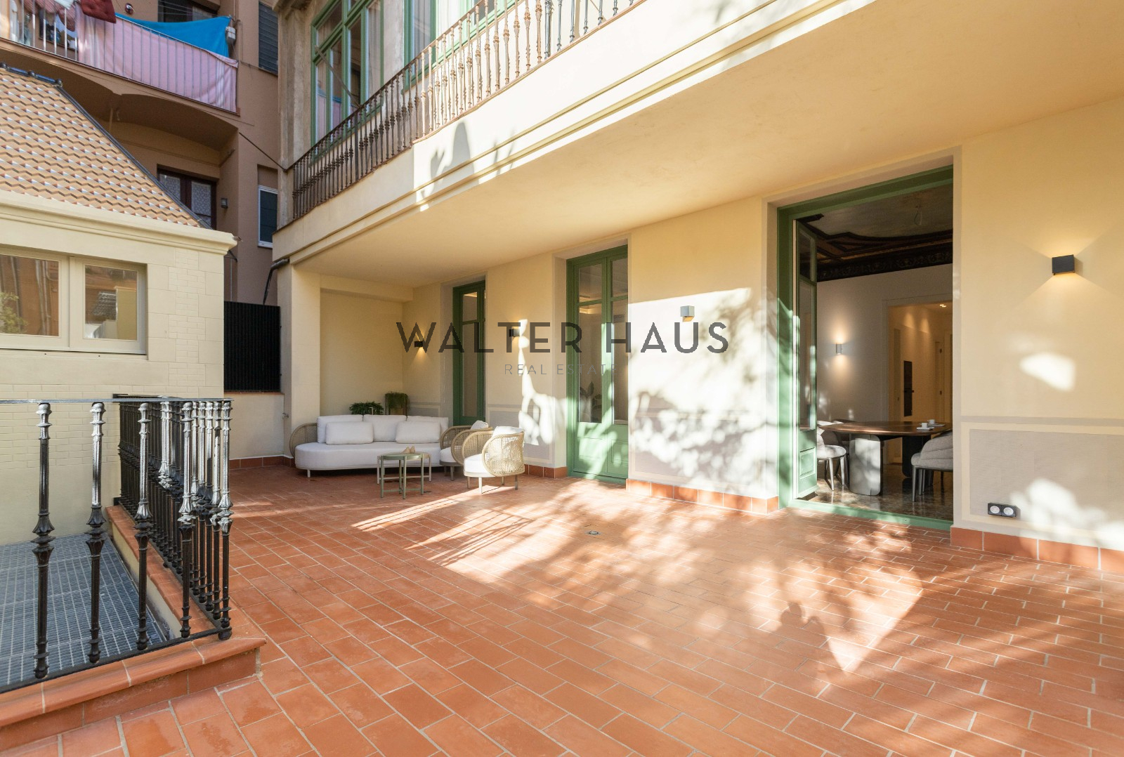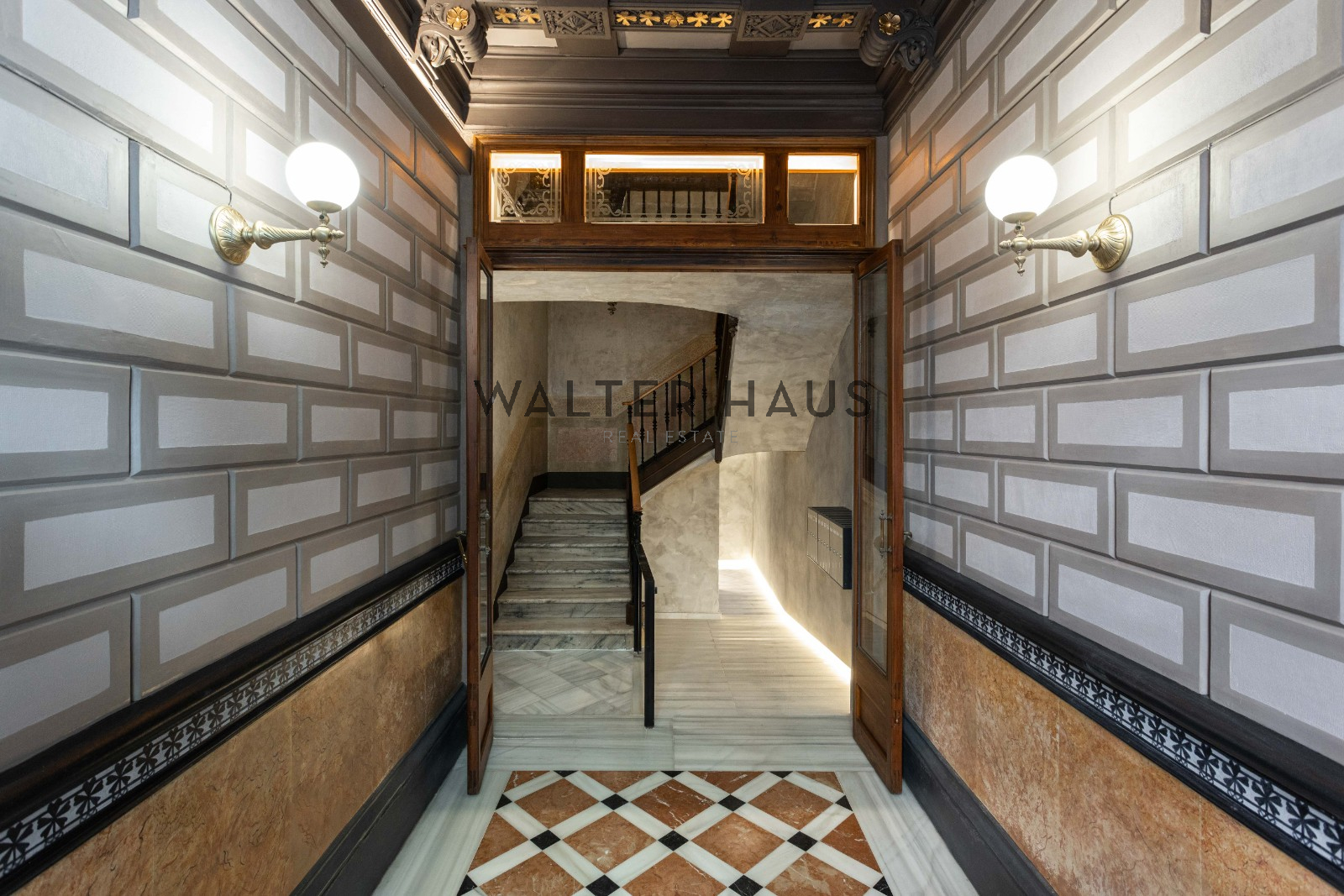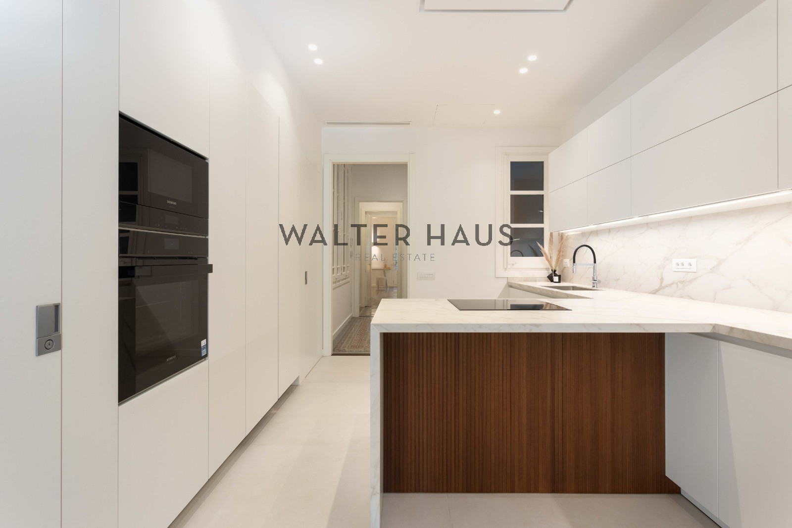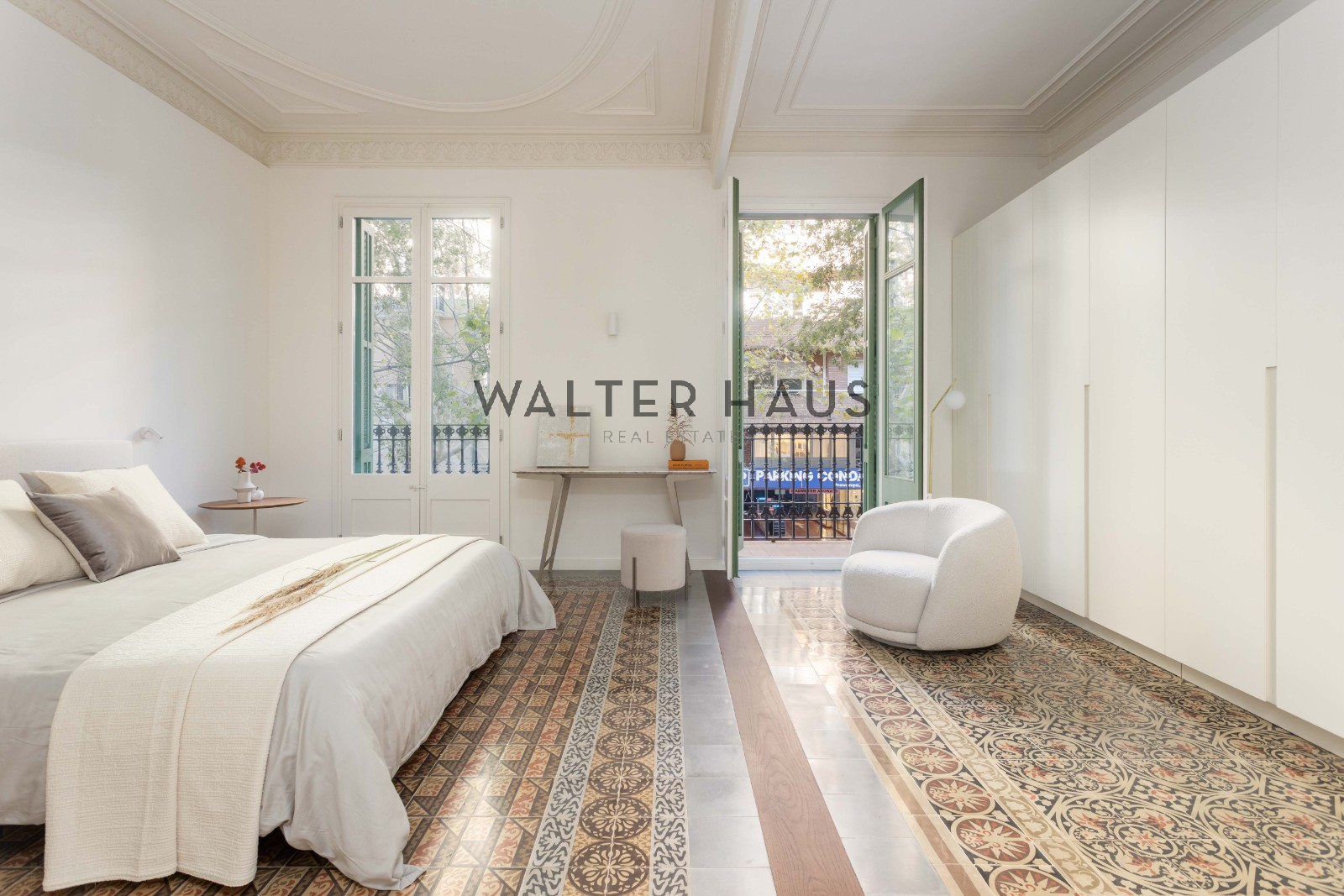 Exclusivo piso de obra nueva de 220 m² construidos en la planta principal de una finca regia rehabilitada completamente en la codiciada Dreta de L’Eixample, en el Quadrat d’Or. Con un diseño contemporáneo en tonos neutros manteniendo todos los elementos originales como los suelos hidráulicos y techos artesonados mientras que se combina con acabados de alta gama, esta vivienda se presenta lista para entrar a vivir.