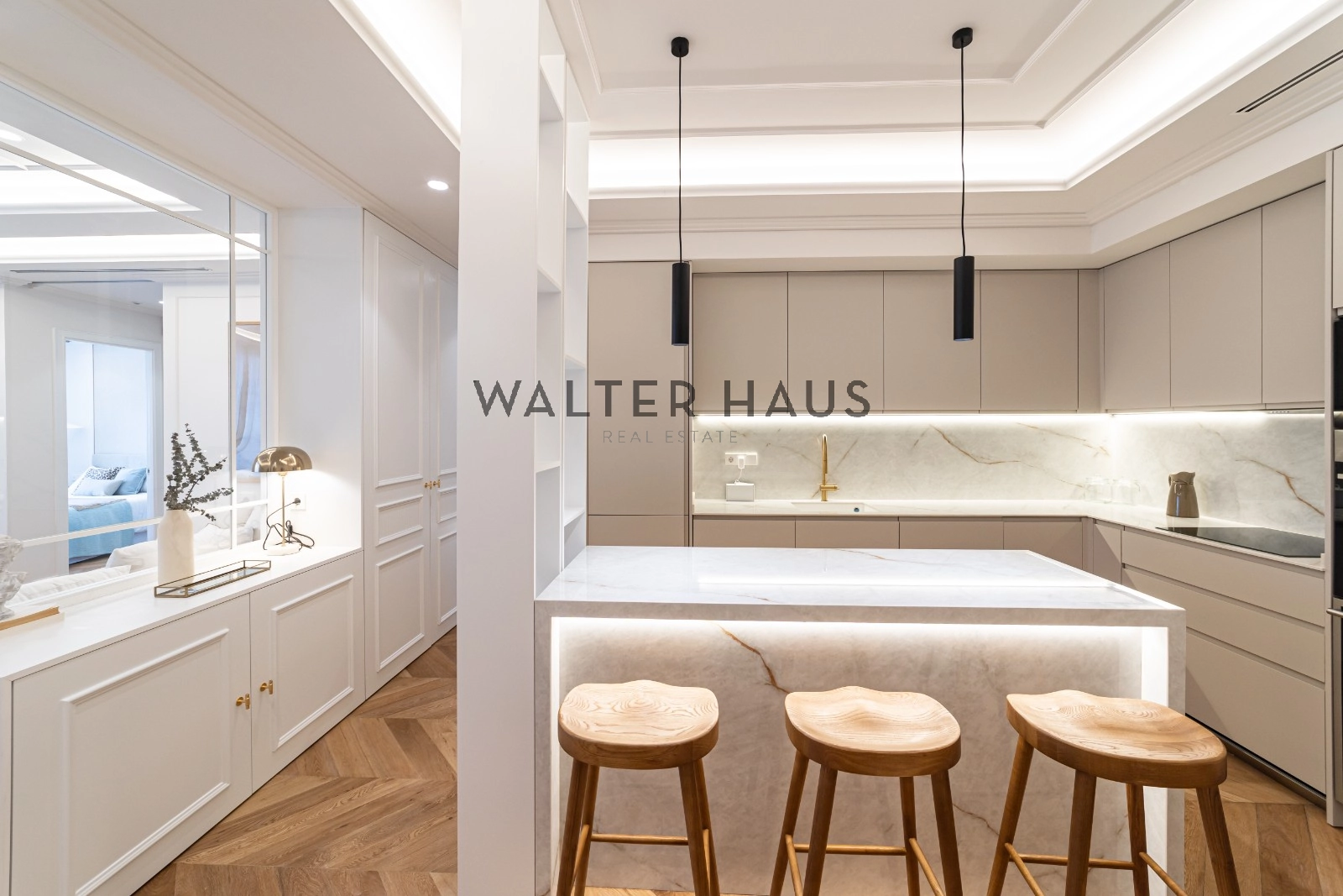 El interior de la propiedad ha sido objeto de una reforma integral, donde cada detalle ha sido cuidadosamente considerado para ofrecer un ambiente de sofisticación y confort. Se entrega completamente amueblada y equipada con mobiliario de diseño actual y acabados de alta calidad. El salón se integra fluidamente con una luminosa terraza con orientación oeste, un espacio perfecto para el relax y el entretenimiento. La cocina está equipada con electrodomésticos de última generación, y la vivienda incluye un práctico trastero, maximizando la funcionalidad.