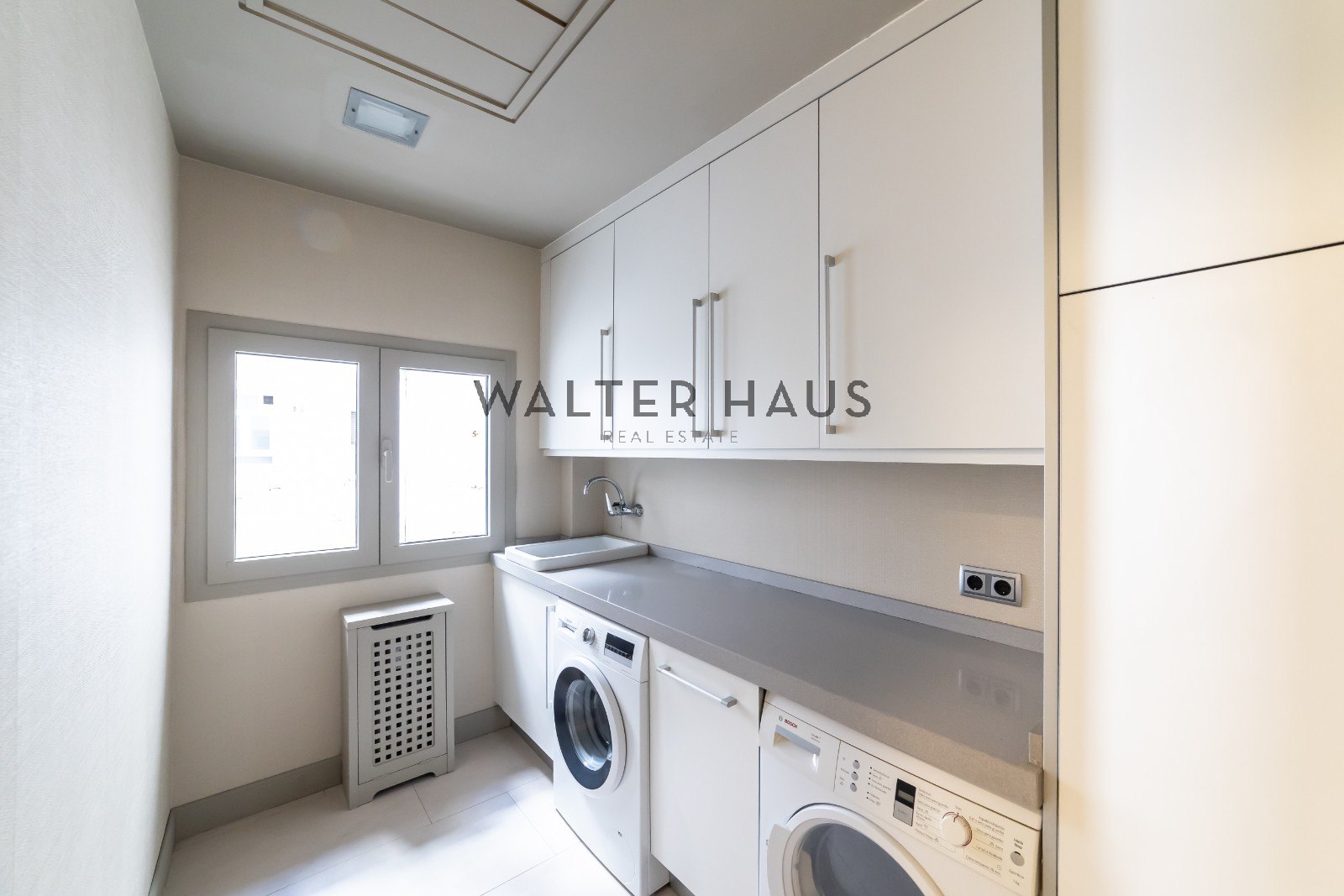 Walter Haus presenta en alquiler esta magnífica vivienda reformada, una oportunidad única para quienes buscan un hogar en una de las zonas más exclusivas de Madrid. Con una superficie de 374 m² construidos en una sola planta, esta propiedad redefine el concepto de vida urbana. La finca, con una sola vivienda por planta, garantiza la máxima privacidad, ofreciendo un refugio de tranquilidad en el corazón de la ciudad. Además, la comodidad está asegurada con una plaza de garaje en la propia finca, un beneficio que simplifica el día a día en una de las zonas más demandadas de la capital.