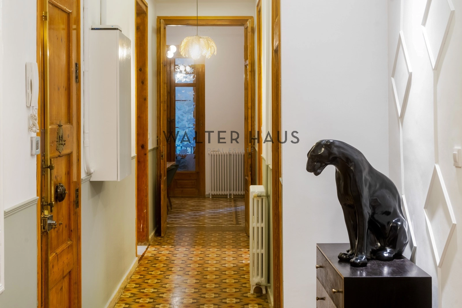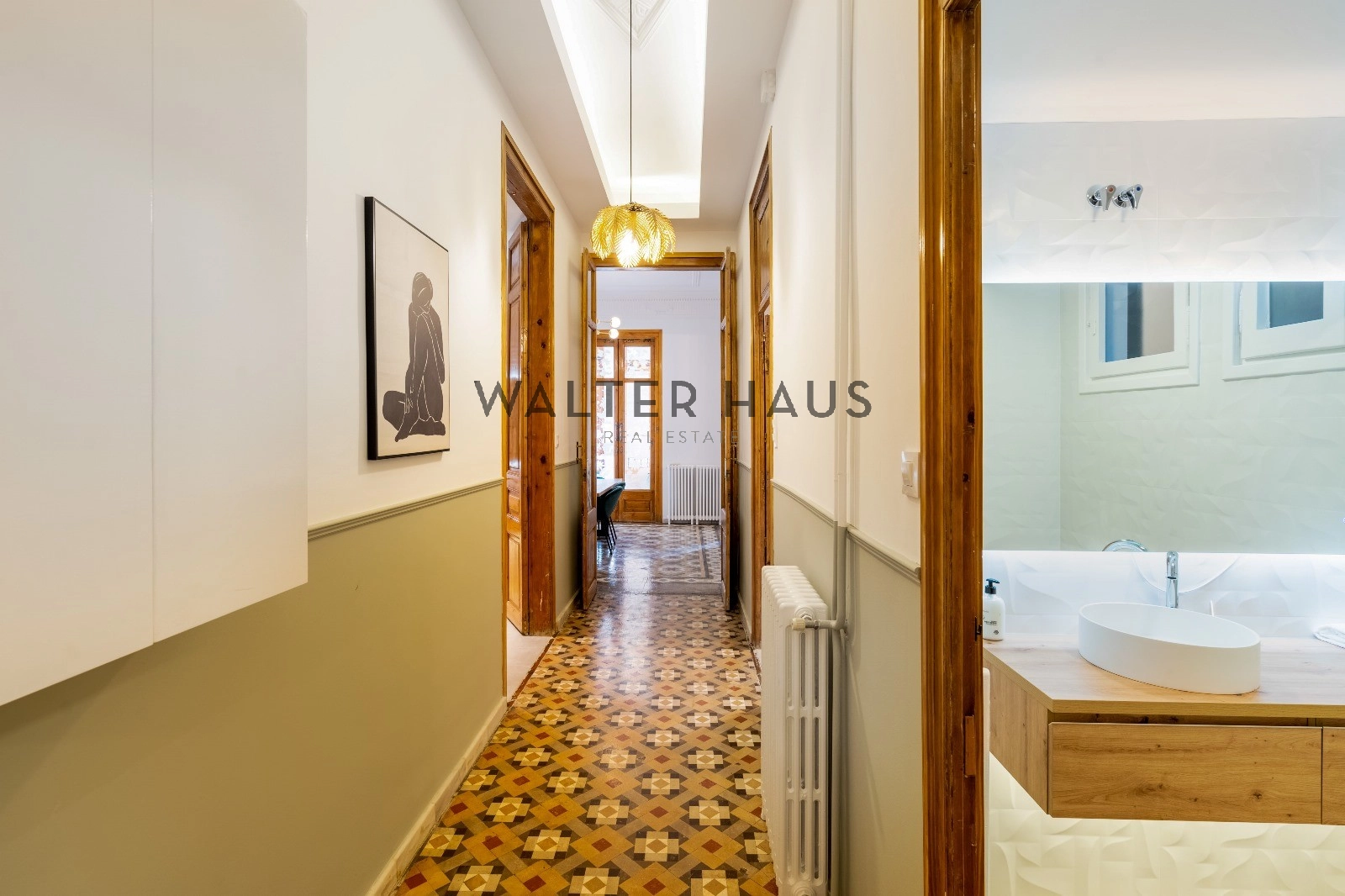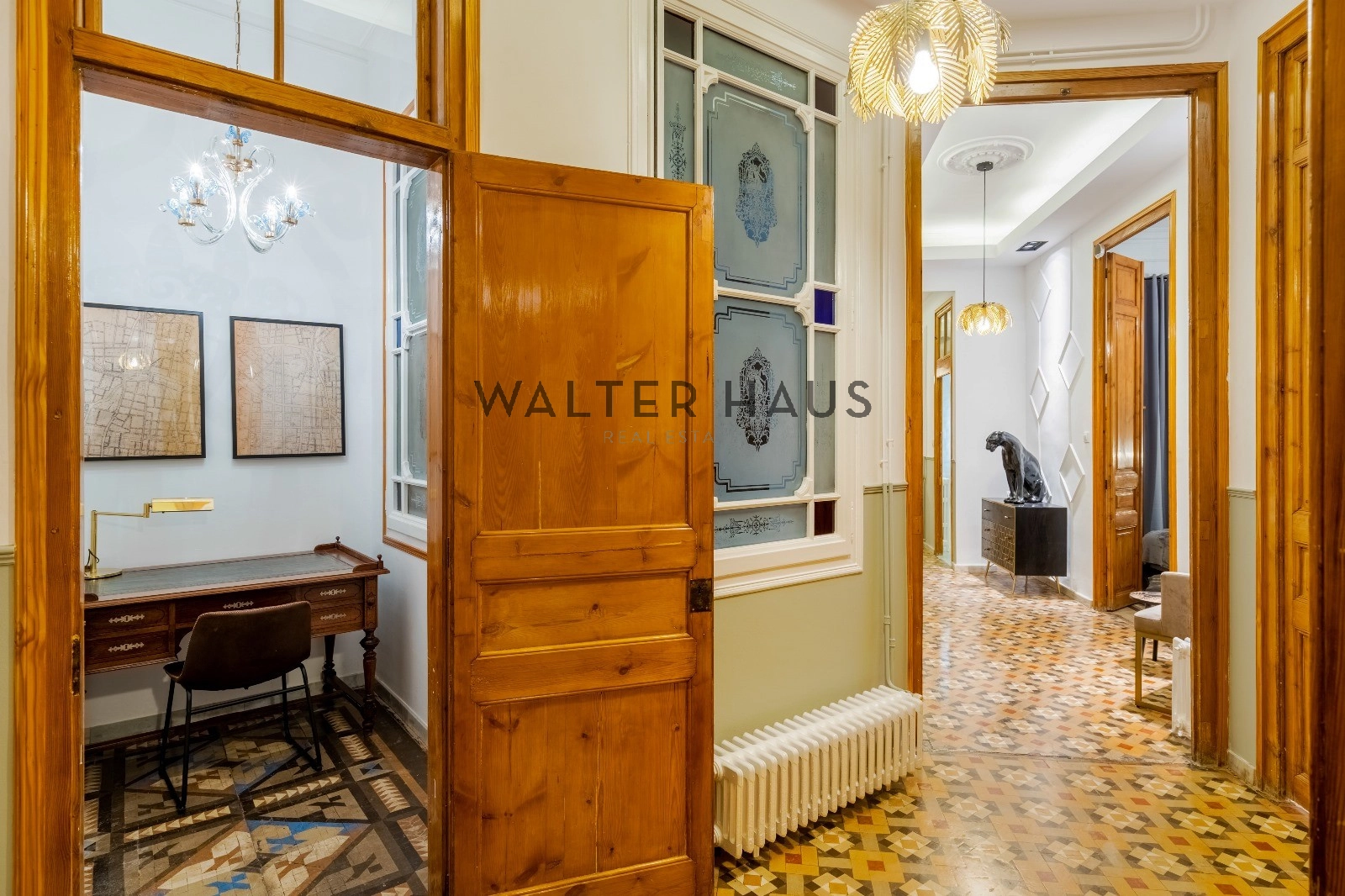 Esta pieza única tiene suelos hidráulicos originales de la época, techos altos artesonados, aire acondicionado y calefacción por conductos.