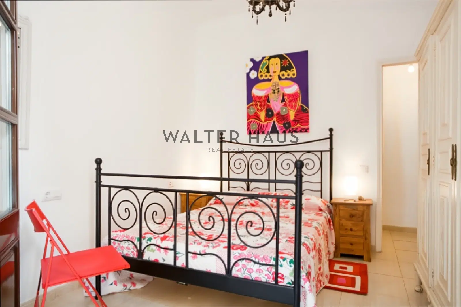 El primero es una habitación doble con una cómoda cama doble. La decoración única se ilumina con la luz natural que entra por el balcón. El balcón, de 9 m², se extiende desde el dormitorio hasta el salón. Hay un amplio armario con tres puertas