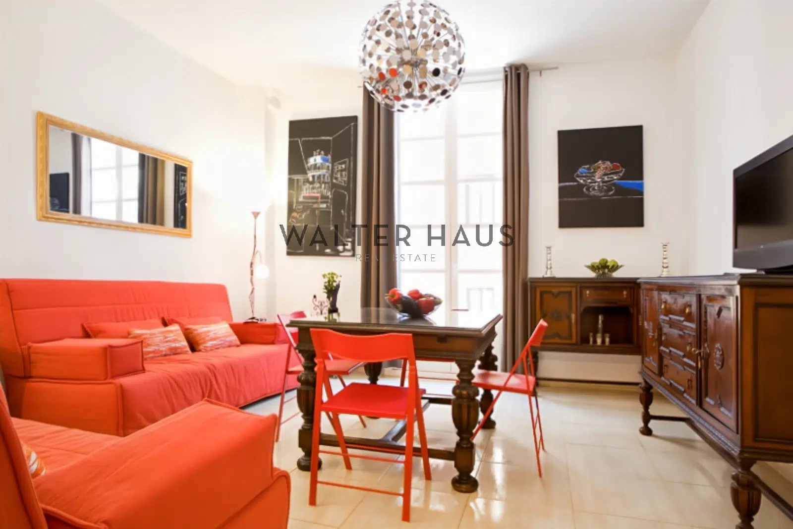 La propiedad goza de abundante luz natural gracias a sus ventanales de 4 metros de altura. Combina muebles antiguos con decoración contemporánea.
