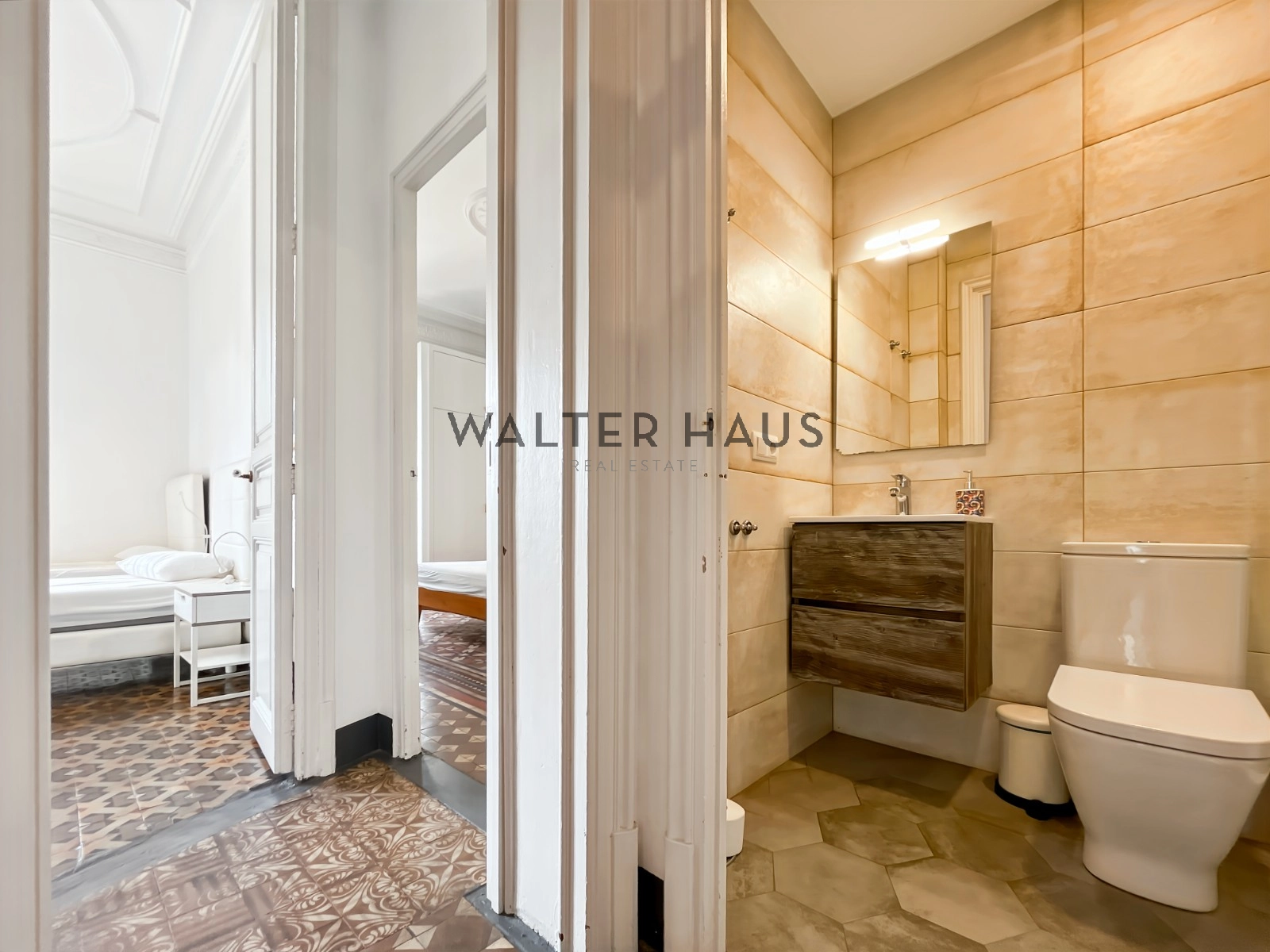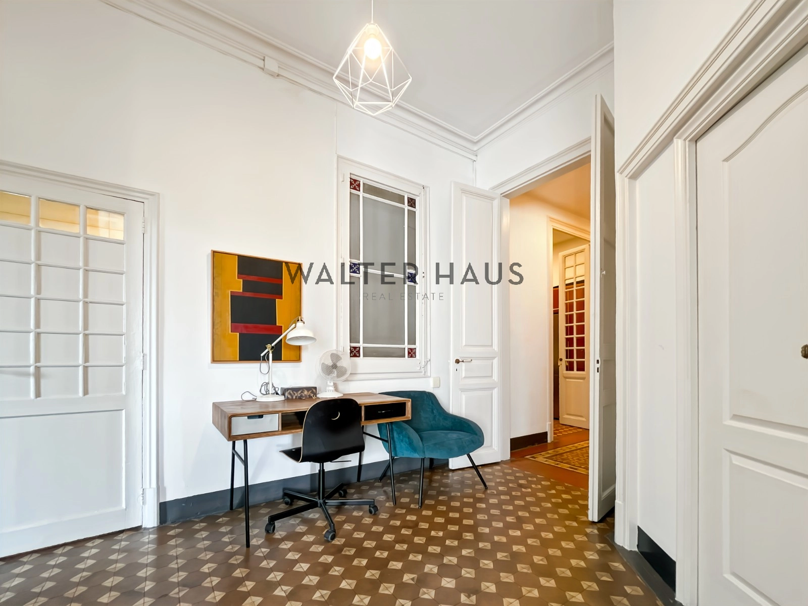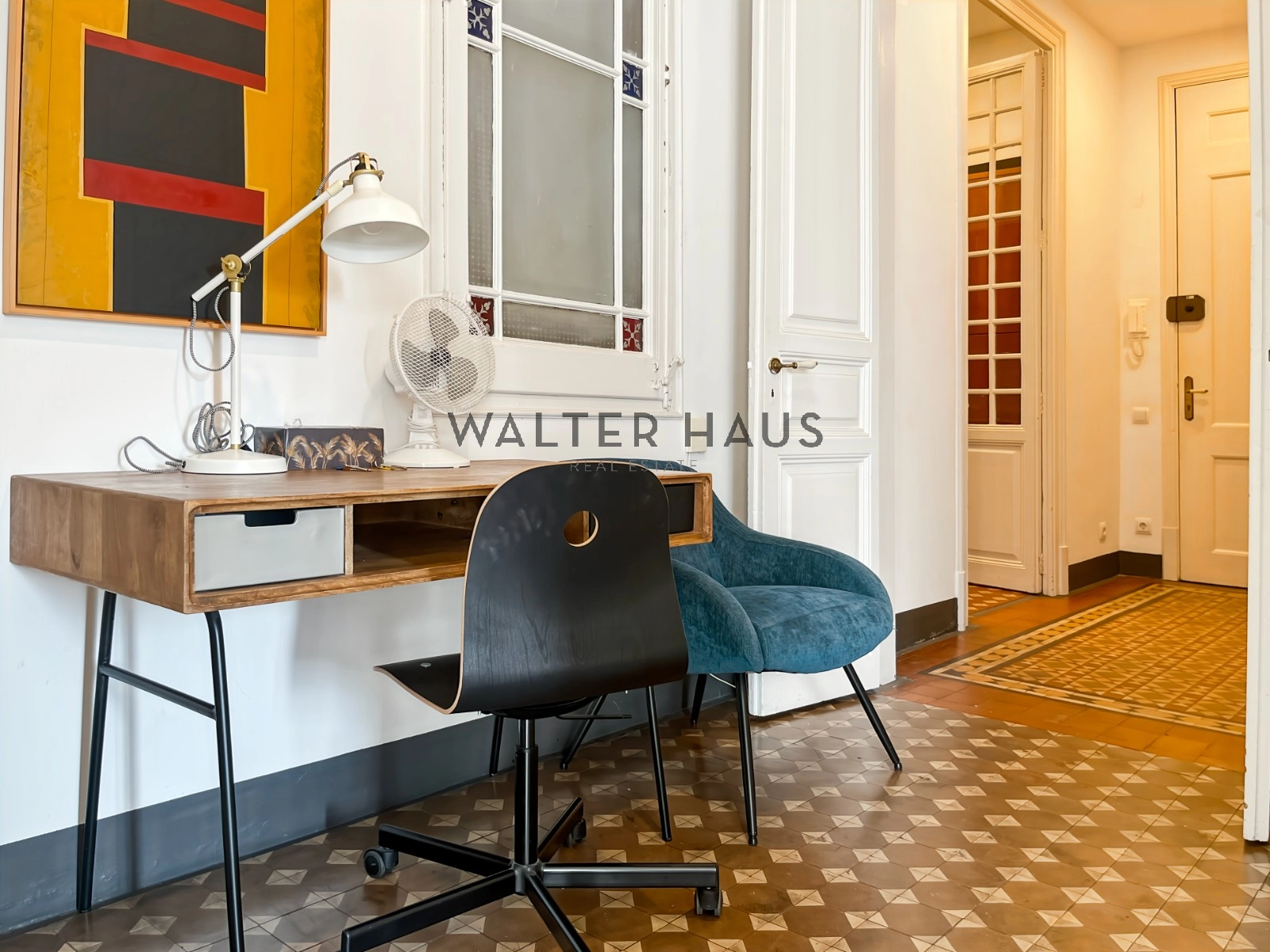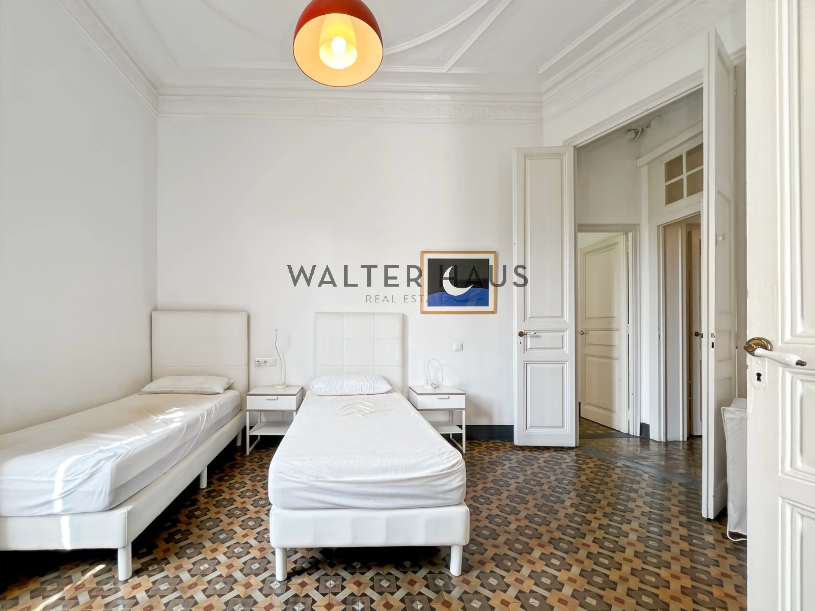 ALQUILER DE TEMPORADA. Fantástico piso de 115 m2 ubicado en la segunda planta de una finca regia con ascensor en el corazón del Quadrat d’Or de Barcelona, junto a la Plaza Tetuán, el Paseo de Sant Joan y el tradicional Paseo de Gràcia.