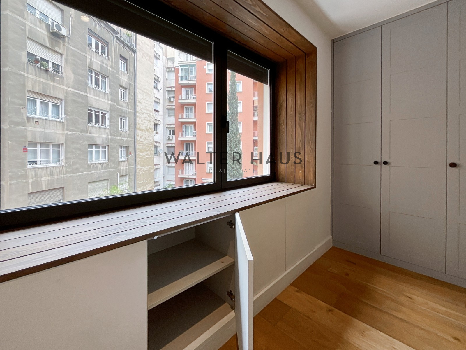 Es una vivienda muy luminosa, con una reciente reforma moderna con materiales de alta calidad y una distribución muy funcional. El piso está completamente amueblado y cuenta con 3 habitaciones exteriores que disponen de armarios empotrados, cierre eléctrico de persianas, un amplio salón con salida a la terraza, cocina integrada totalmente equipada