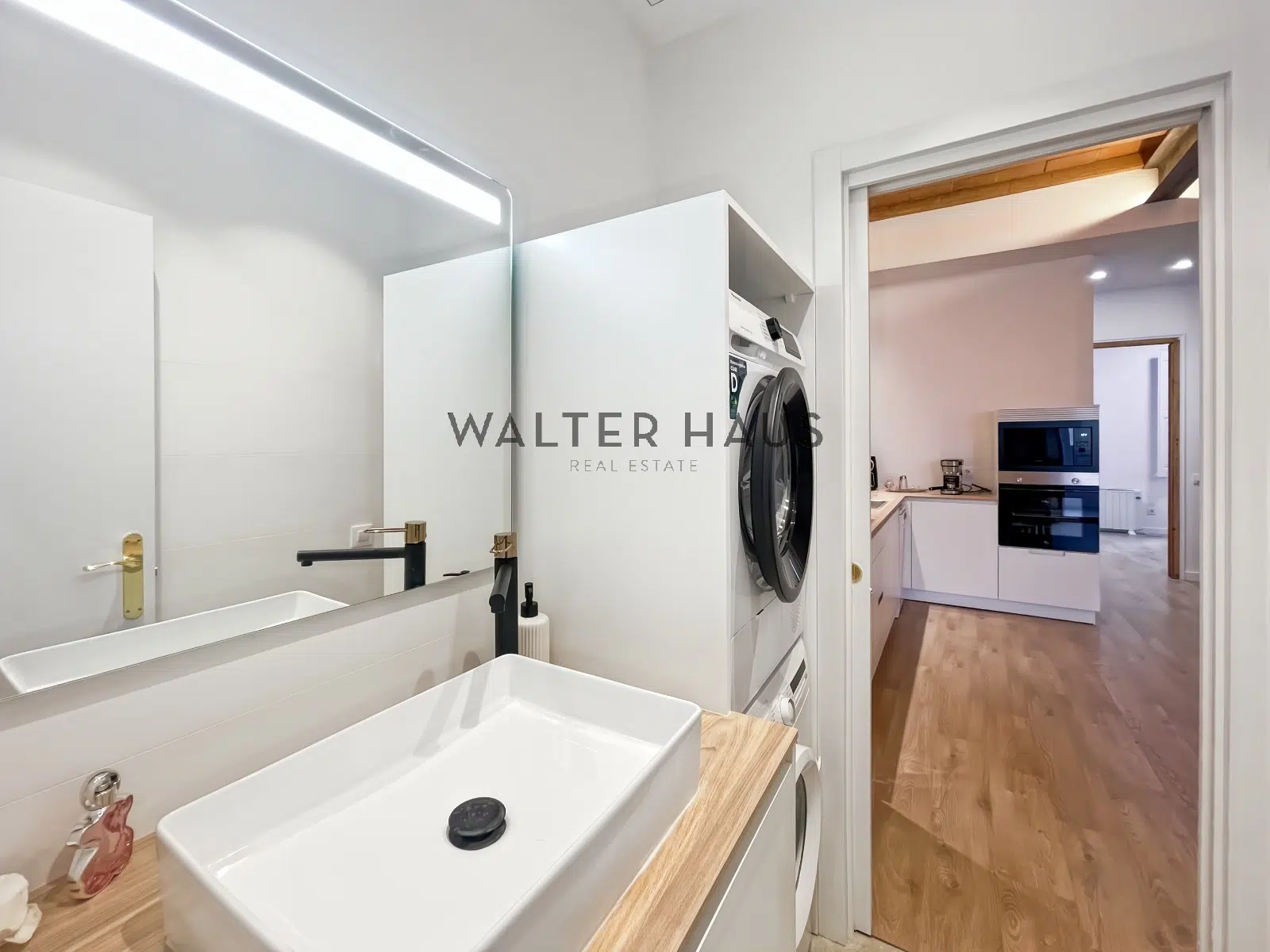 Cuenta con un gran salón comedor que comunica con la galería, una habitación doble con escritorio, una cocina completamente equipada y un baño con plato de ducha, lavadora y secadora.
