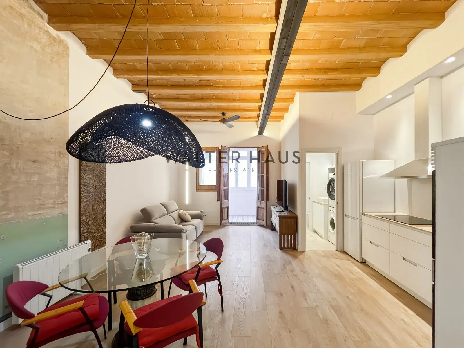 Techos altos, suelos con personalidad y ventiladores de techo que completan su estilo auténtico.