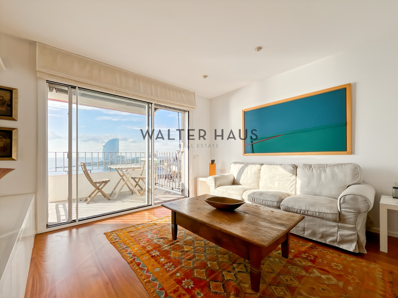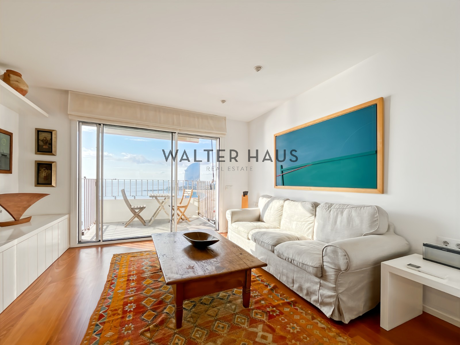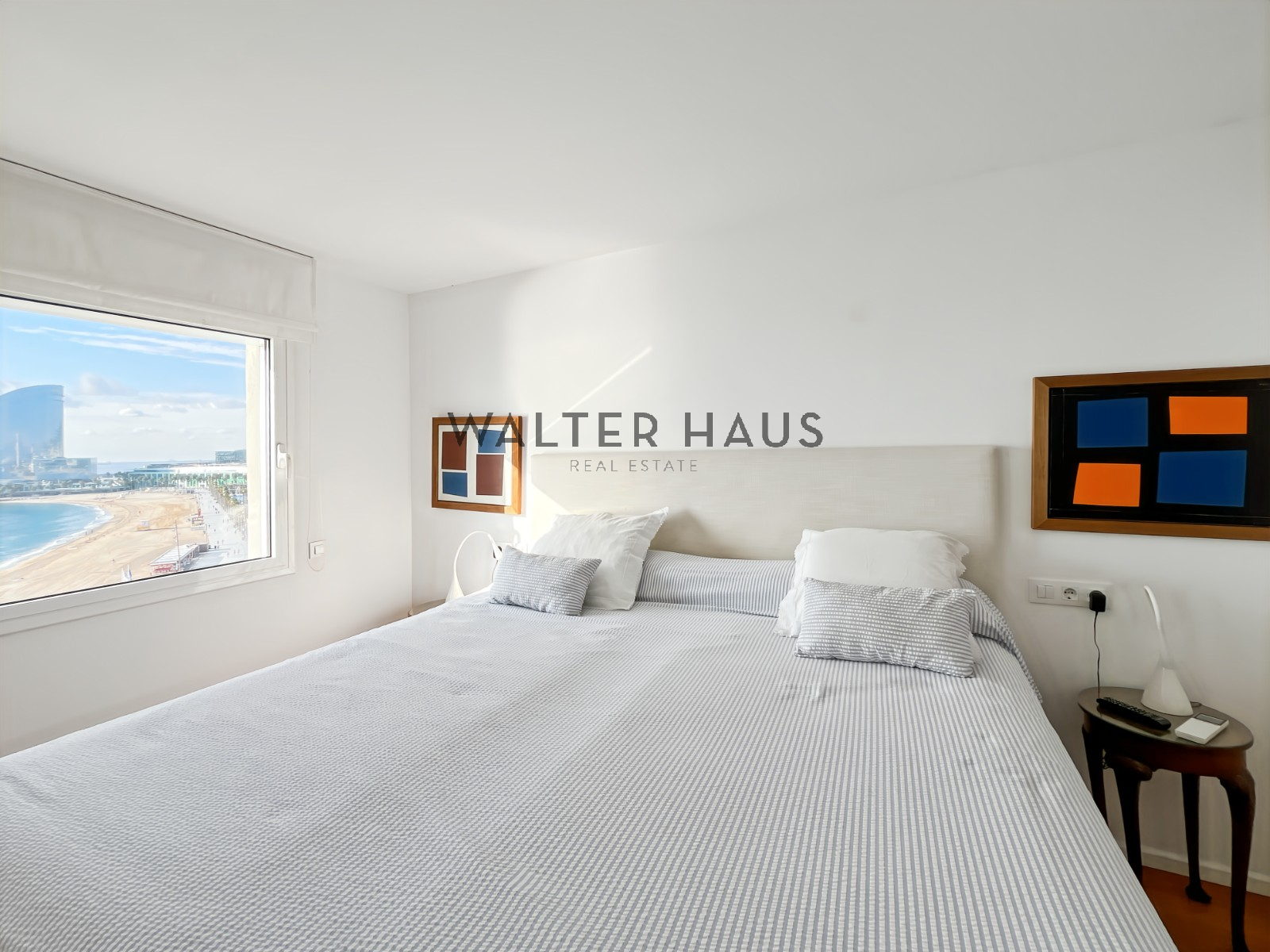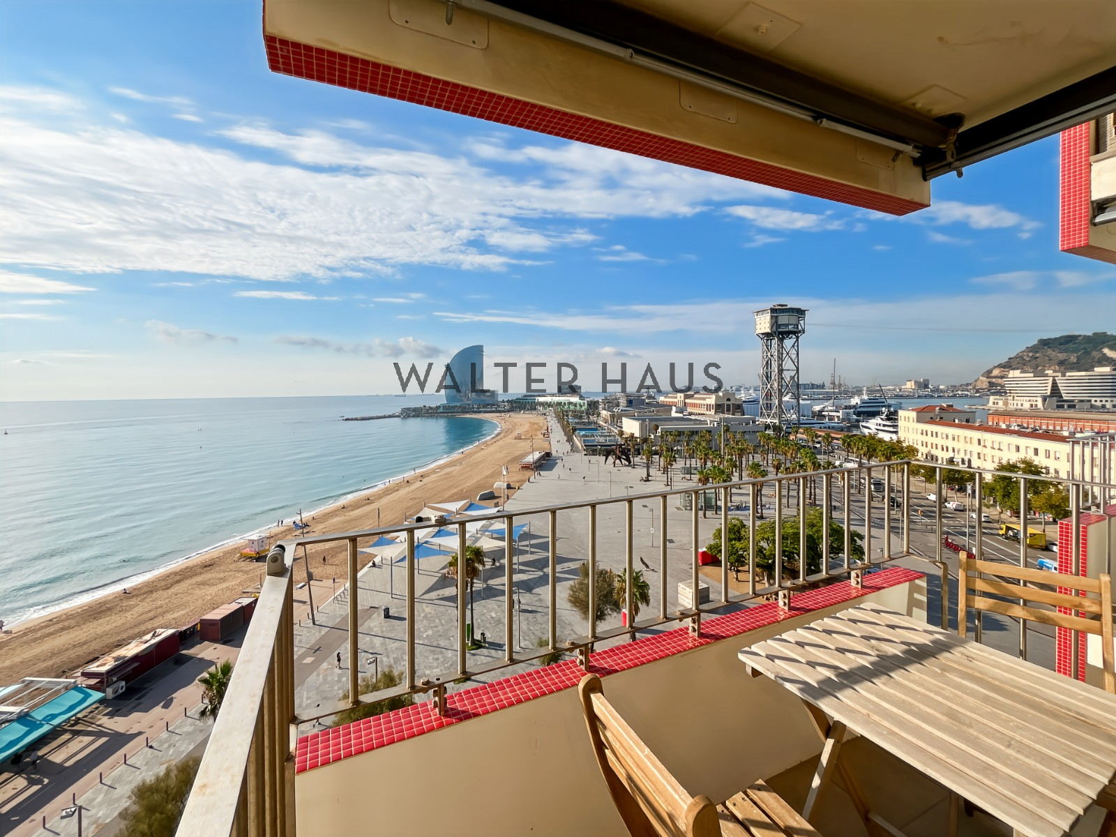 ALQUILER DE TEMPORADA. Fantástico piso de 75 m2 con unas vistas espectaculares, ubicado en una planta alta frente al mar, en la tradicional playa de la Barceloneta y junto al Port Vell.