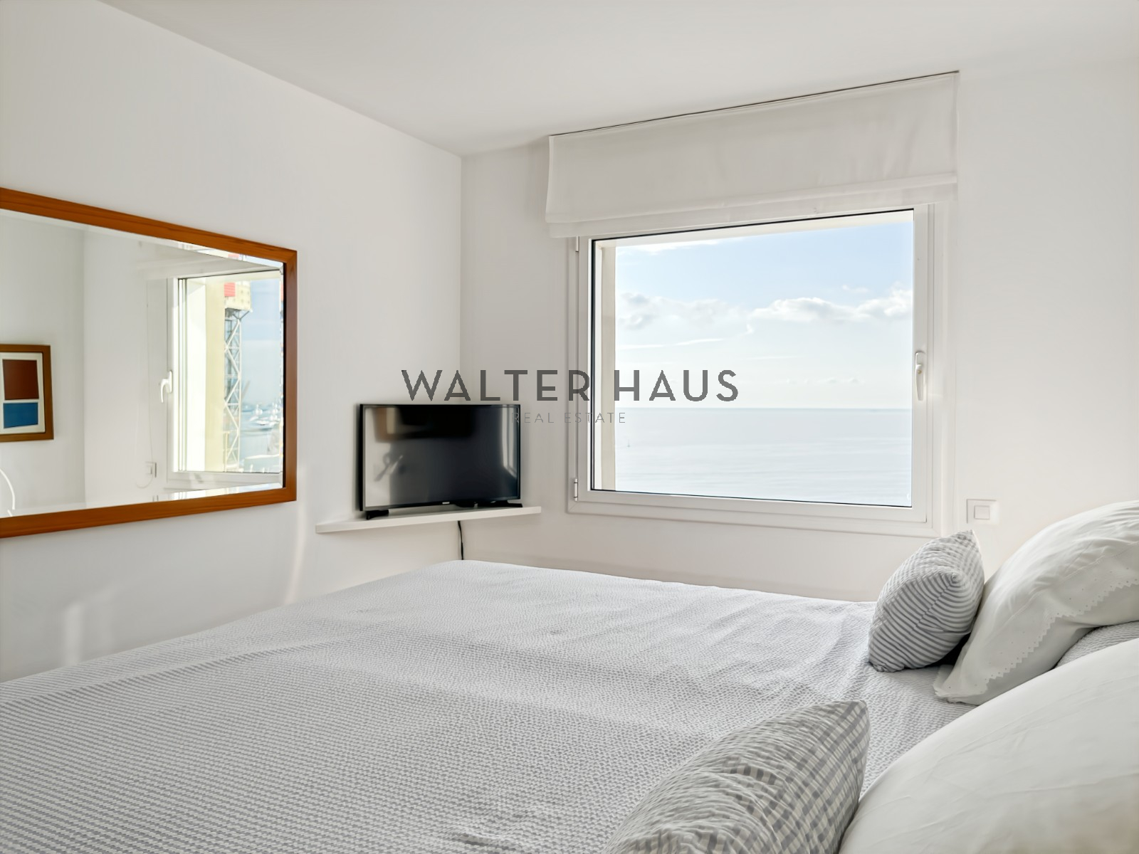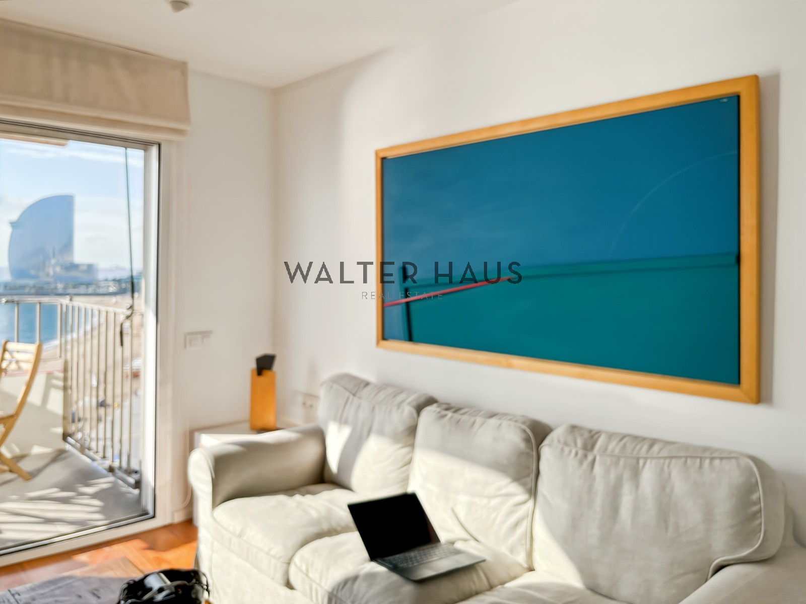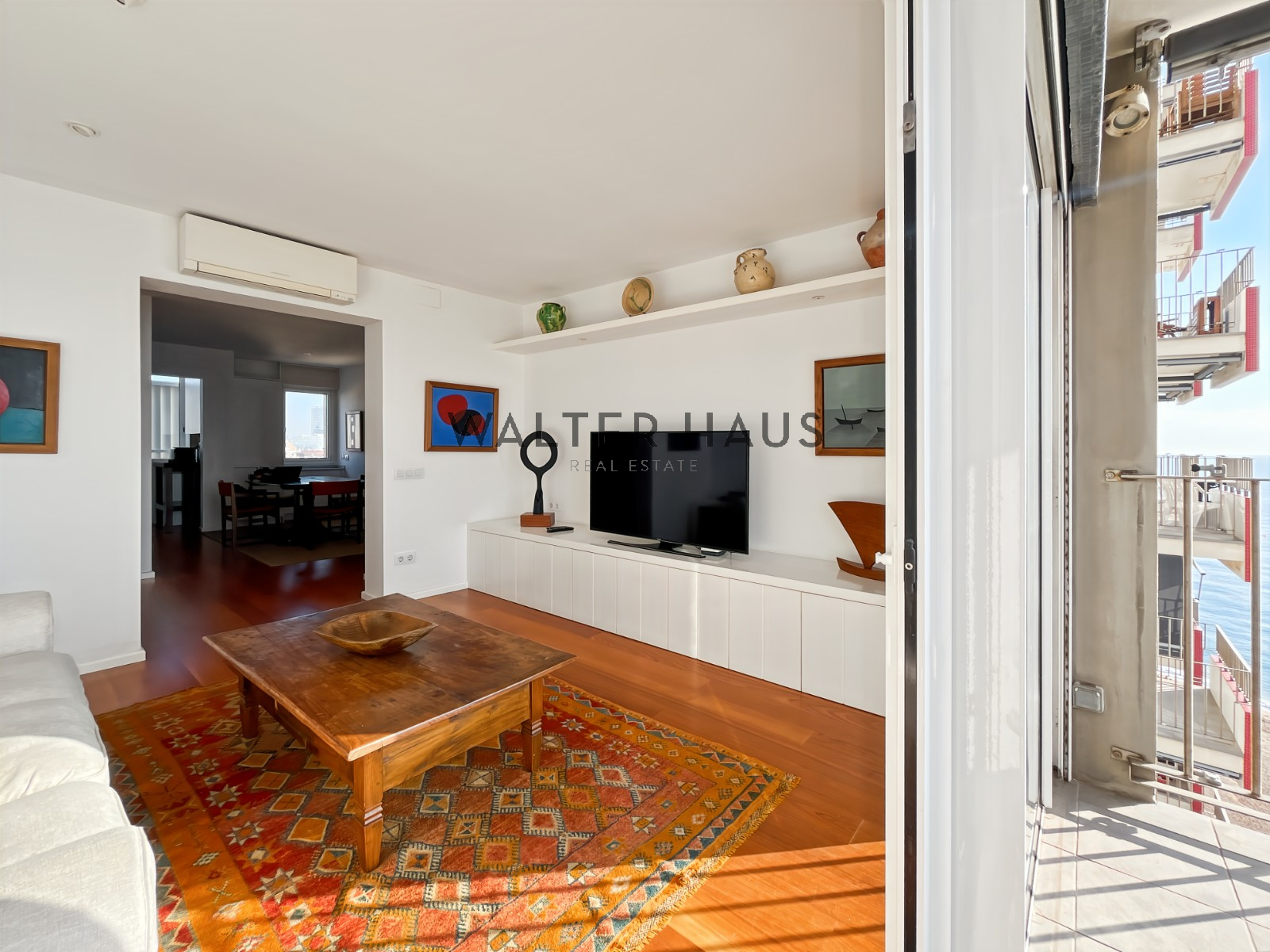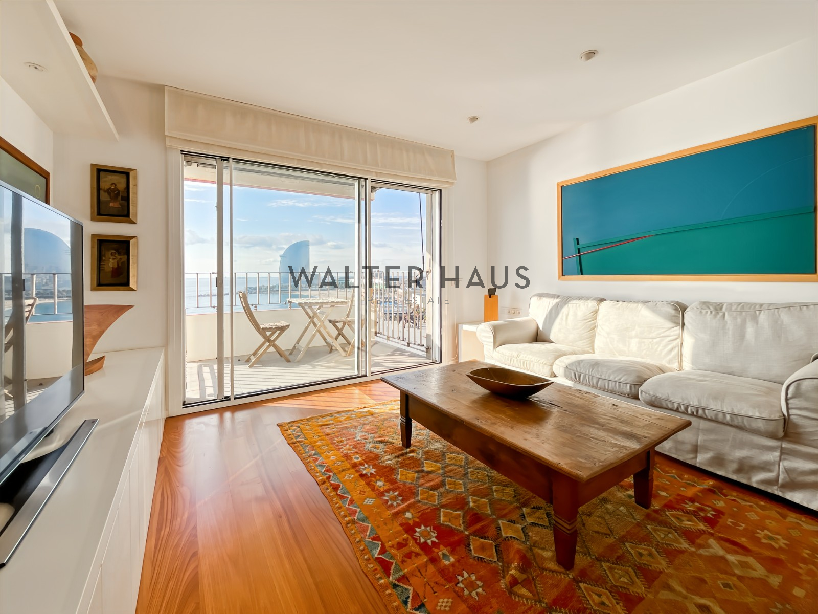 ALQUILER DE TEMPORADA. Fantástico piso de 75 m2 con unas vistas espectaculares, ubicado en una planta alta frente al mar, en la tradicional playa de la Barceloneta y junto al Port Vell.