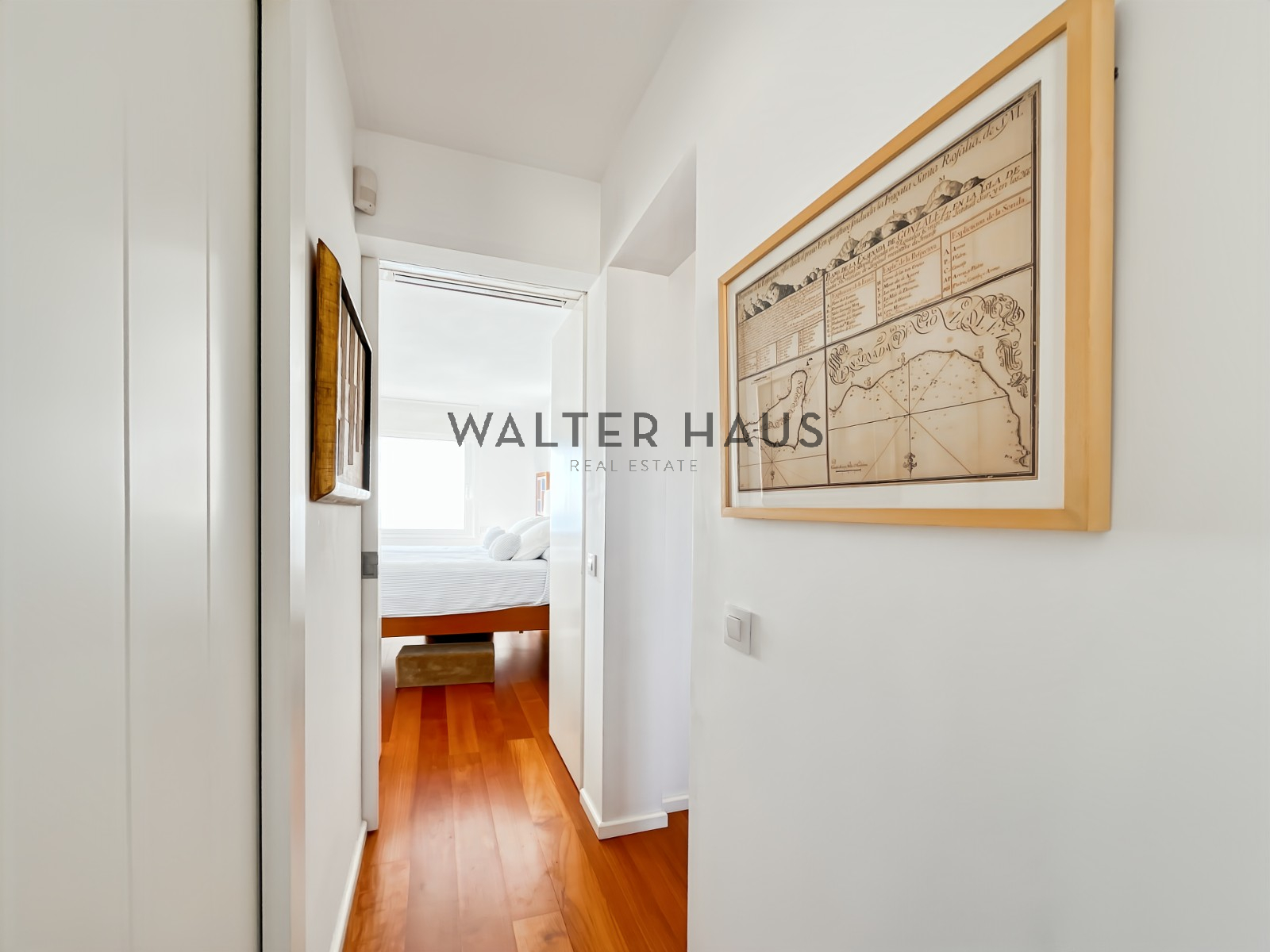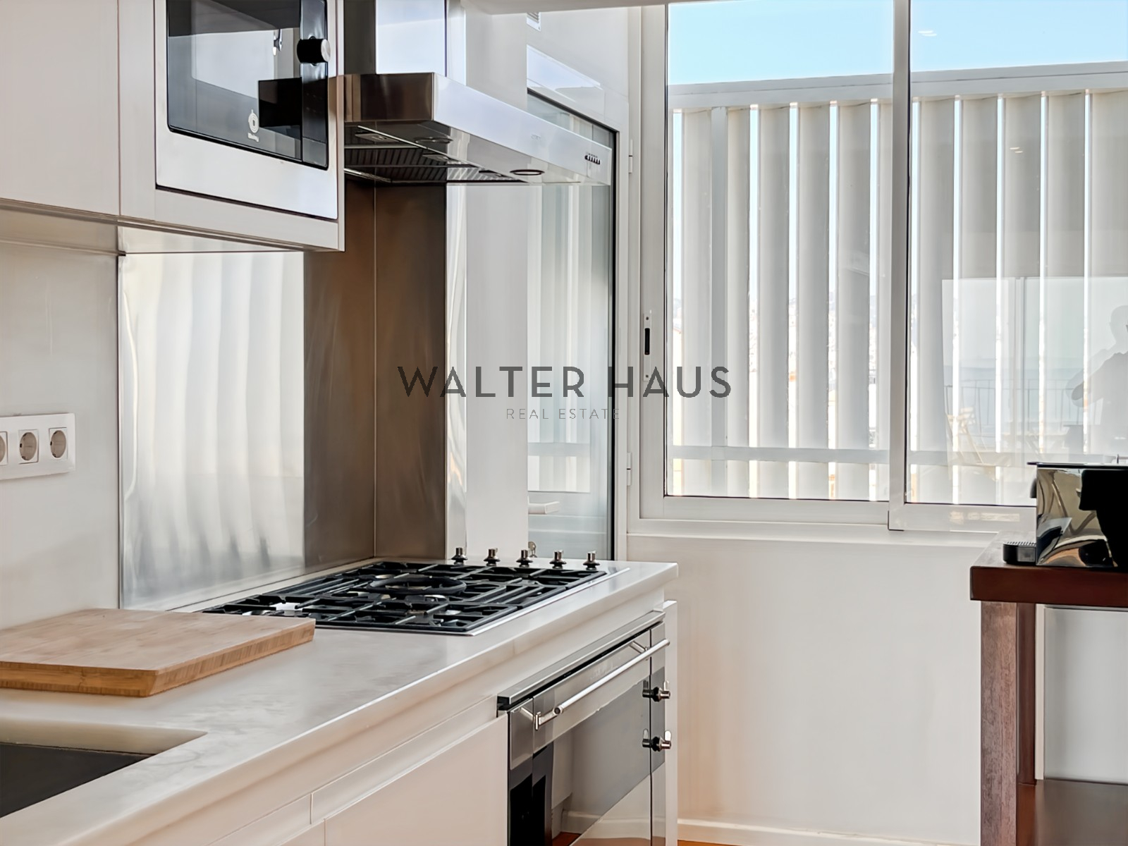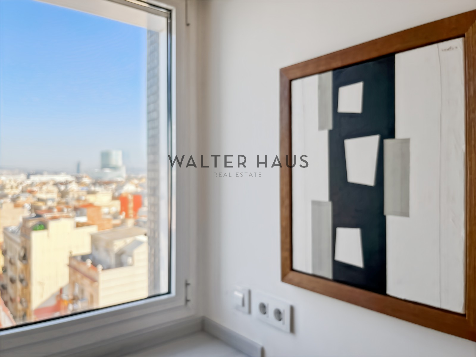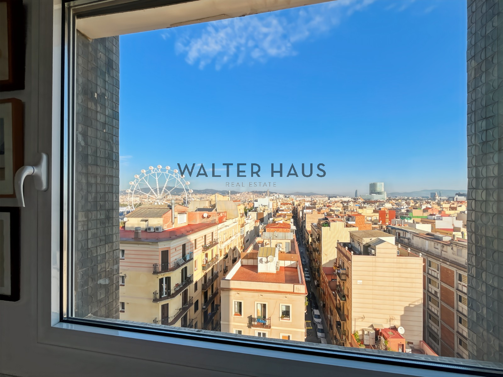 ALQUILER DE TEMPORADA. Fantástico piso de 75 m2 con unas vistas espectaculares, ubicado en una planta alta frente al mar, en la tradicional playa de la Barceloneta y junto al Port Vell.