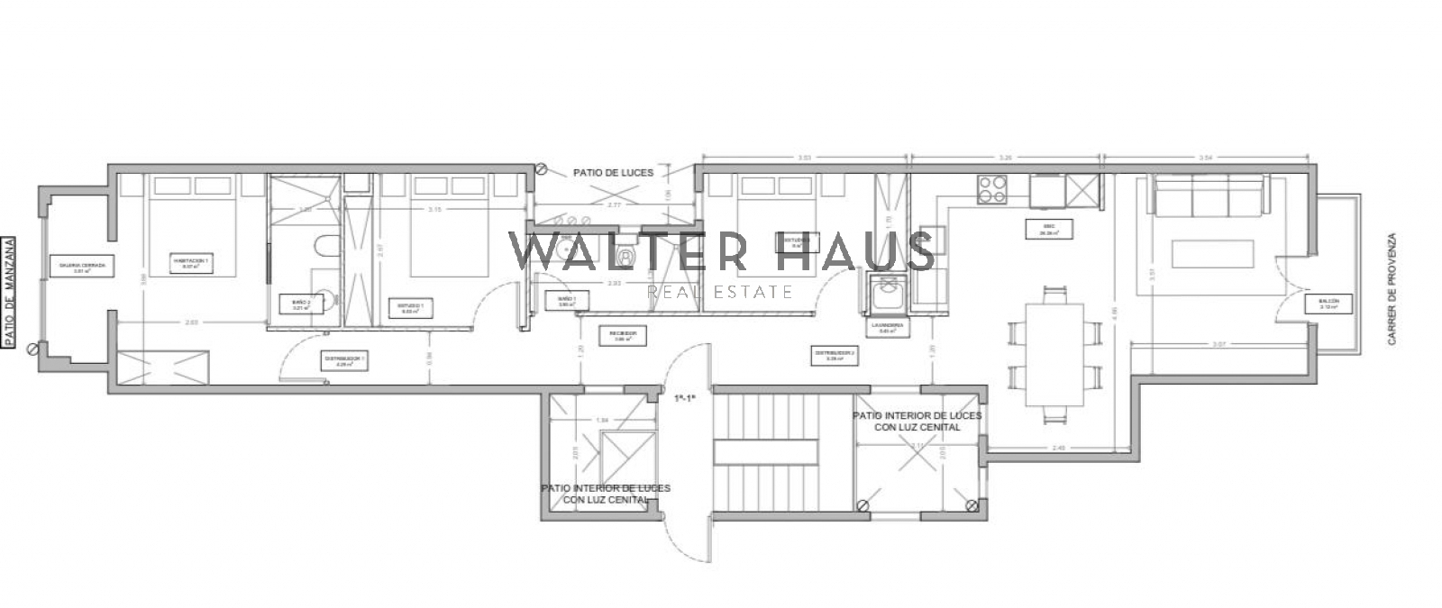 En su distribución, la zona de día cuenta con un amplio salón-comedor con cocina abierta totalmente integrada y acceso a balcones franceses que dan a la calle Provença. Este espacio está diseñado para disfrutar de momentos sociales y familiares en un ambiente cómodo y acogedor. La zona de noche dispone de tres habitaciones dobles con armarios empotrados, incluyendo una suite principal con baño privado y una encantadora terraza cerrada orientada al patio interior, perfecta como rincón de lectura o área de trabajo. Los dos baños están equipados con materiales y acabados de excelente calidad.