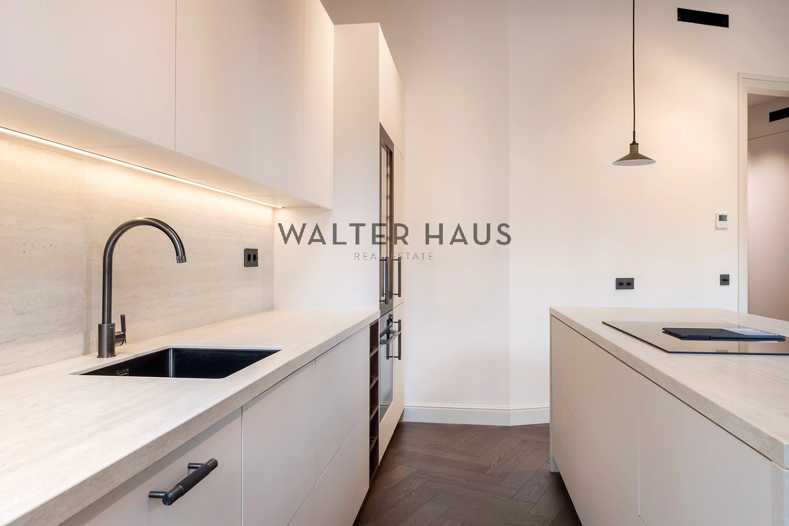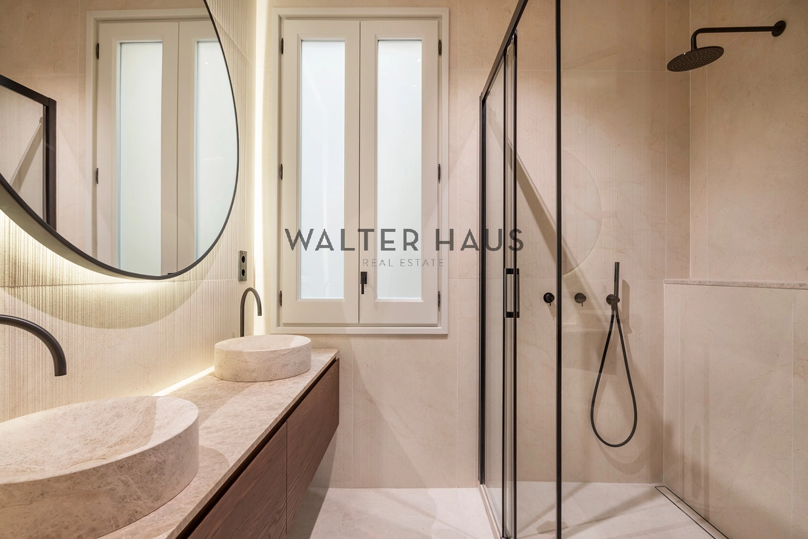 El salón-comedor, amplio y luminoso, conecta con un balcón exterior que inunda de luz gran parte del día. La cocina tipo office, completamente equipada, combina estética y funcionalidad, perfecta para el día a día. La propiedad cuenta con tres habitaciones: una suite principal con baño privado, vestidor y salida a un balcón interior; una segunda habitación doble amplia; y una habitación individual adaptable como despacho o cuarto de invitados. Además, dispone de un baño completo adicional y un aseo de cortesía. La reforma integral se realiza siguiendo renders de referencia de proyectos anteriores, asegurando un estándar de acabados de alta gama y detalles modernos.