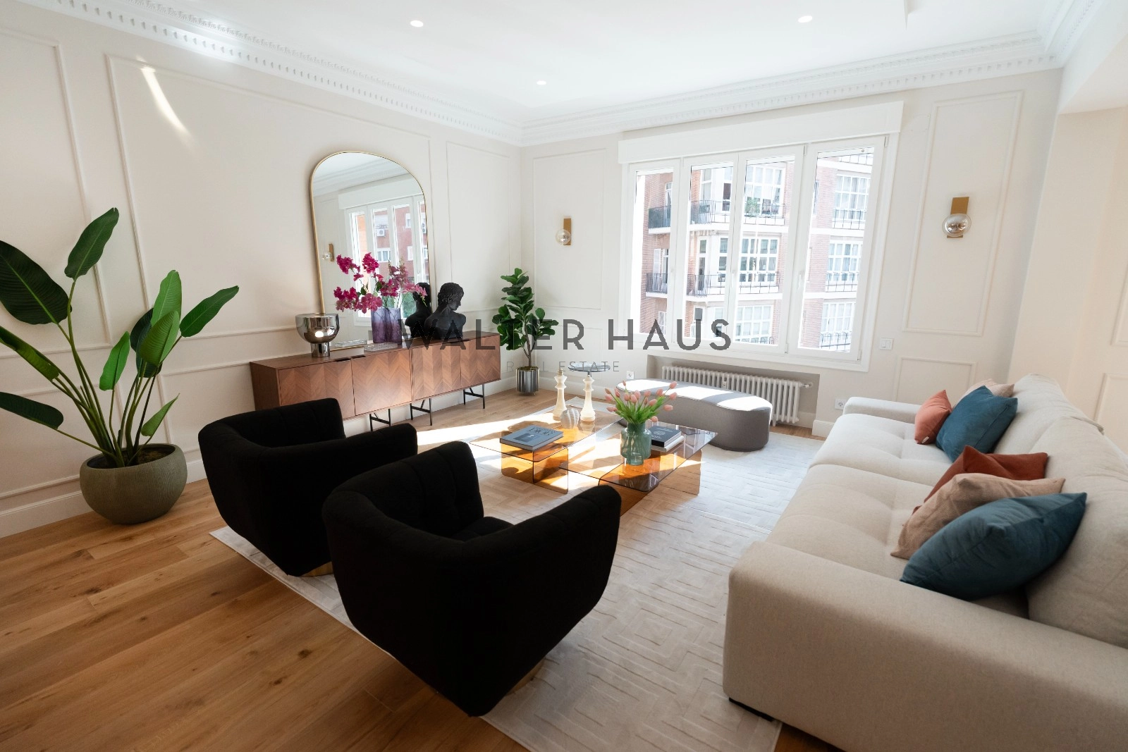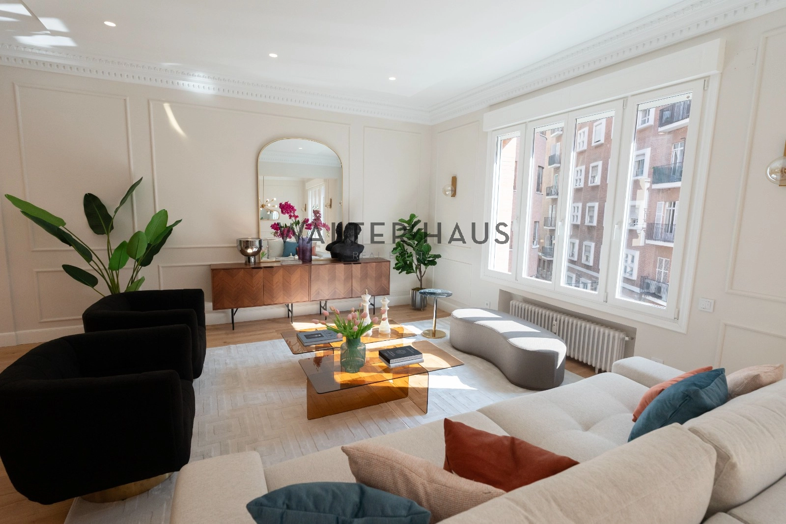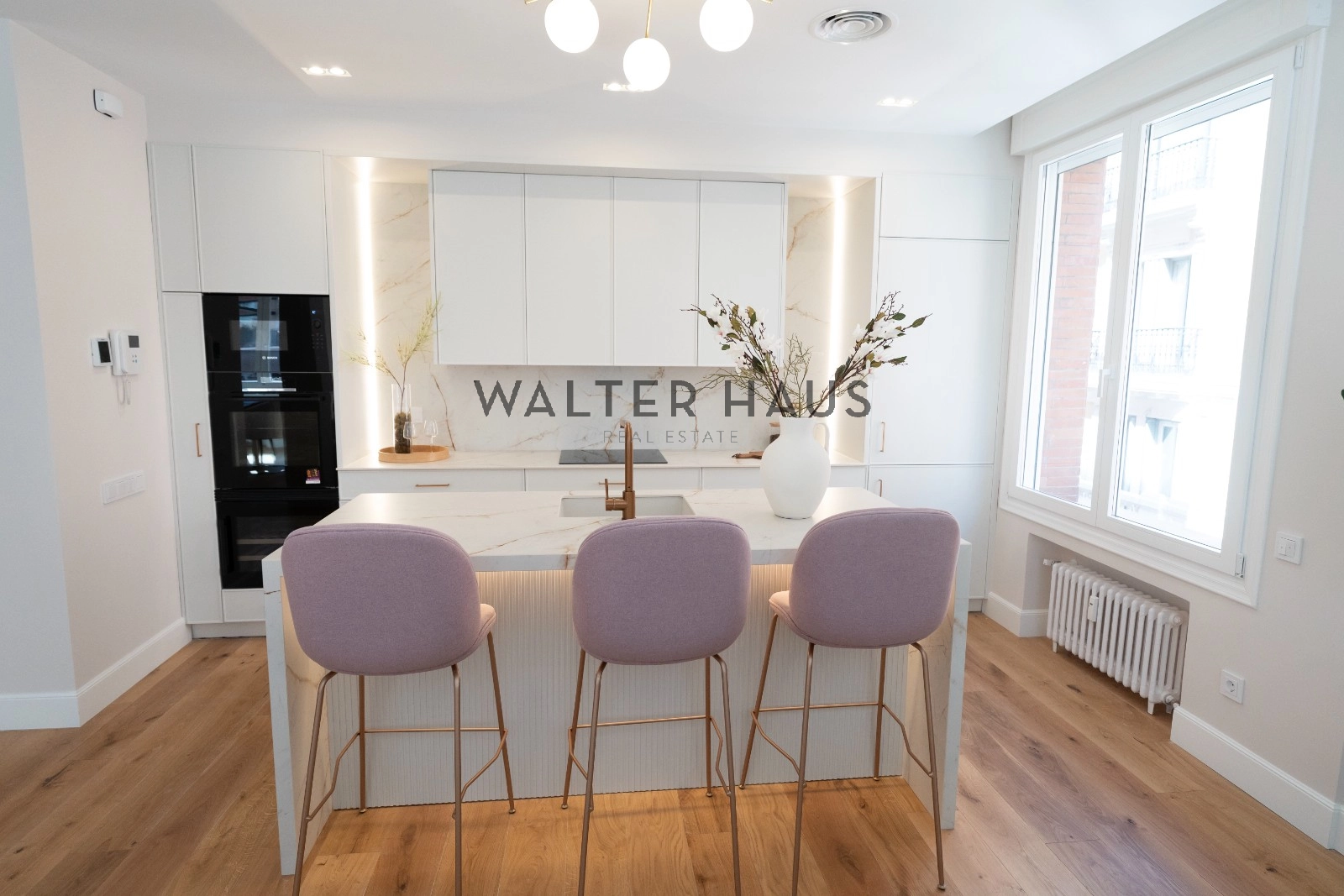 Situado en la prestigiosa arteria del Paseo de la Castellana, se presenta una propiedad que redefine el concepto de vida urbana de alto standing. Esta impecable vivienda, que abarca 181 m² construidos, ha sido objeto de una reciente y completa restauración con un diseño sofisticado y funcional. La distribución inteligente está pensada para el máximo confort, ofreciendo tres espaciosas habitaciones, todas ellas diseñadas en suite para garantizar la privacidad y comodidad de sus ocupantes. El hogar se completa con una moderna cocina americana integrada, ideal para la vida social, un práctico cuarto de lavado independiente y un aseo de cortesía adicional. La luminosidad y la tranquilidad son sellos distintivos de esta propiedad.