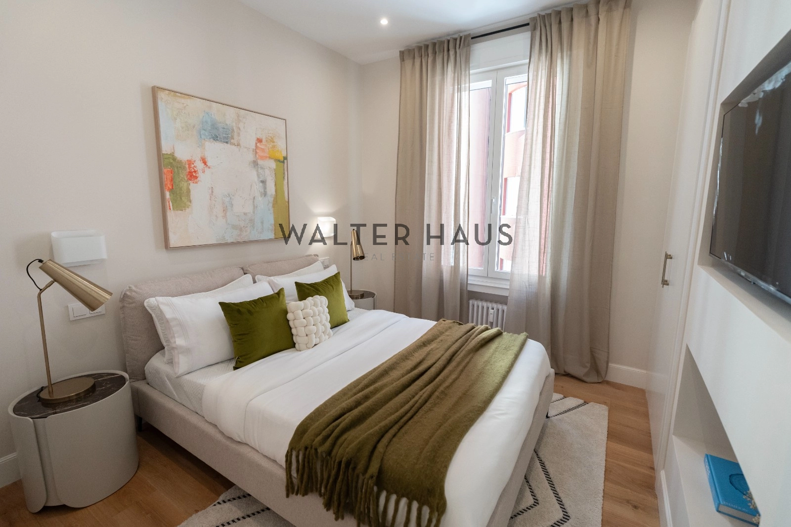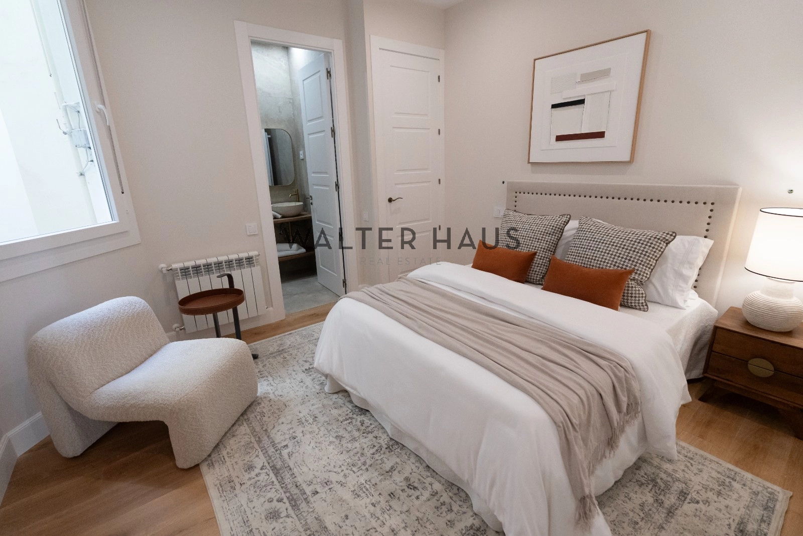 Los detalles constructivos de la propiedad reflejan un compromiso con la calidad y la elegancia atemporal. Durante la reforma, se han conservado cuidadosamente y restaurado elementos arquitectónicos singulares, como las molduras originales y los impresionantes techos de 3 metros de altura, que otorgan un carácter distinguido a cada estancia. Se han seleccionado materiales de primera calidad, incluyendo una hermosa tarima de madera natural y electrodomésticos de marcas líderes que aseguran durabilidad y un funcionamiento óptimo. Para el bienestar durante todo el año, la vivienda cuenta con un sistema de aire acondicionado centralizado (frío/calor). La finca, elegante y cuidada, proporciona un servicio de portero físico para mayor seguridad y comodidad, además de un amplio trastero incluido.