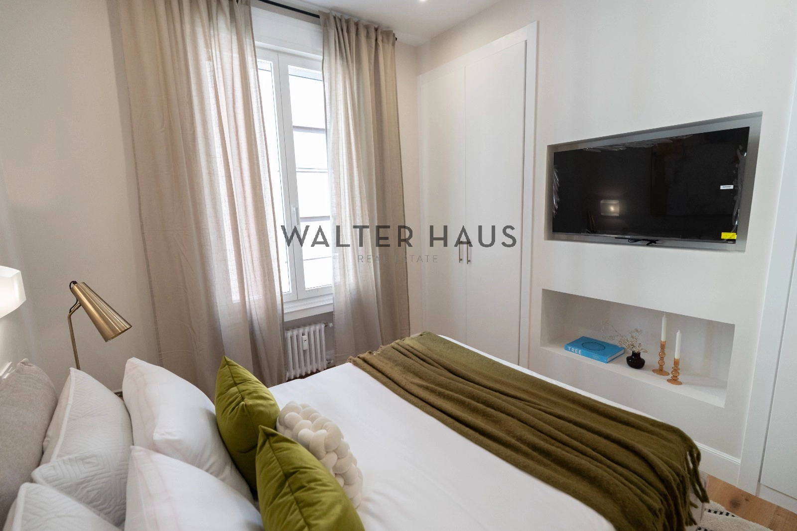 La inmejorable localización de este apartamento lo sitúa en un enclave codiciado que actúa como nexo de unión entre tres de los distritos más emblemáticos y exclusivos de Madrid: Salamanca, Chamartín y Chamberí. Esta posición estratégica no solo facilita un acceso privilegiado a las mejores boutiques, restaurantes y servicios culturales de la capital, sino que también ofrece una orientación excepcional hacia una tranquila calle y una plaza ajardinada de acceso privado. Este factor es clave para garantizar una inusual sensación de paz y aislamiento del bullicio urbano, dotando a la vivienda de gran silencio y luz natural en todas sus dependencias.